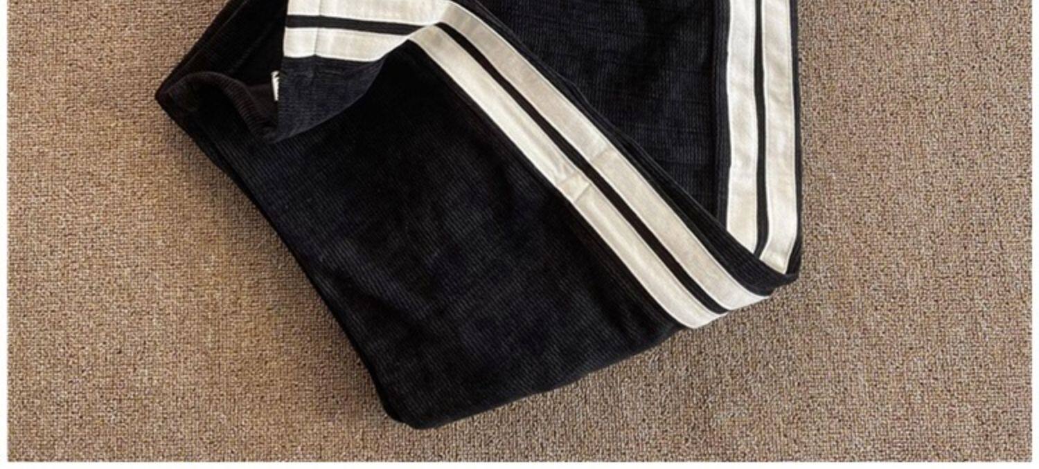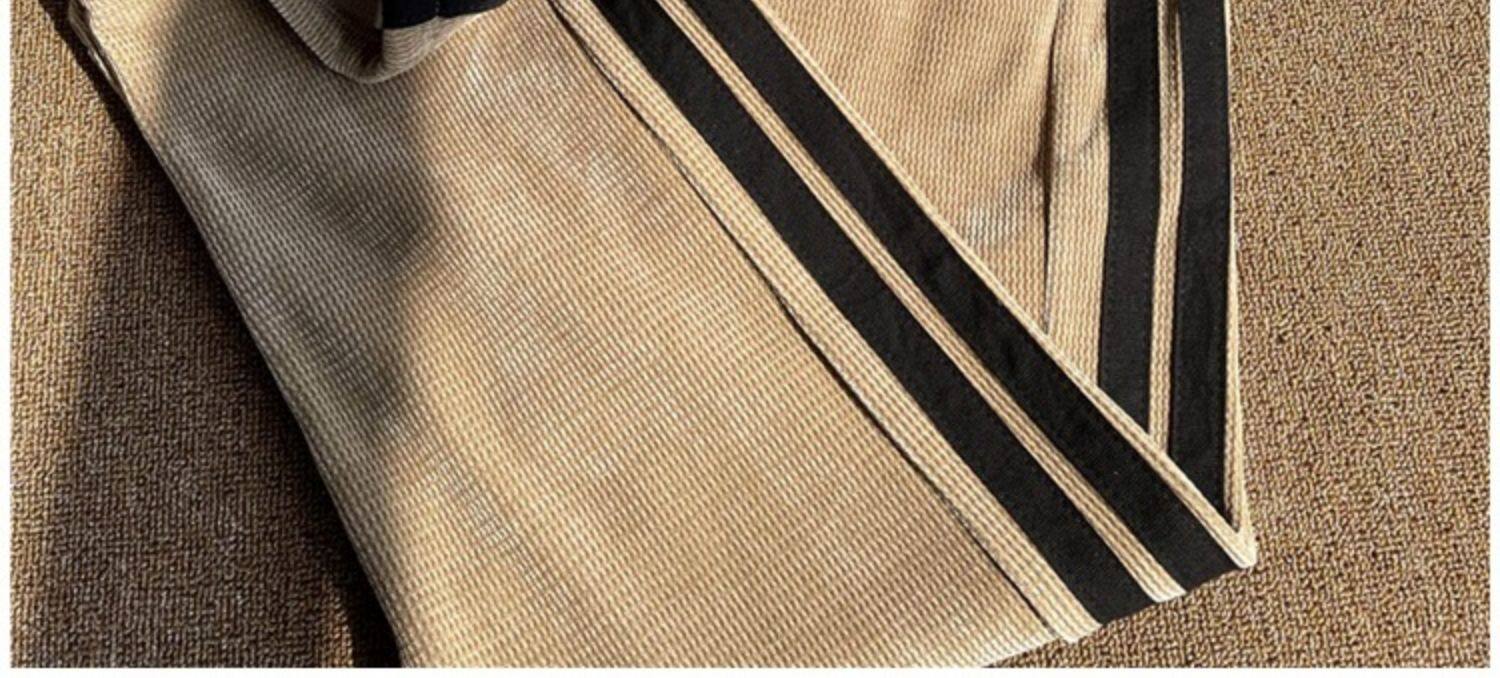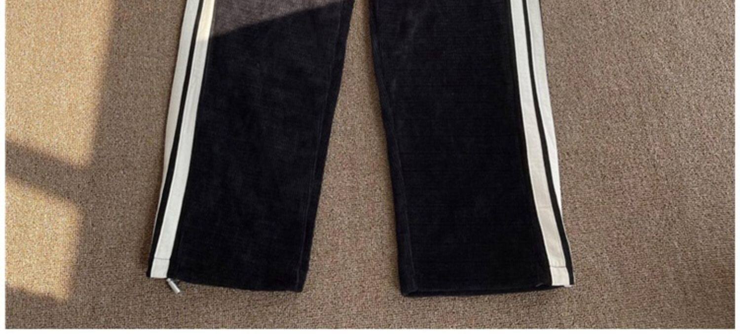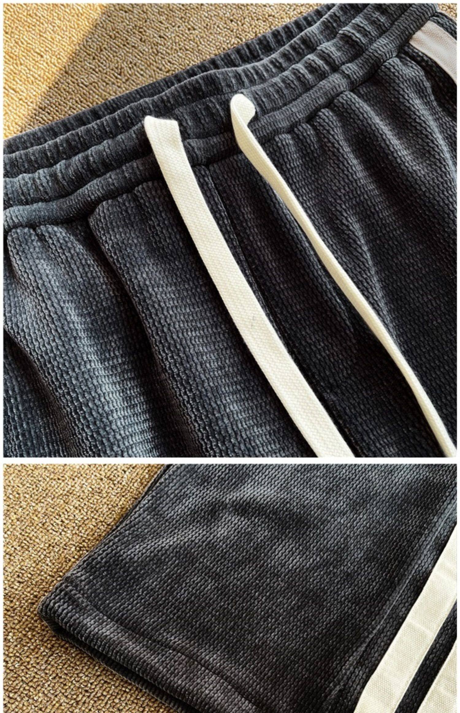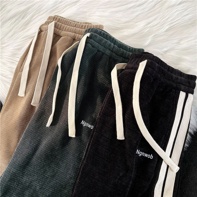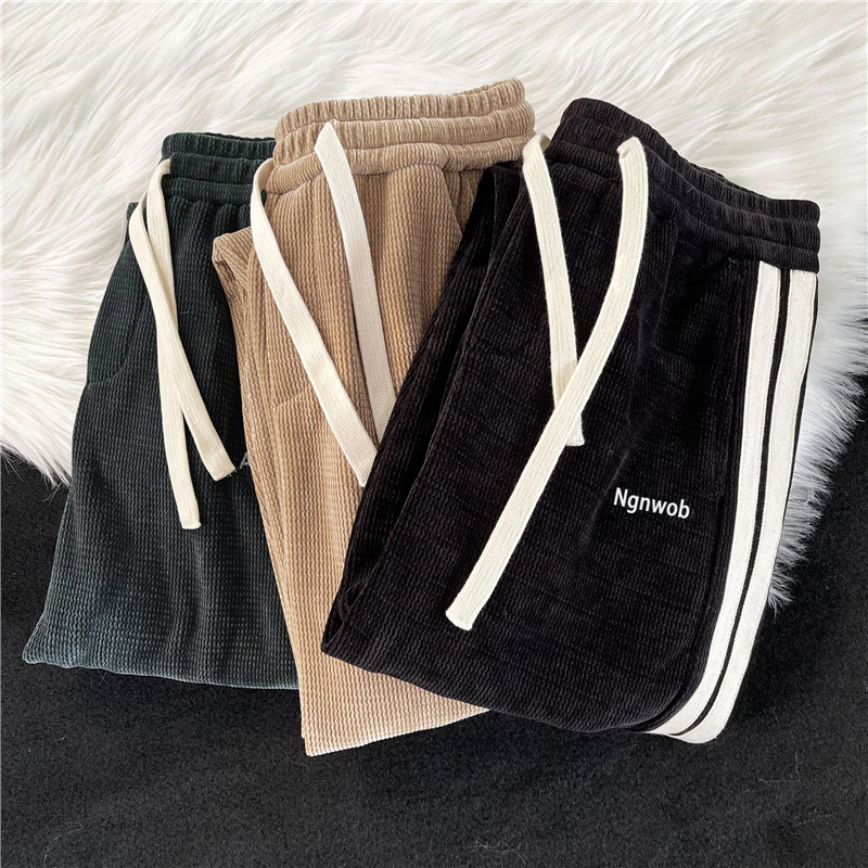 華夫格衛褲ins高街拼色條紋休閒褲男夏季百搭潮牌寬鬆直筒運動褲
