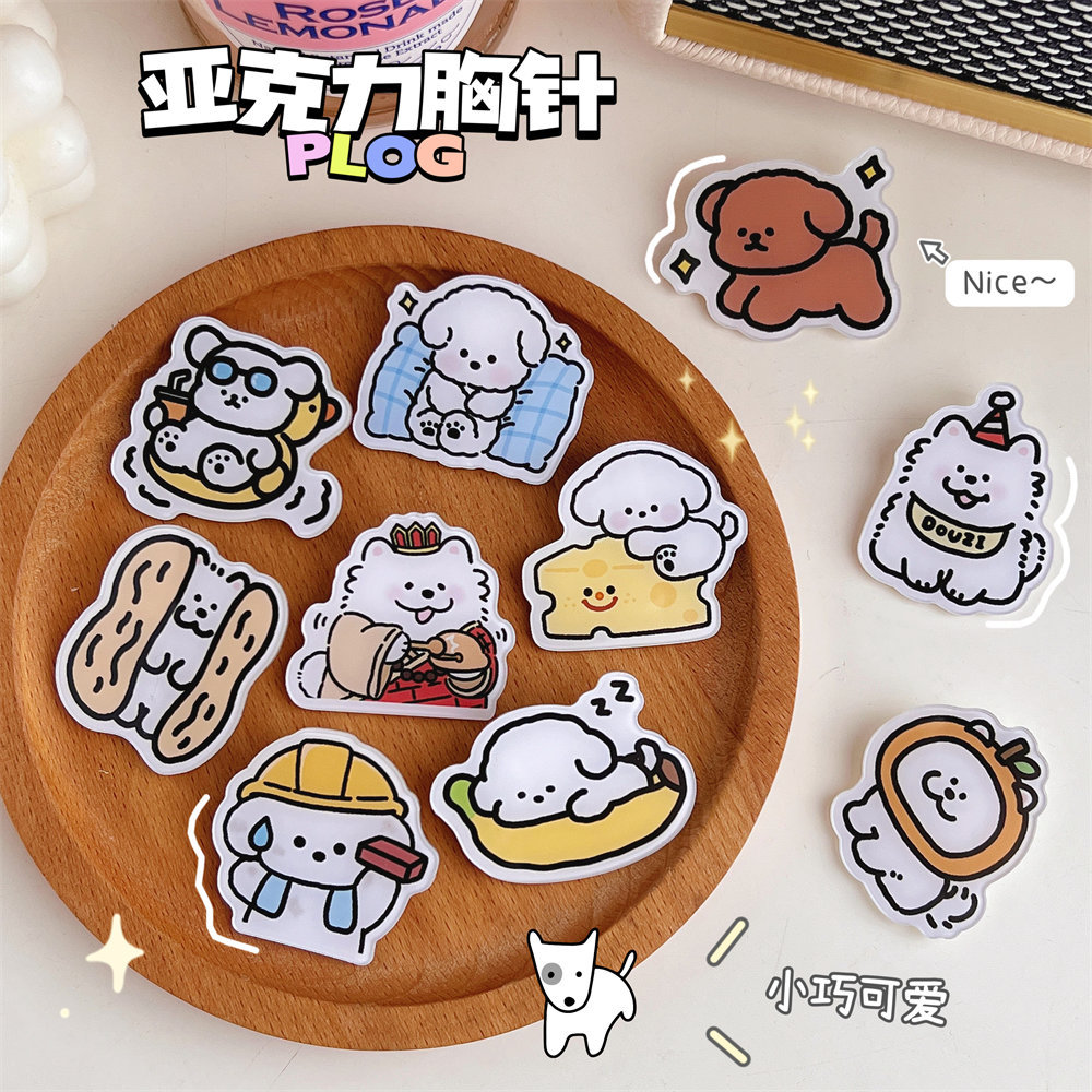 腾亿ins风可爱卡通亚克力小狗胸针徽章批发衣服包包挂件饰品别针