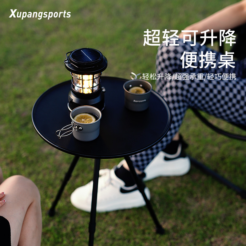 虛胖摺疊小桌子鋁合金可升降小圓桌可攜式野餐茶幾桌戶外露營裝備