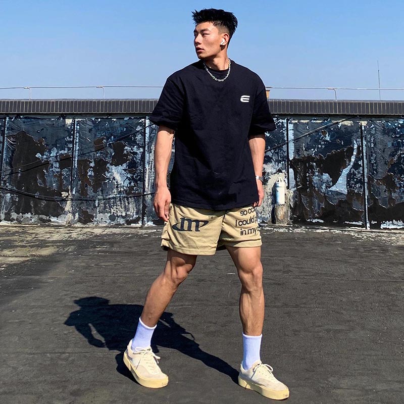 美式潮牌重磅純棉短袖T恤男夏季簡約字母印花寬鬆情侶裝圓領上衣