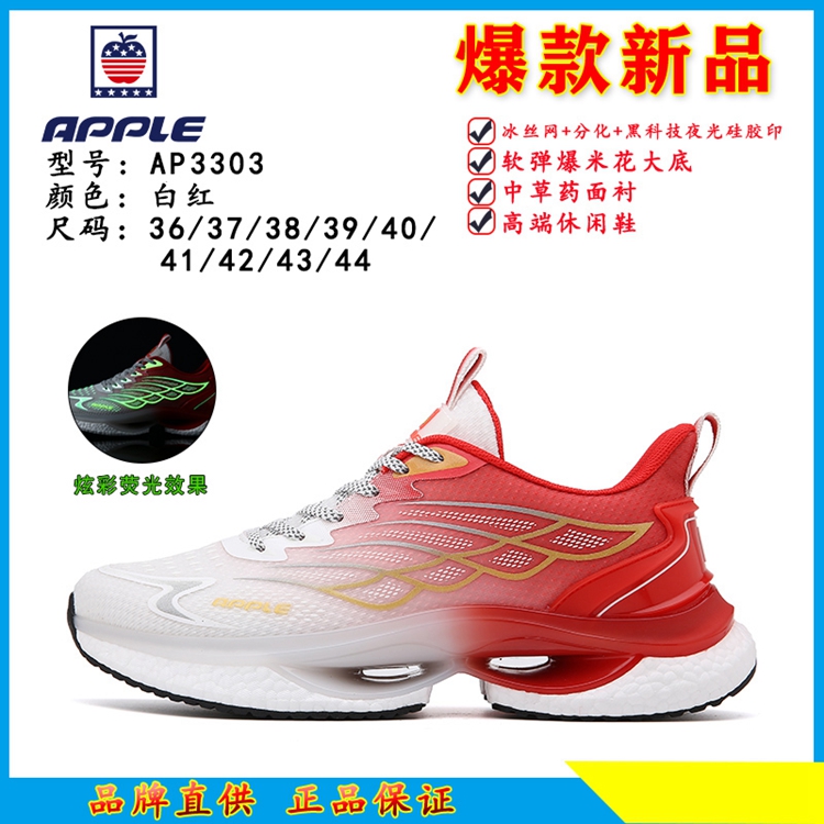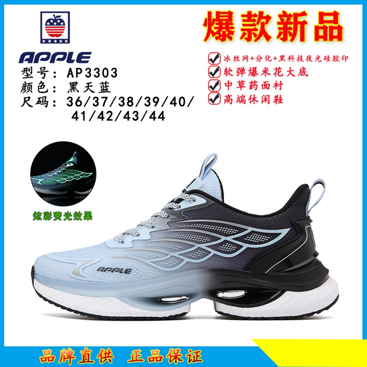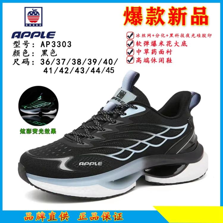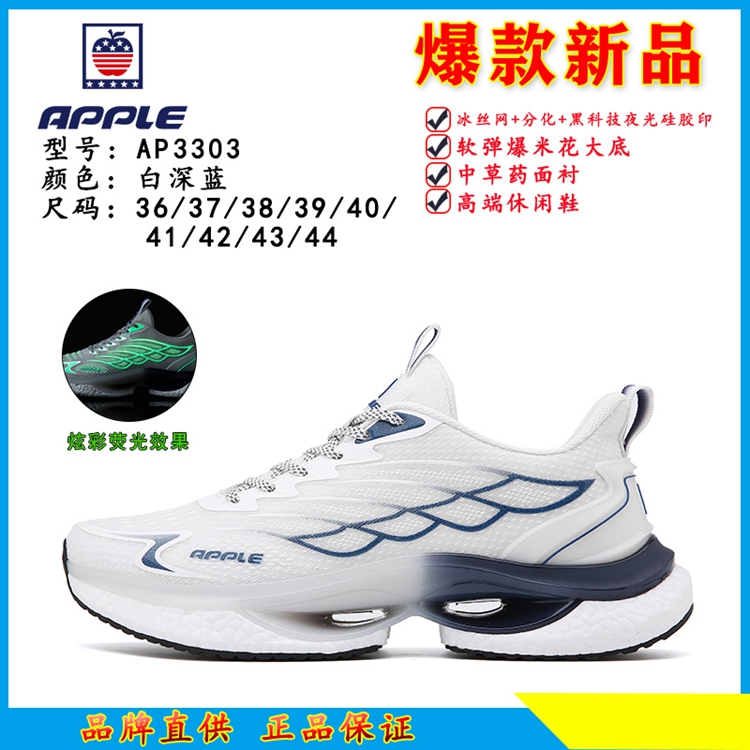蘋果2023夏季款跑步男鞋網面透氣時尚運動休閒鞋情侶爆米花潮鞋子