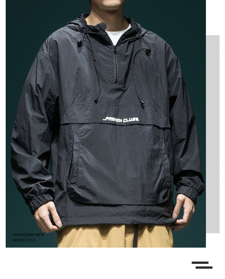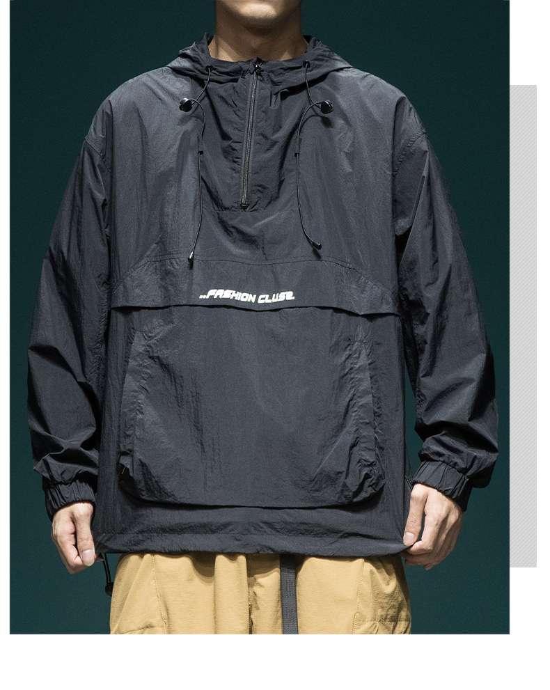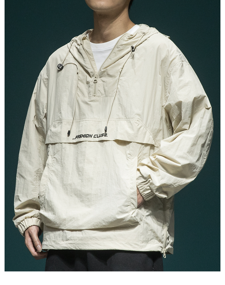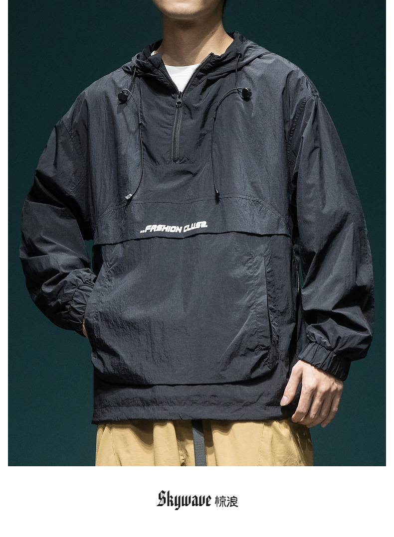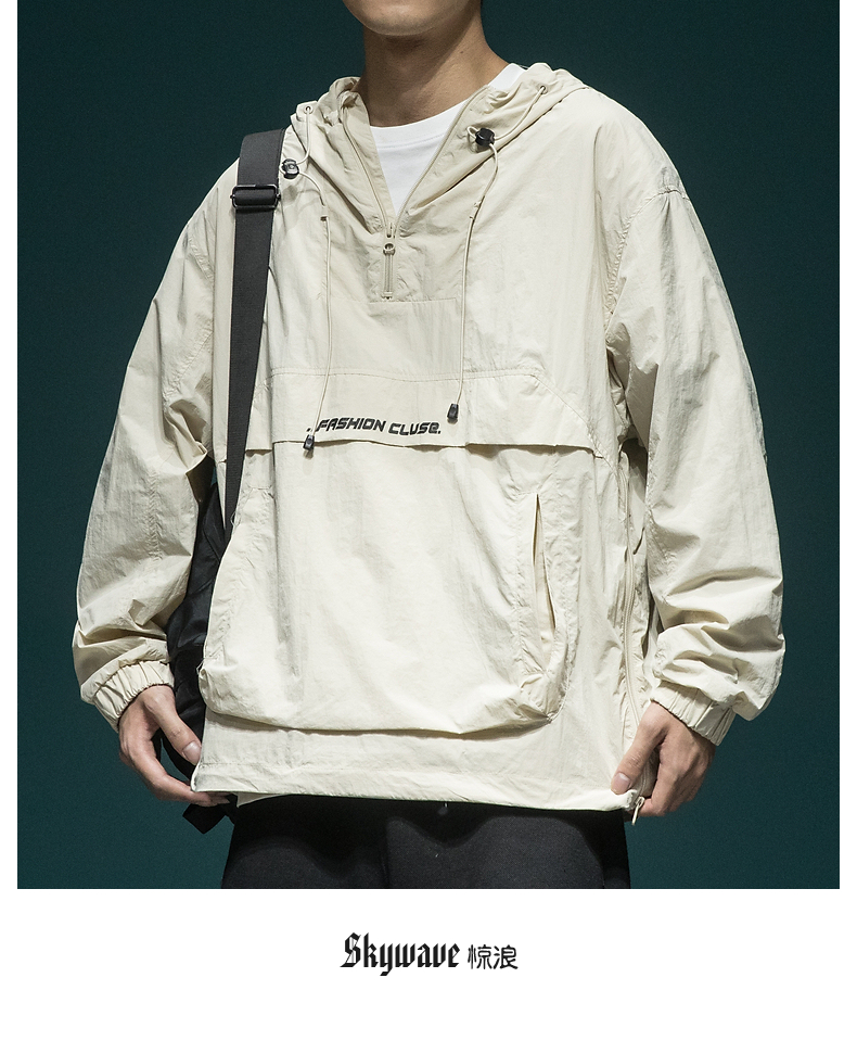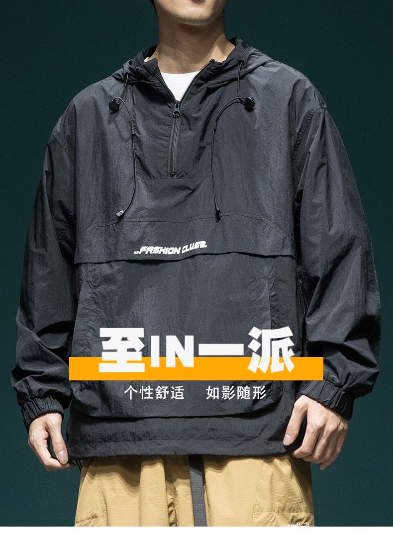 戶外新款連帽防曬衣外套男款寬鬆休閒運動速乾套頭半拉鍊防曬服潮