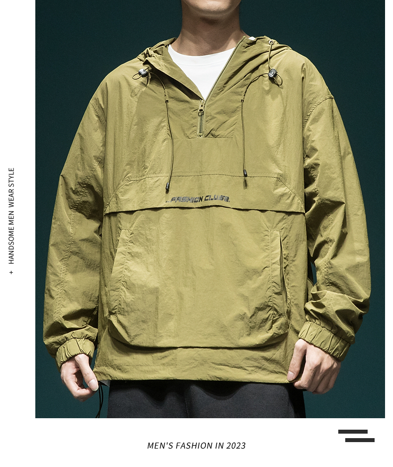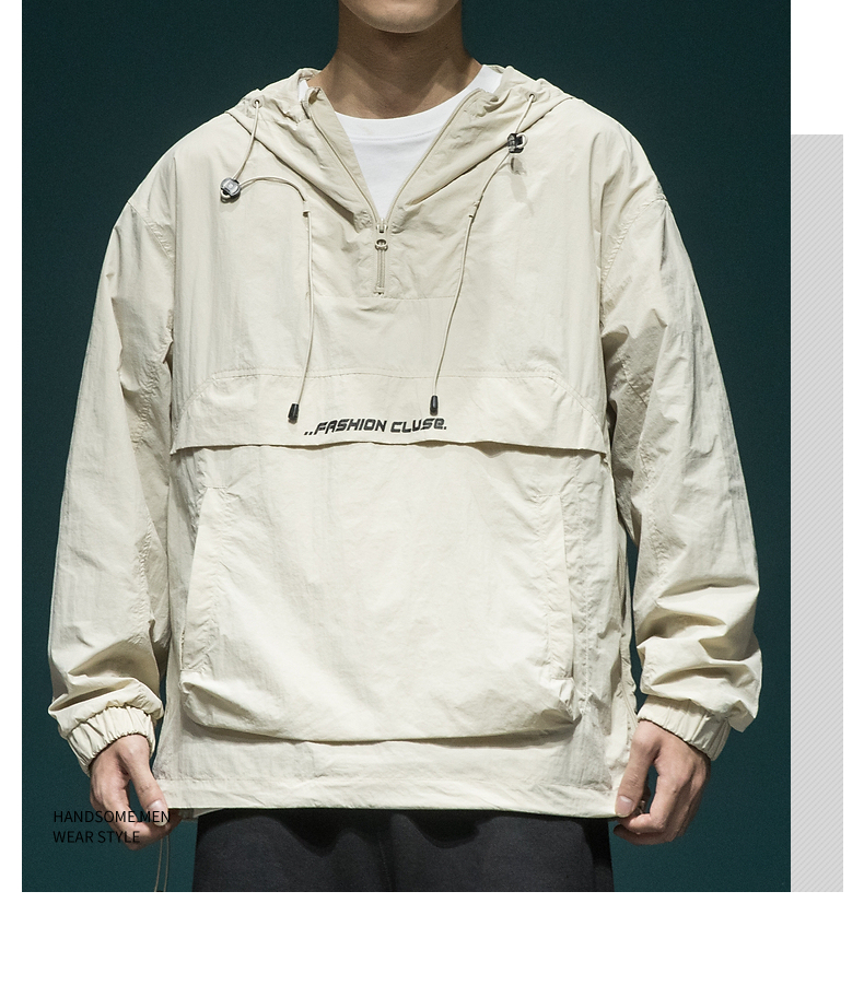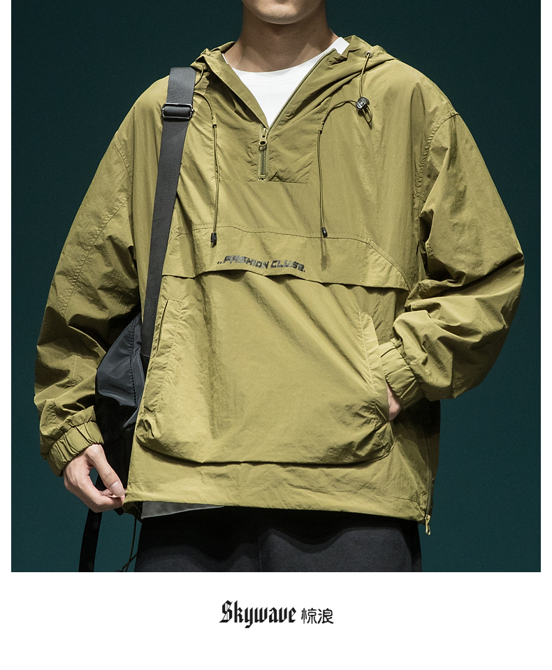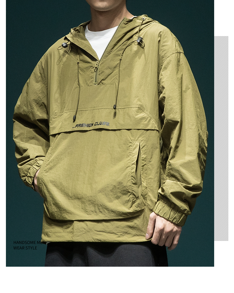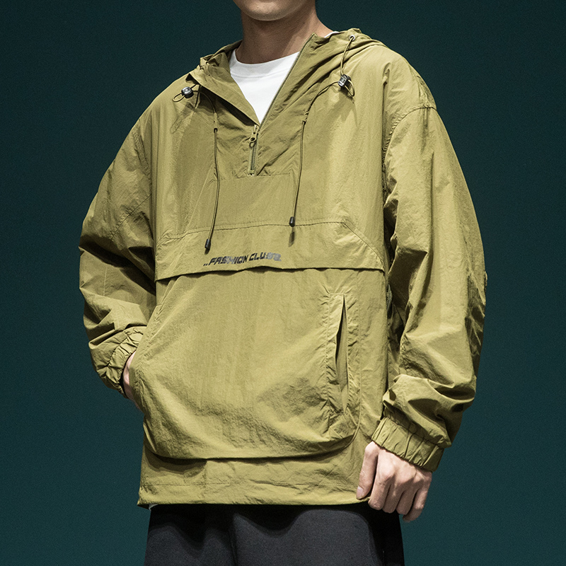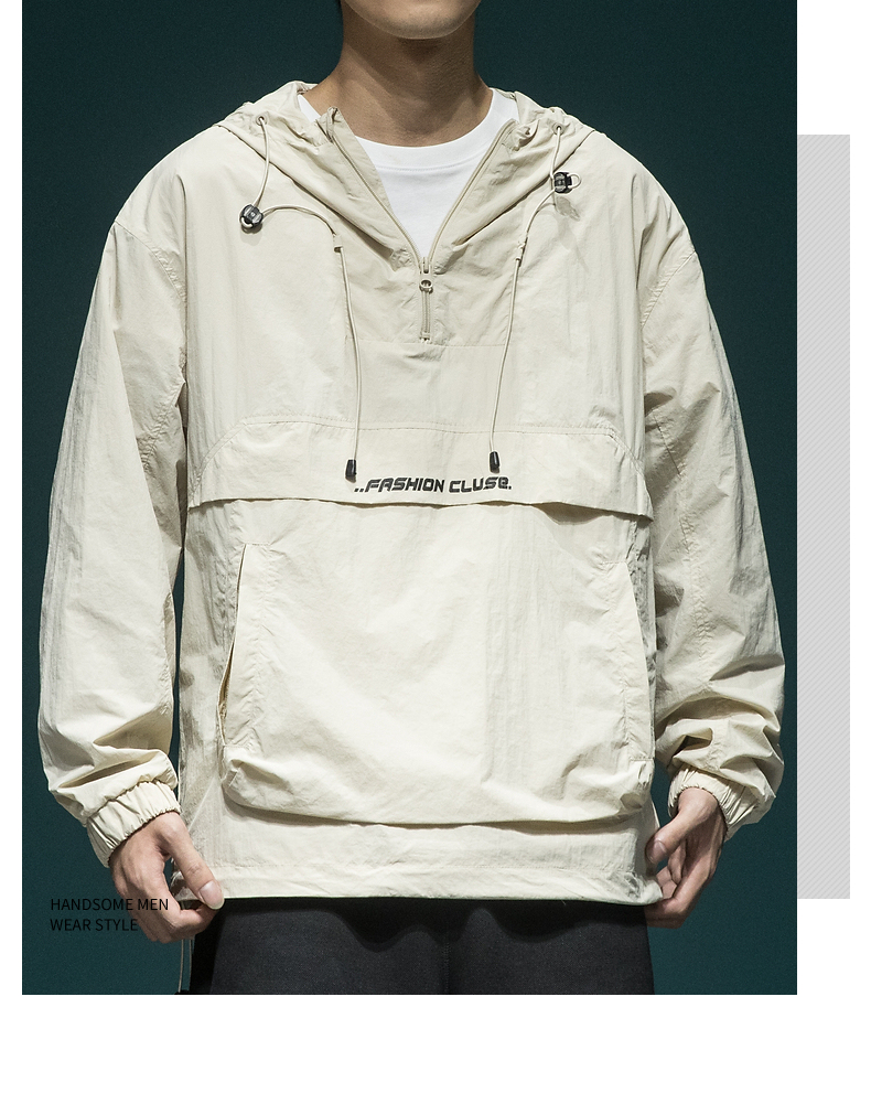戶外新款連帽防曬衣外套男款寬鬆休閒運動速乾套頭半拉鍊防曬服潮