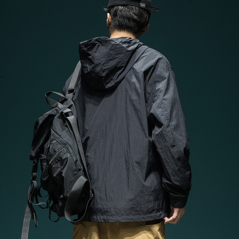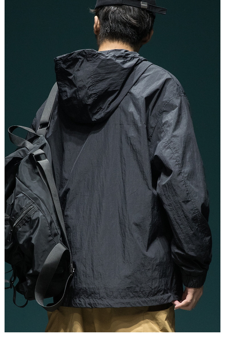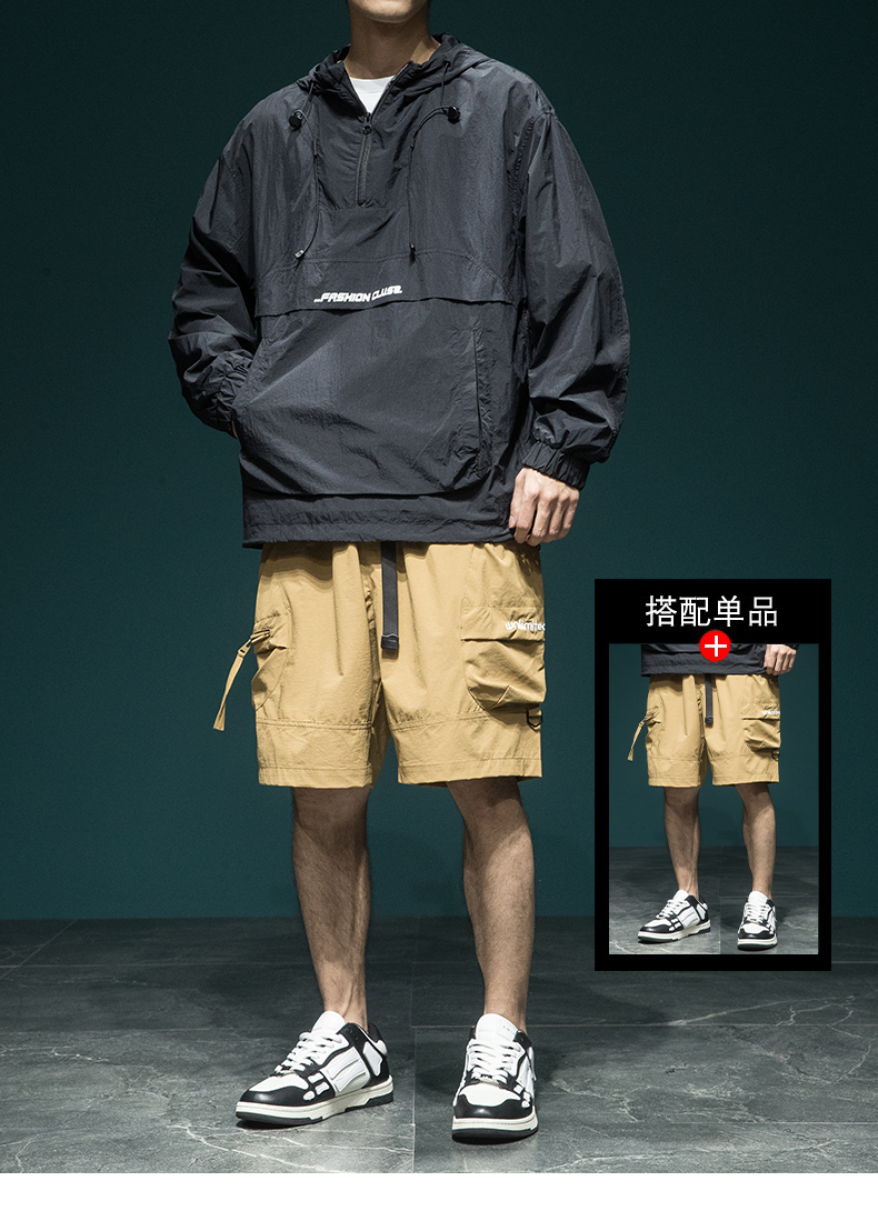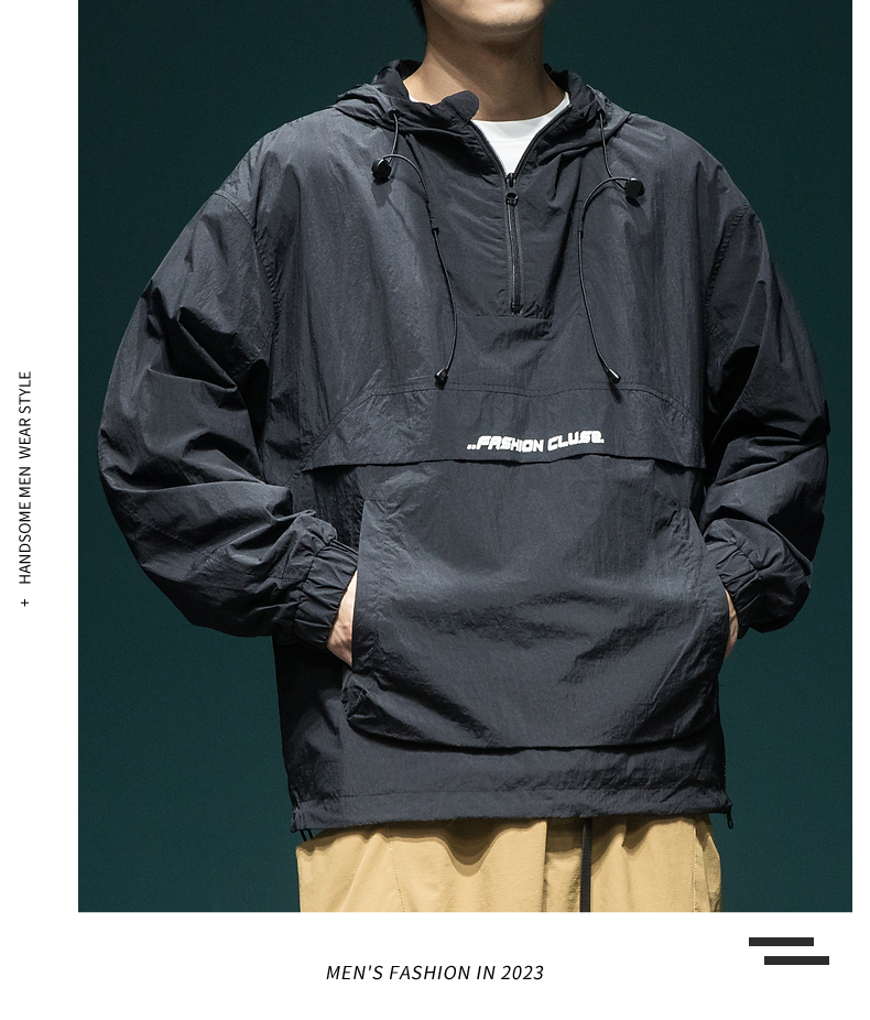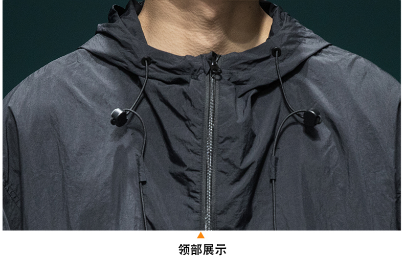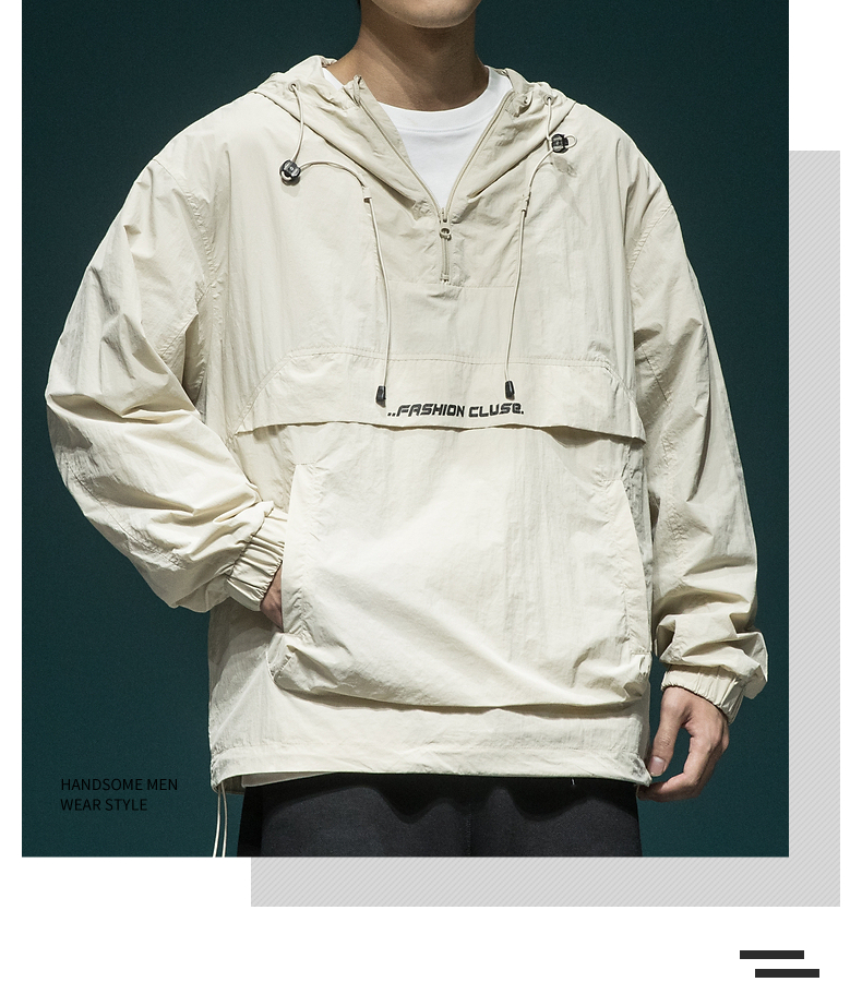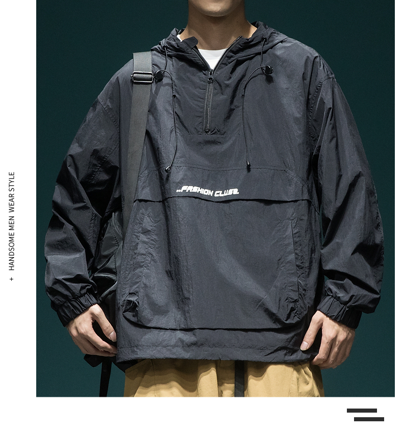 戶外新款連帽防曬衣外套男款寬鬆休閒運動速乾套頭半拉鍊防曬服潮