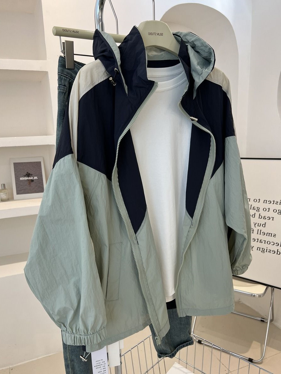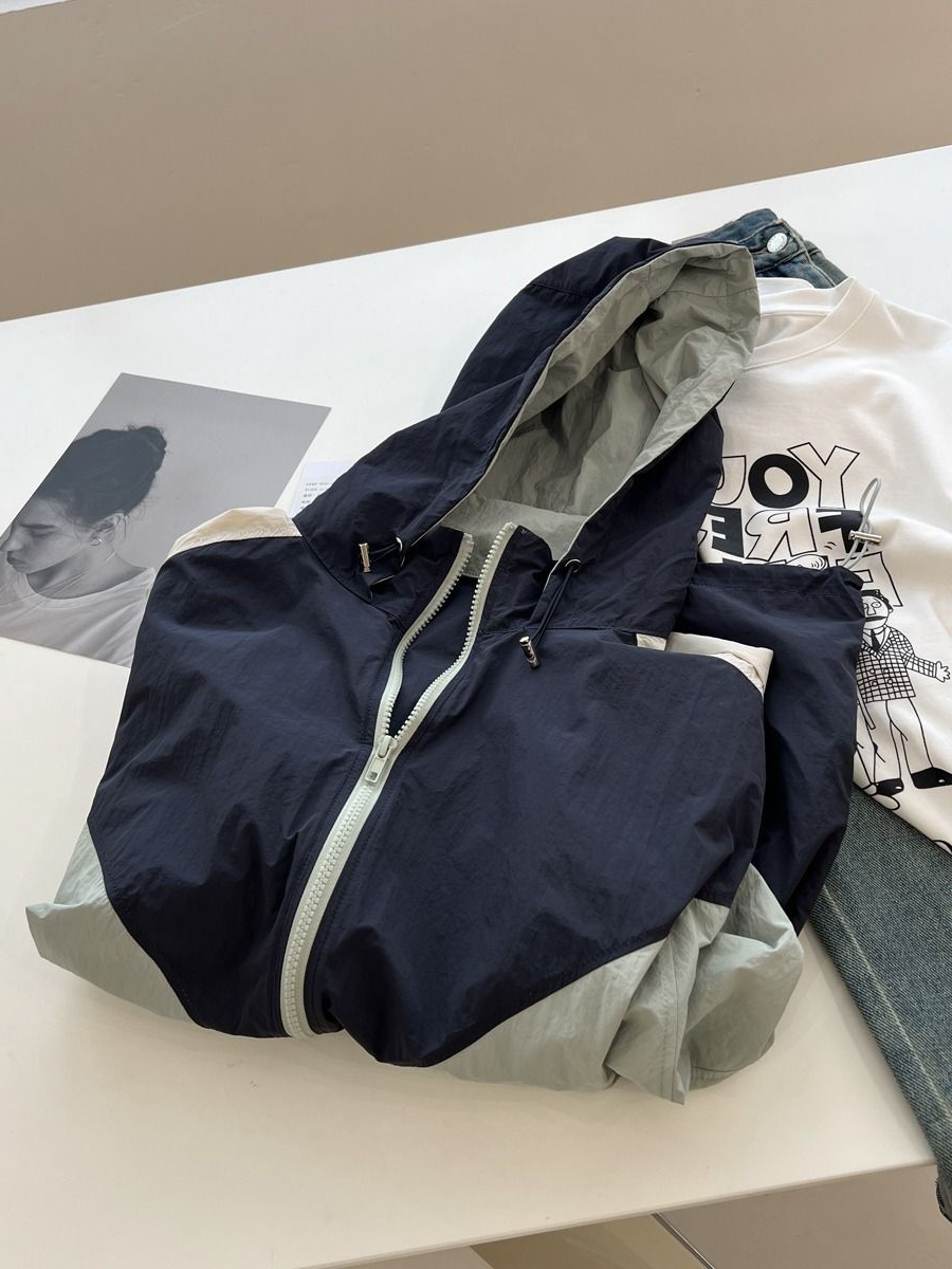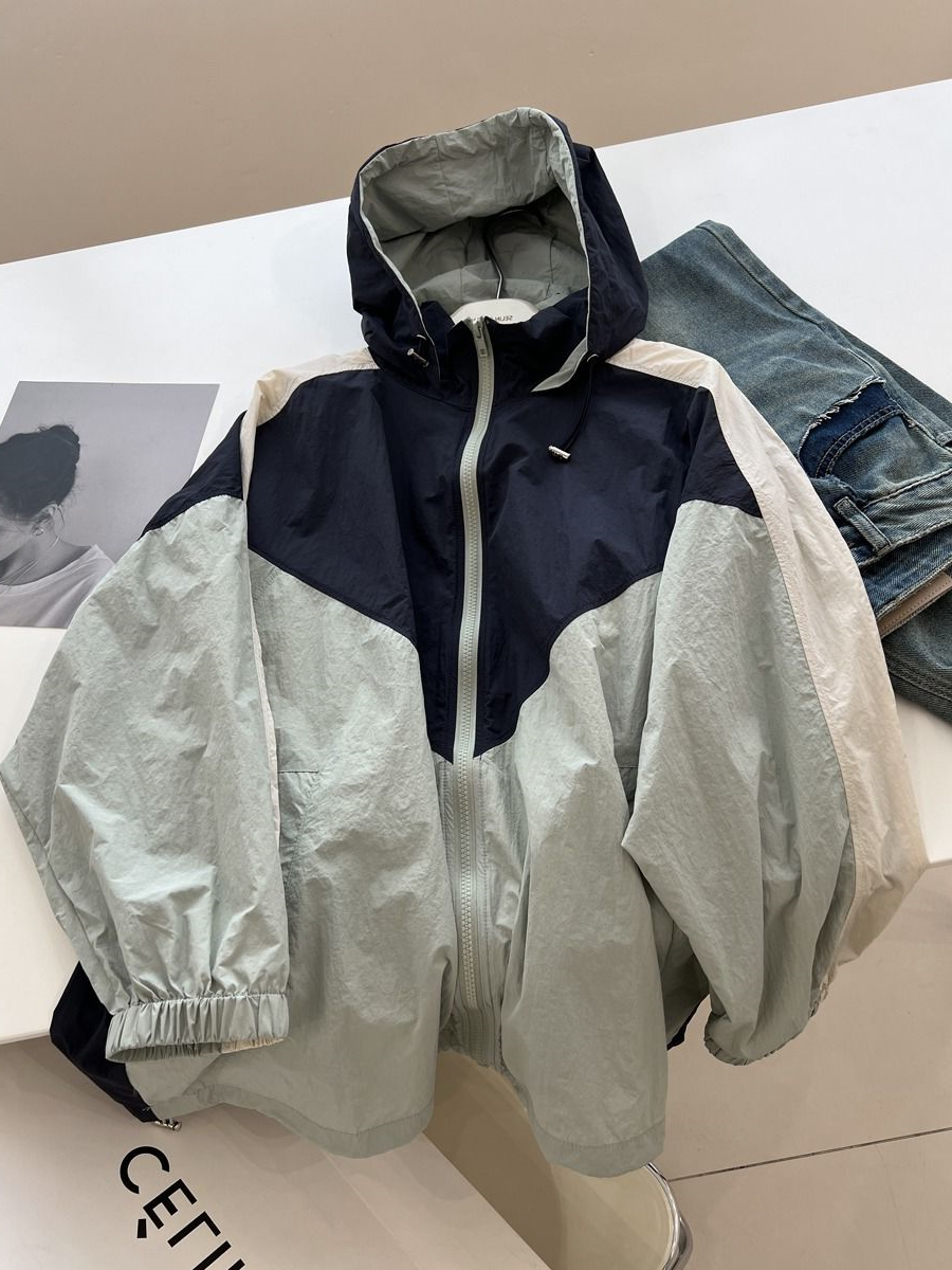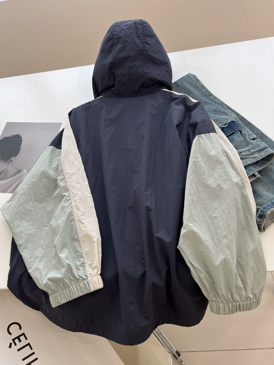大尺碼300斤運動風拼色防曬衝鋒衣男女裝夏季美式薄款寬鬆百搭外套2