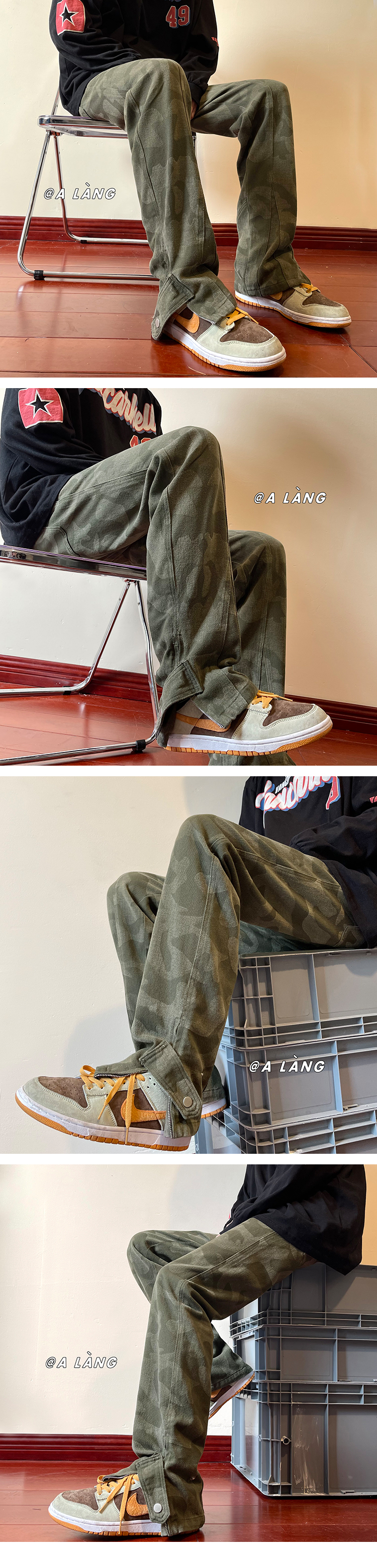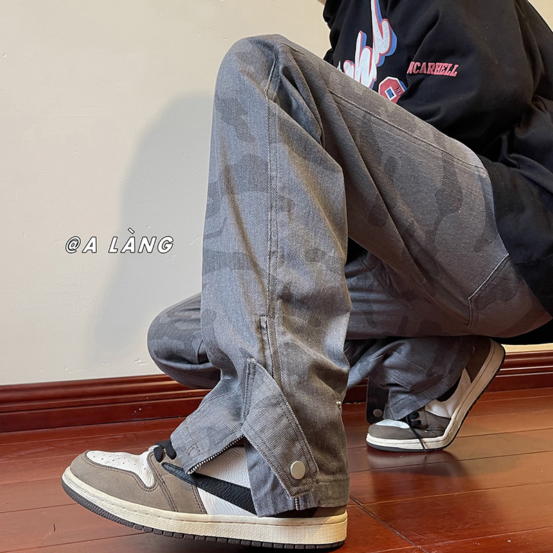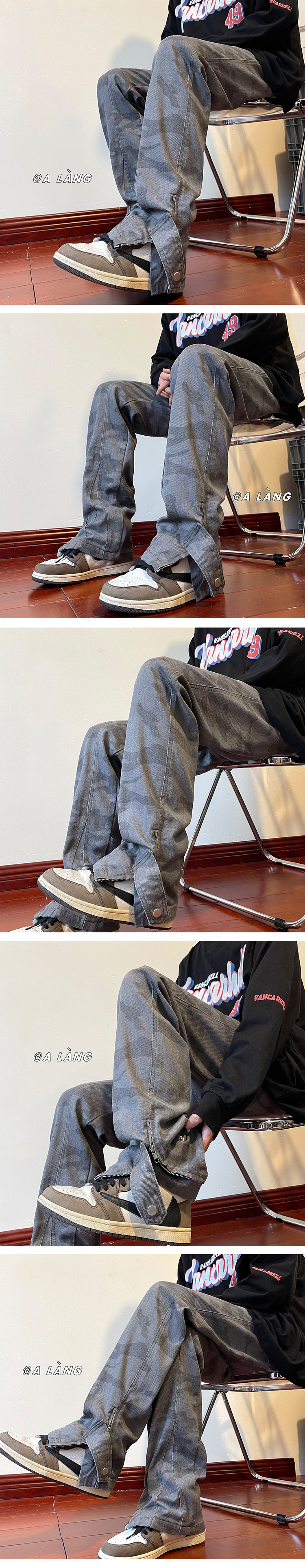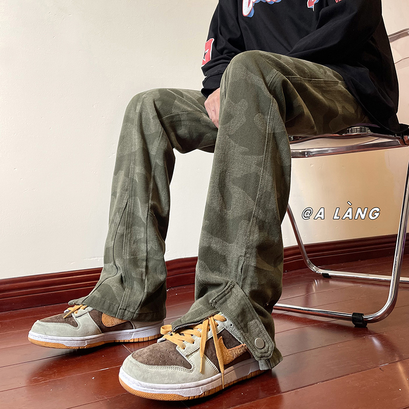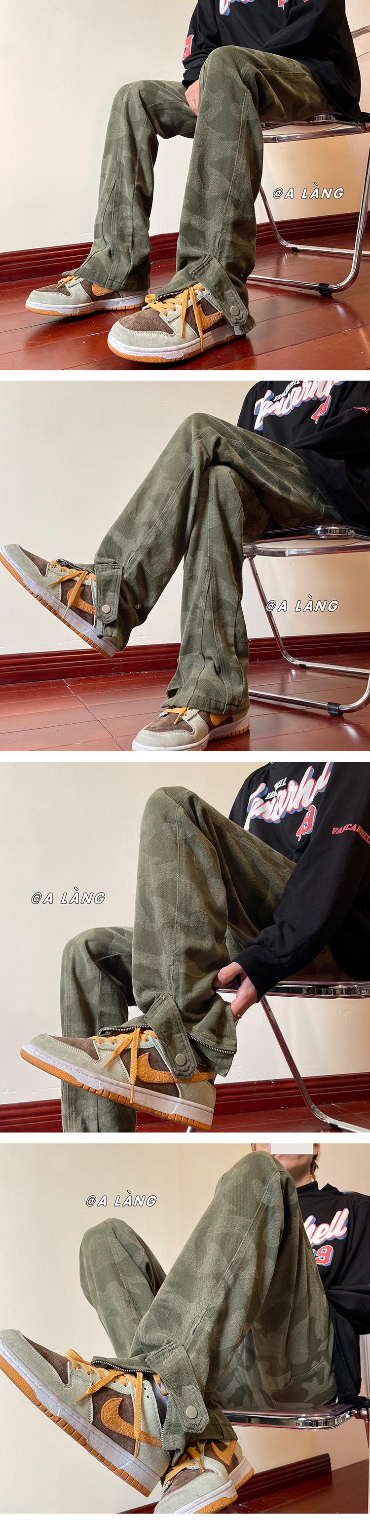 機能風迷彩工裝褲美式高街vibe風褲子歐美痞帥拉鍊按扣直筒牛仔褲