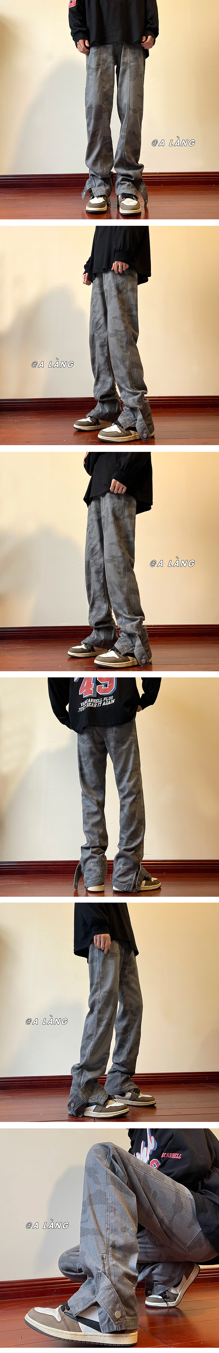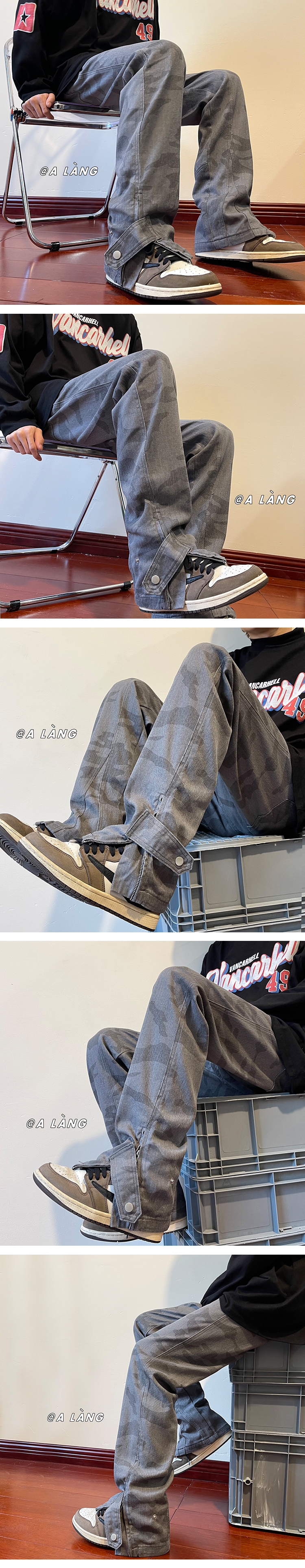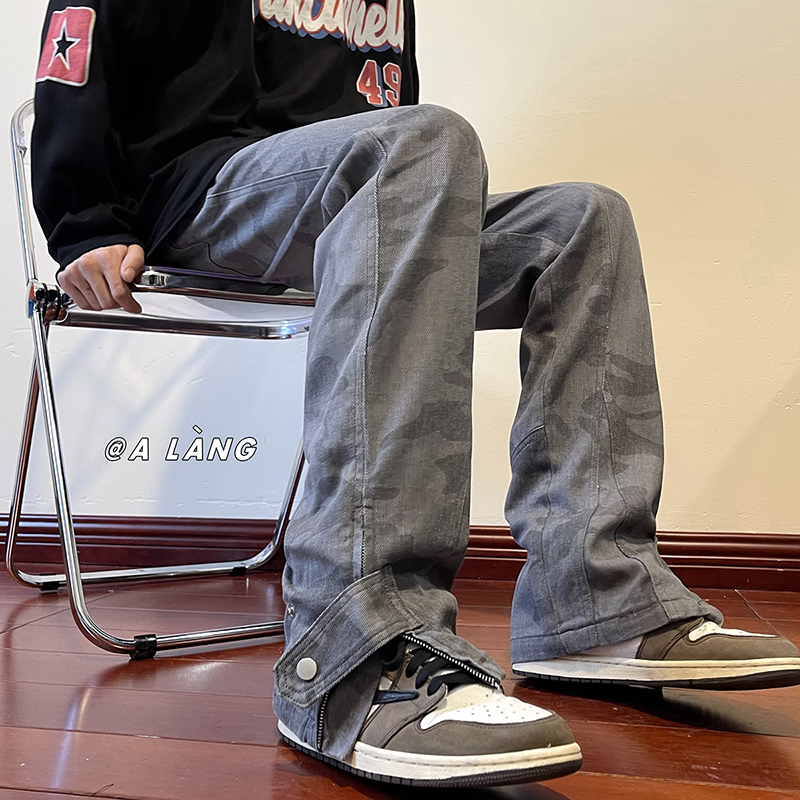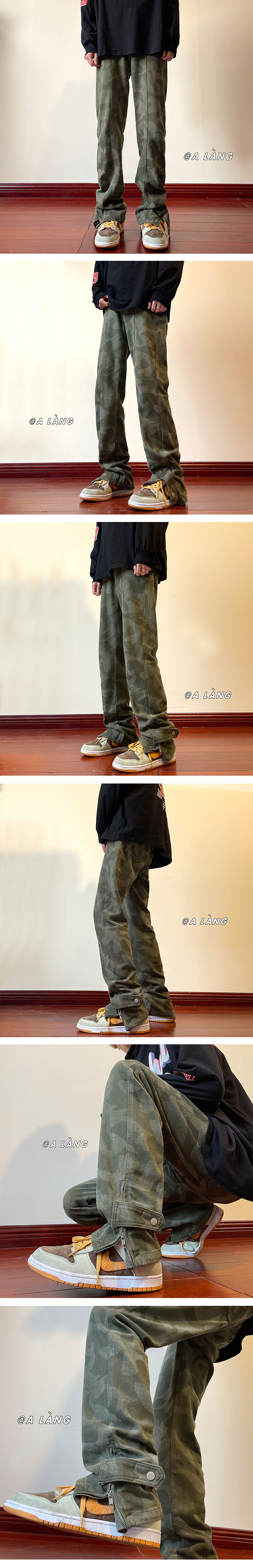 機能風迷彩工裝褲美式高街vibe風褲子歐美痞帥拉鍊按扣直筒牛仔褲