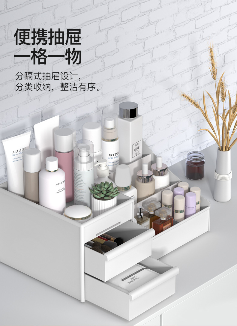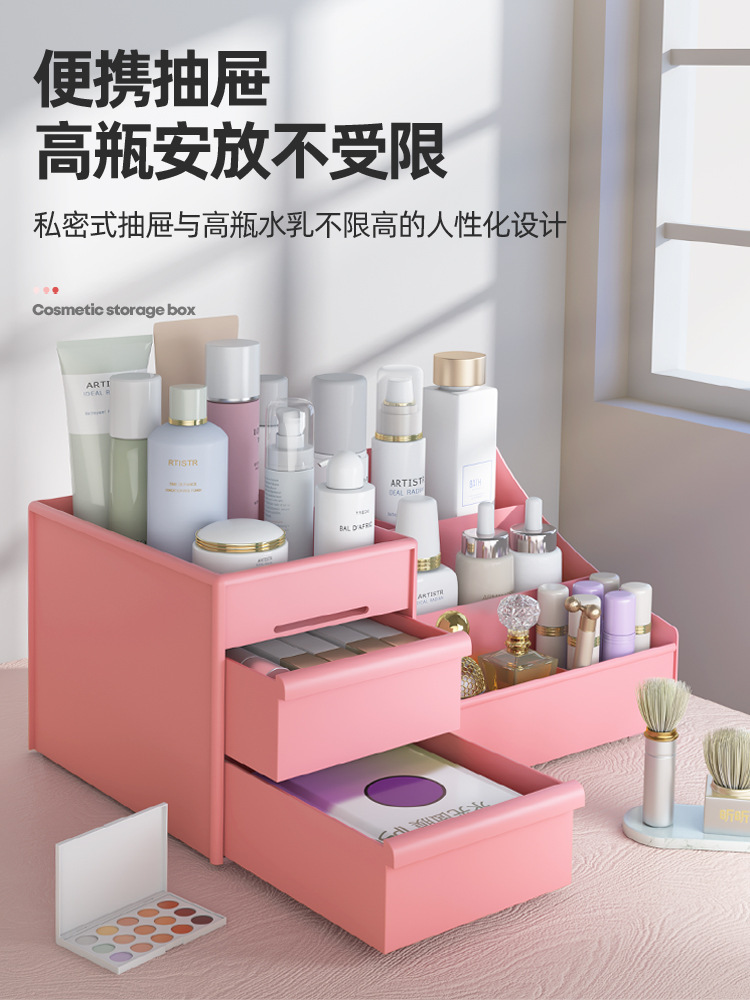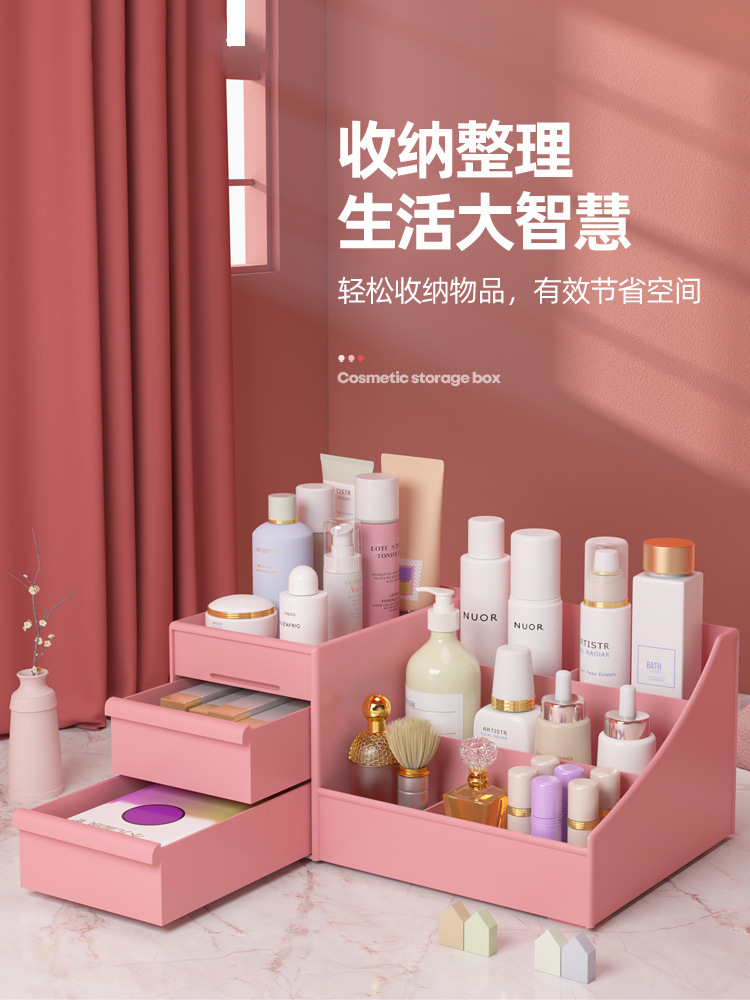 韩版化妆盒桌面化妆品收纳盒抽屉式塑料首饰储物整理箱收纳置物架