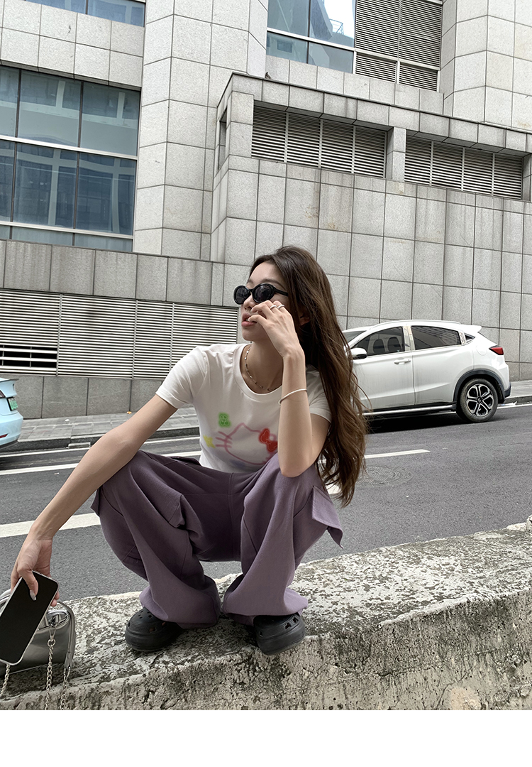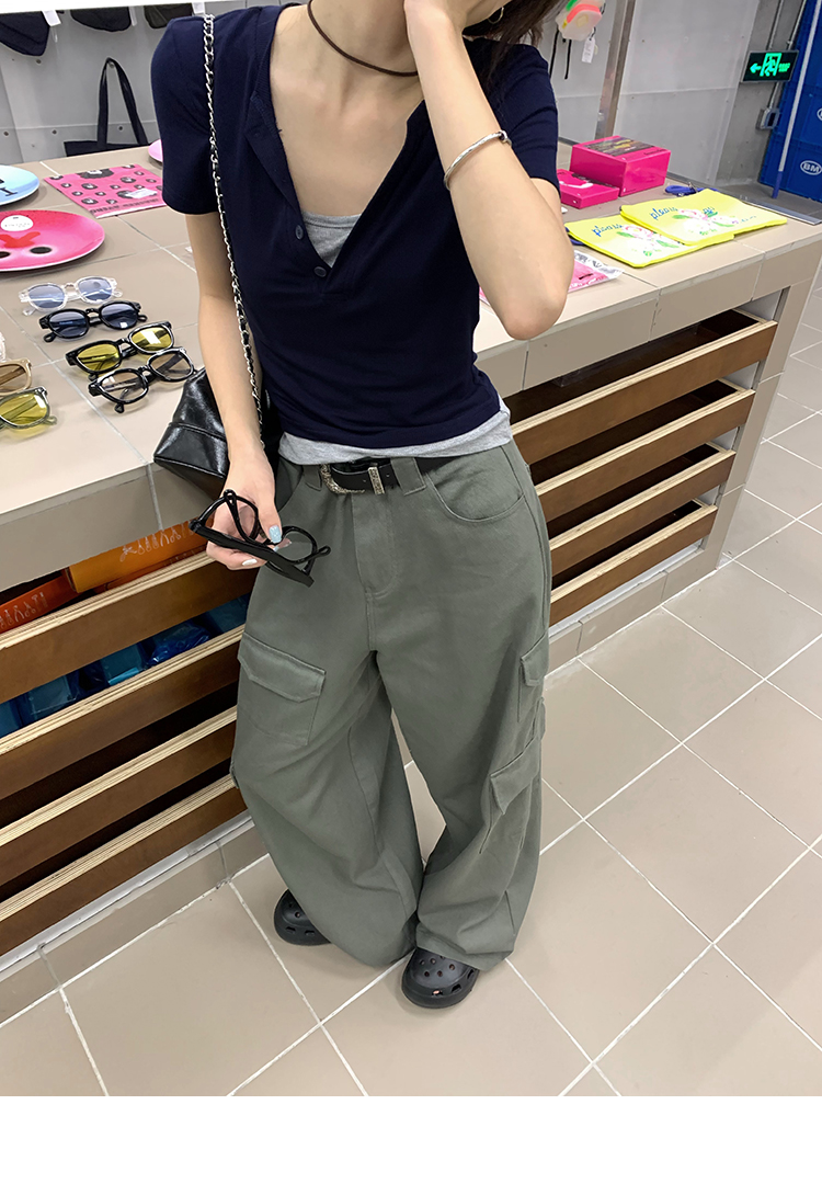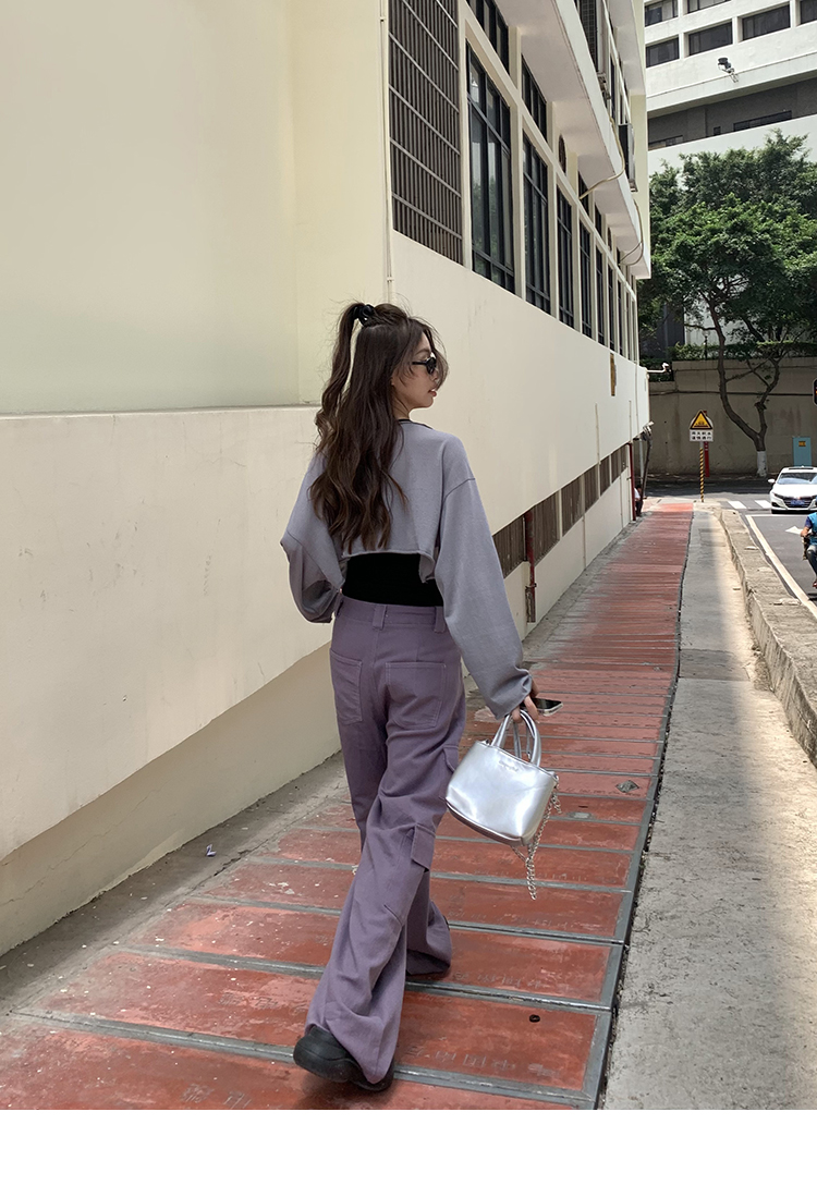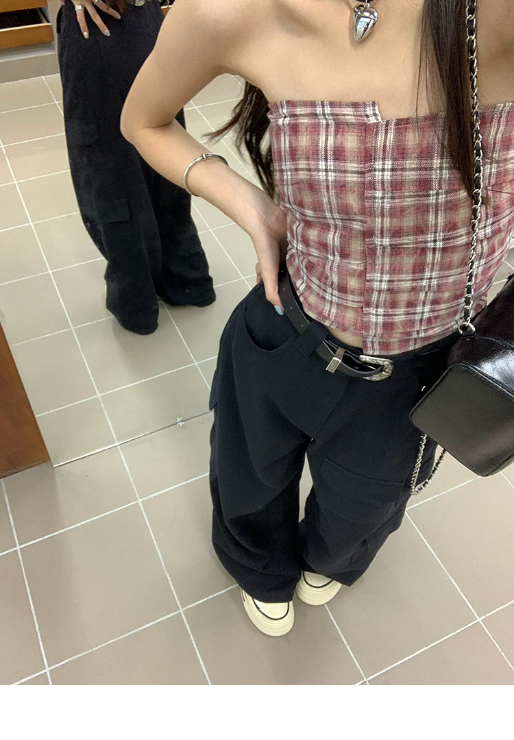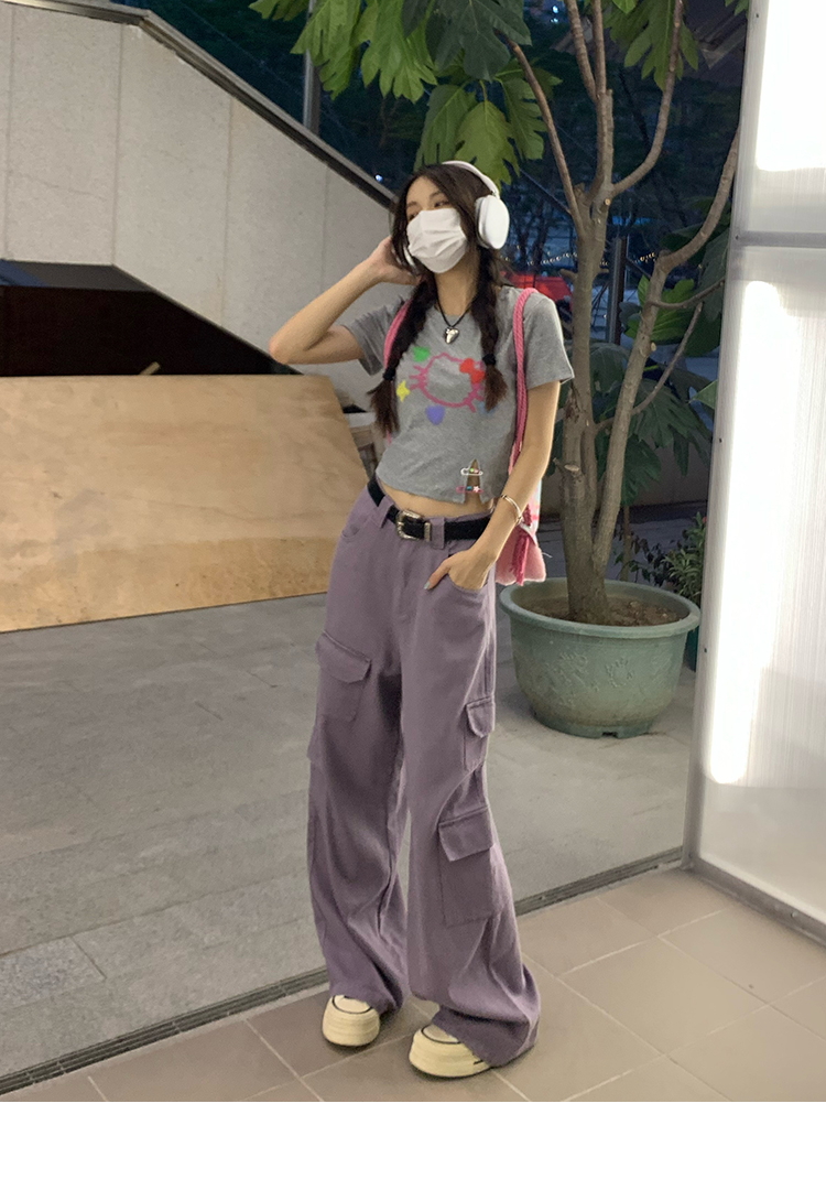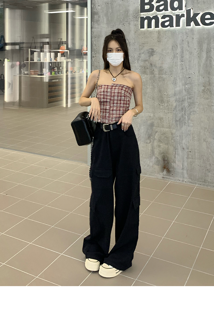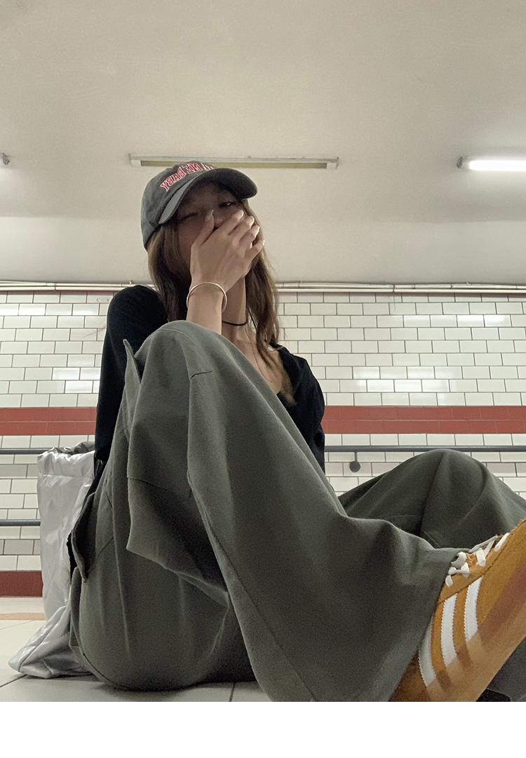 荒荒家 口袋工裝褲2023夏季新款港風寬鬆高腰機能闊腿休閒褲女ins
