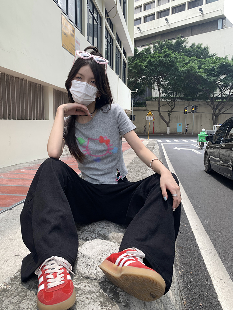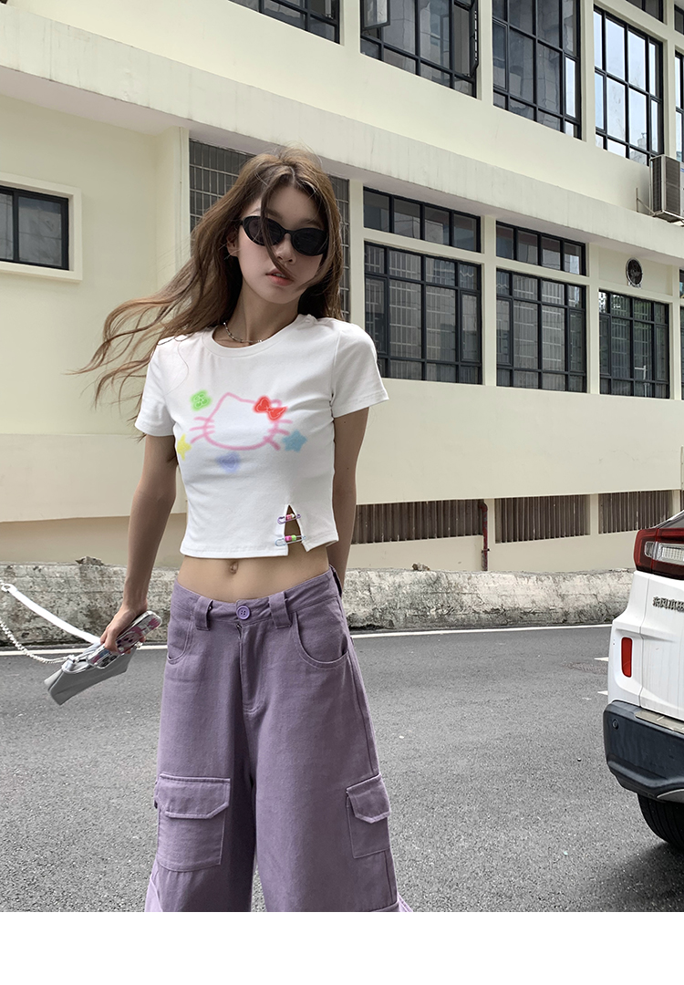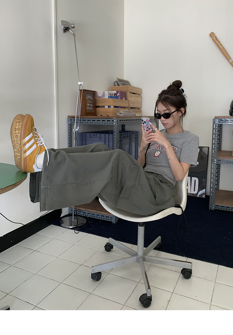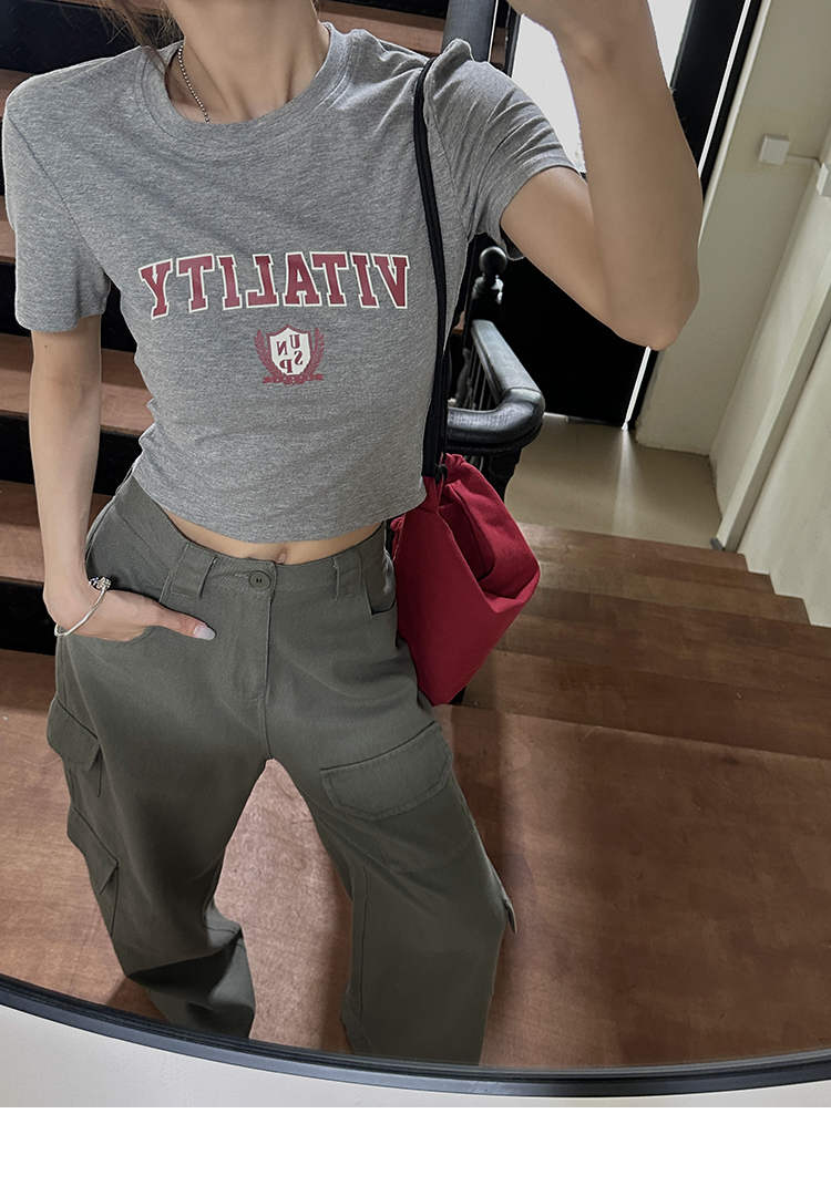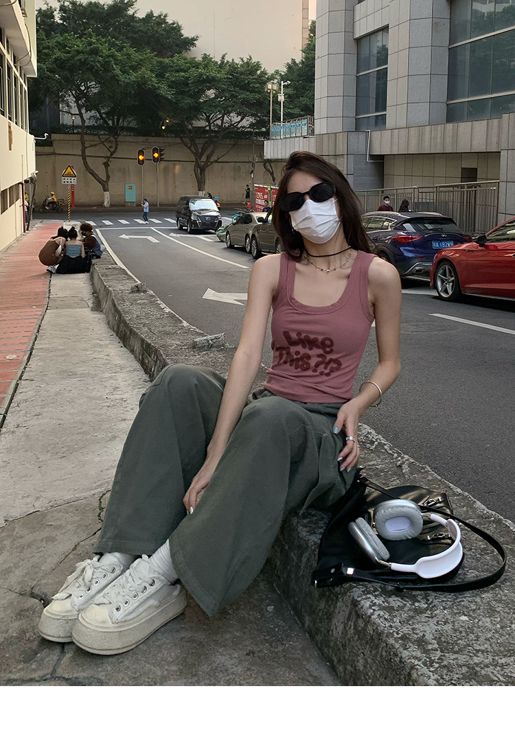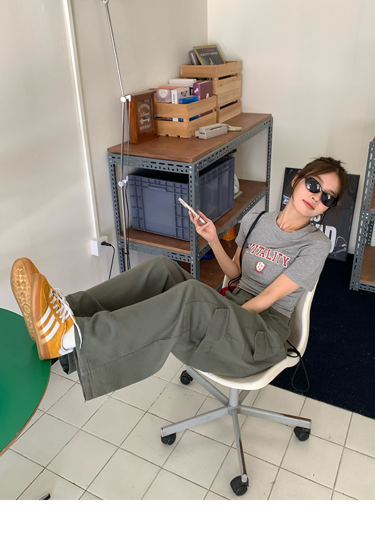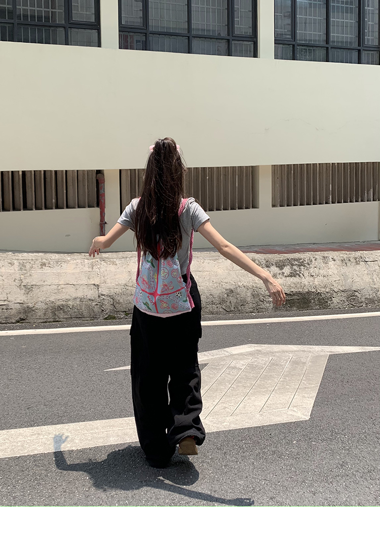 荒荒家 口袋工裝褲2023夏季新款港風寬鬆高腰機能闊腿休閒褲女ins