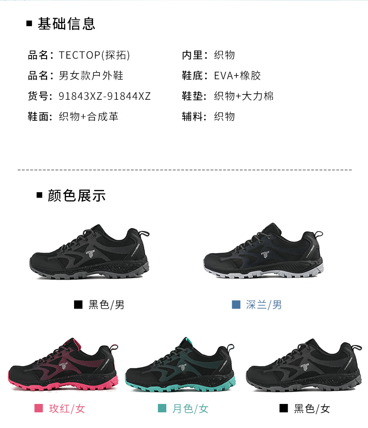 探拓戶外春夏男女情侶款網面透氣運動鞋防滑輕便拼色徒步鞋登山鞋