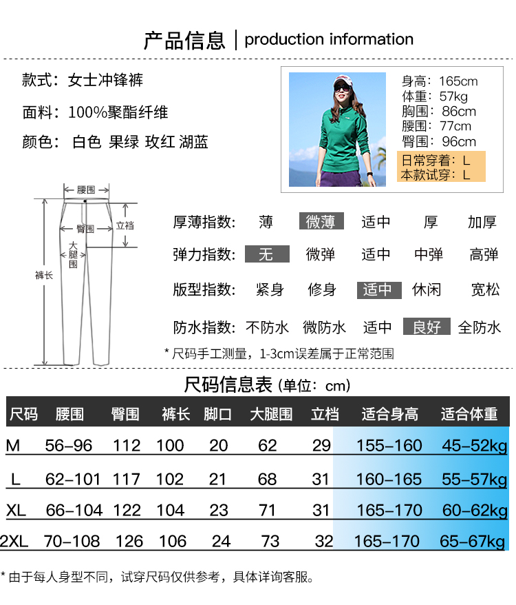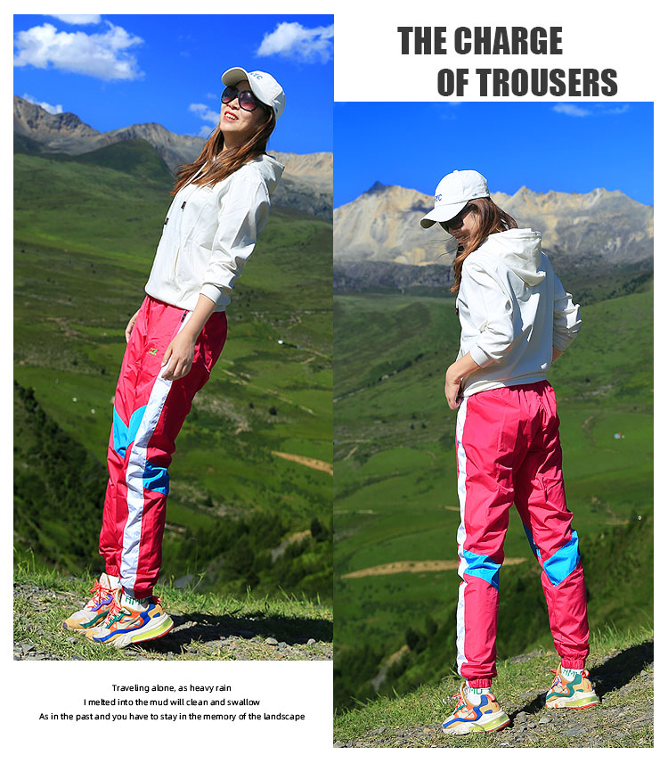 雪丘島戶外新品登山徒步四季款防風防水衝鋒褲寬鬆透氣單衝女