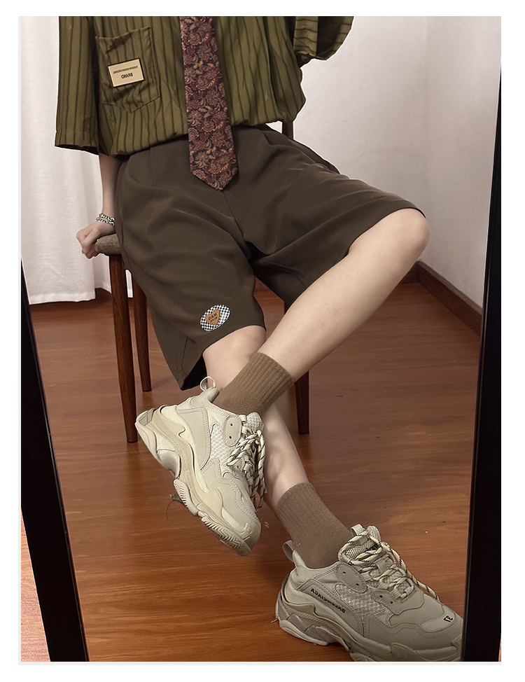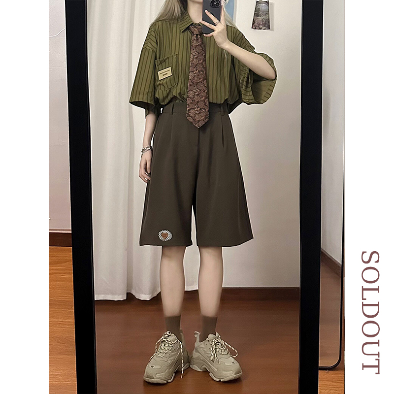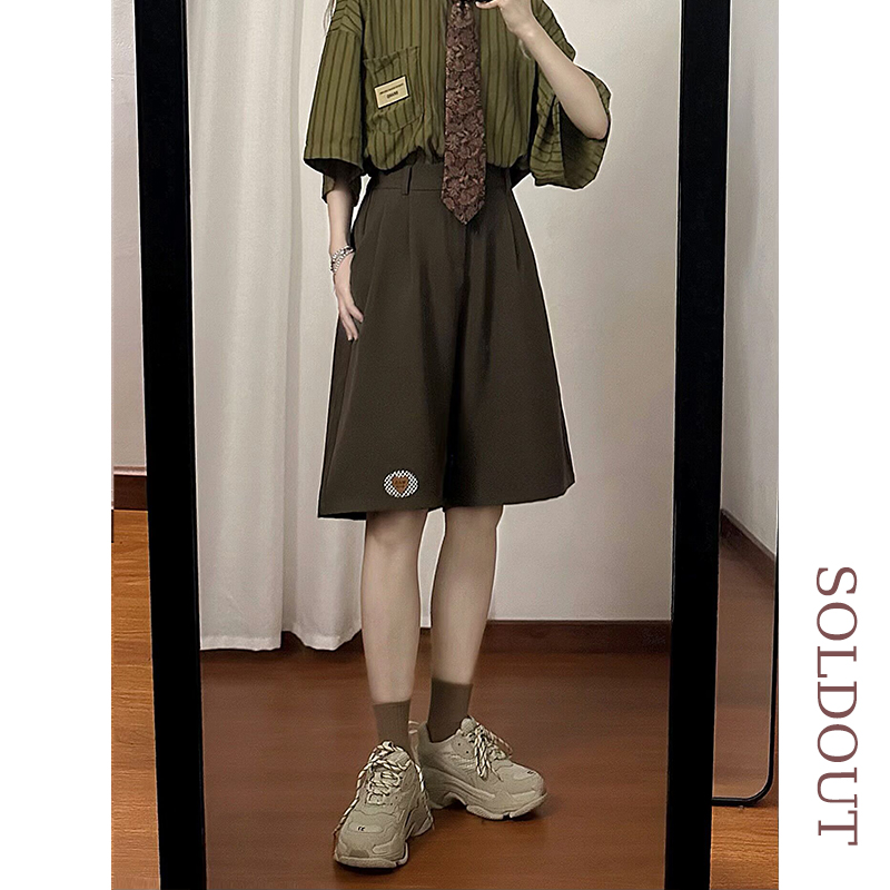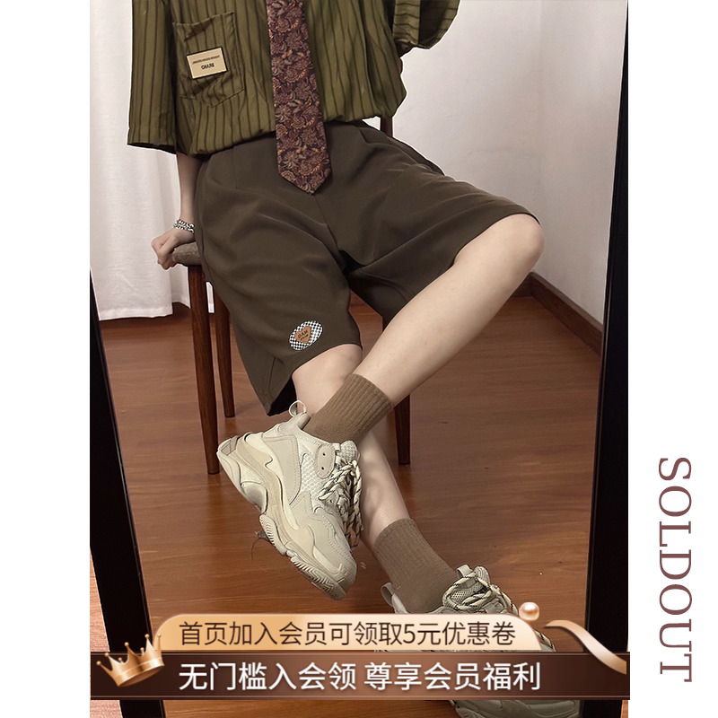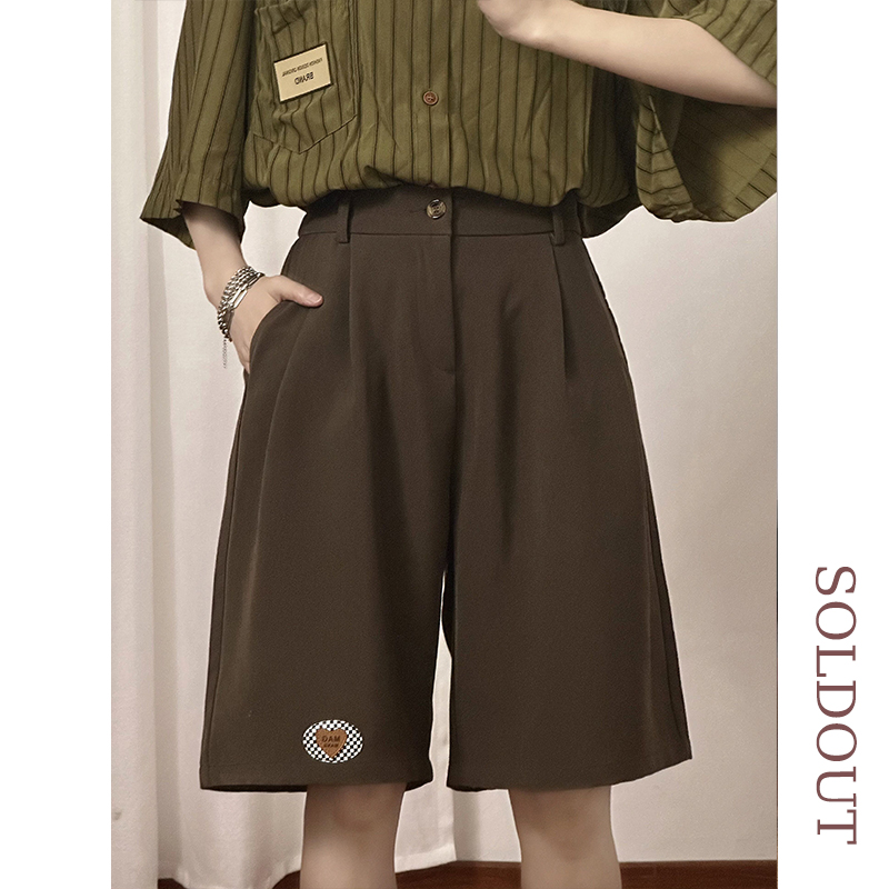 SOLDOUT原創復古繡標休閒闊腿西裝短褲男女寬鬆垂感直筒五分褲夏