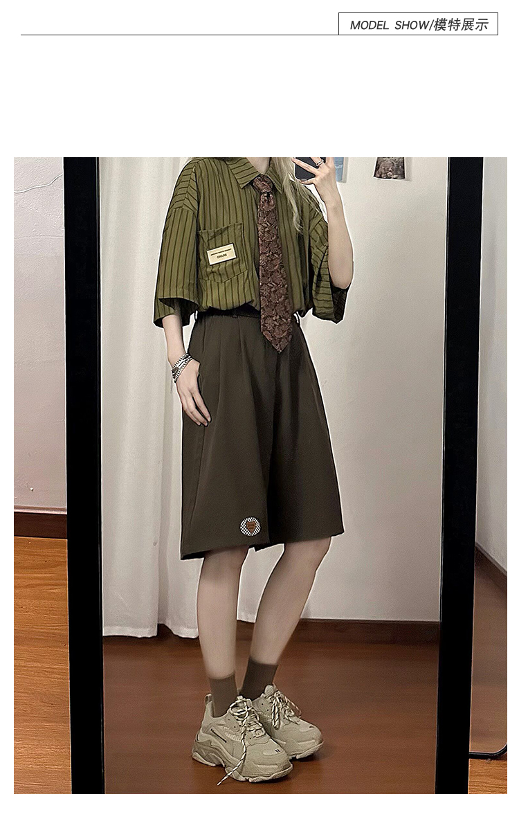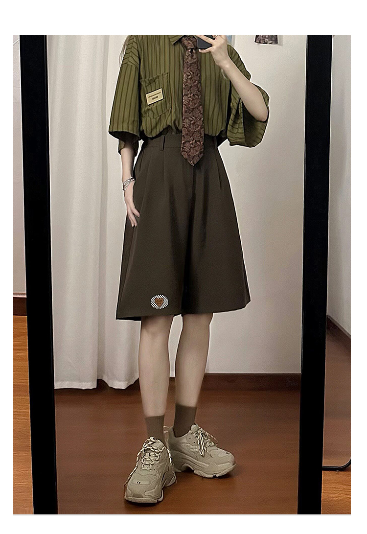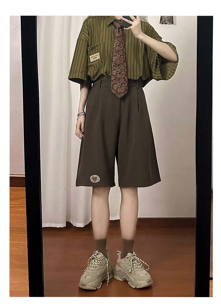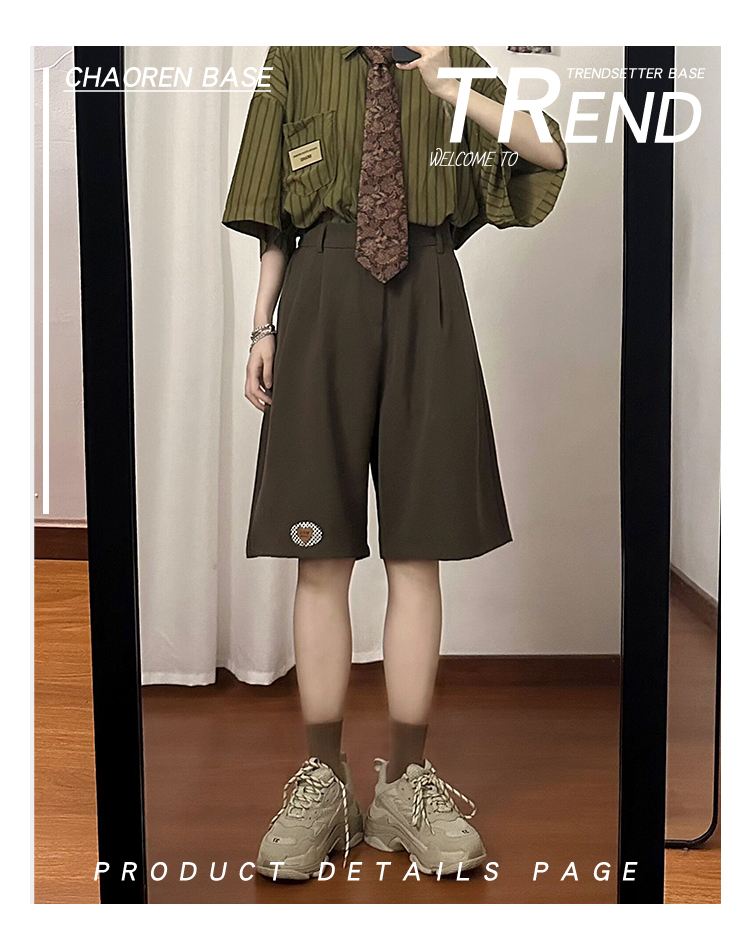 SOLDOUT原創復古繡標休閒闊腿西裝短褲男女寬鬆垂感直筒五分褲夏