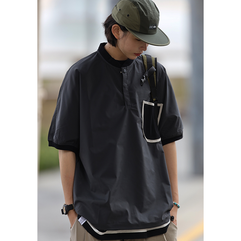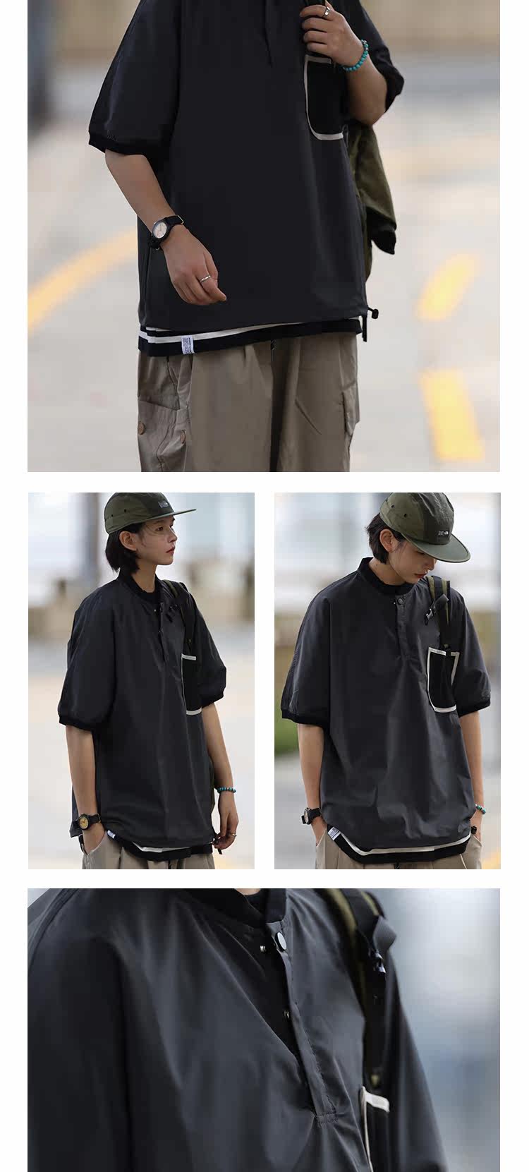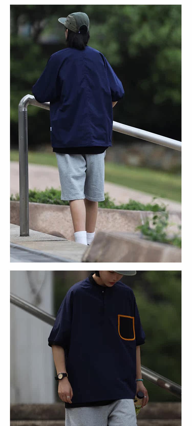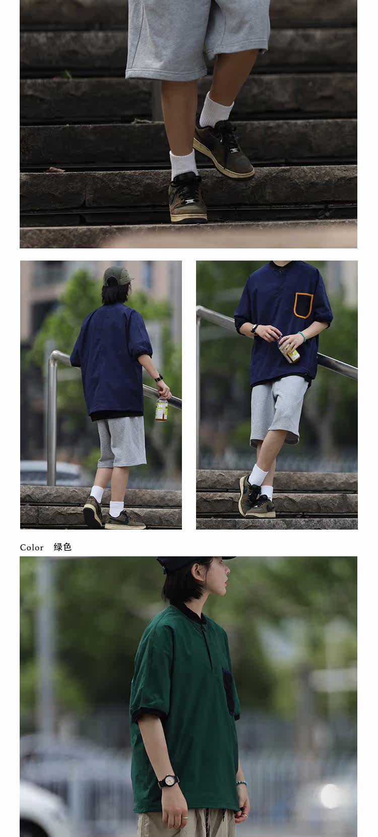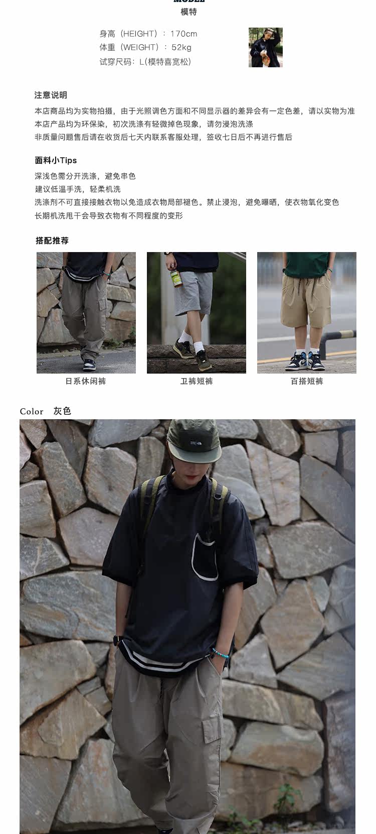 Nobodyknows 日系純色潮戶外機能通勤廓形TEE拼接口袋寬鬆男女T恤