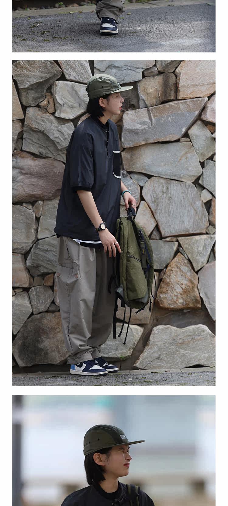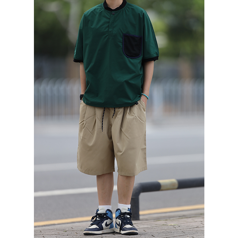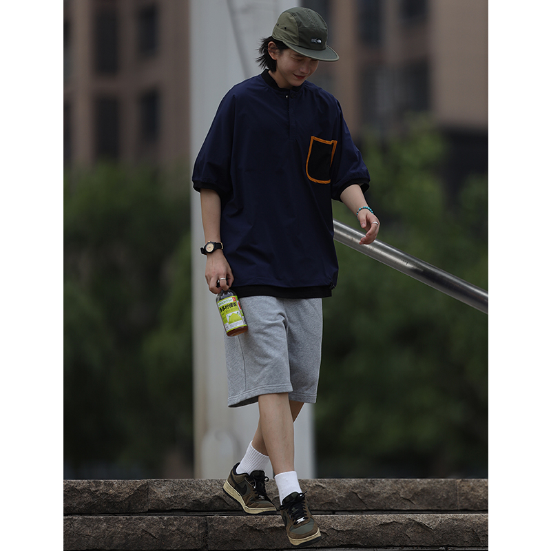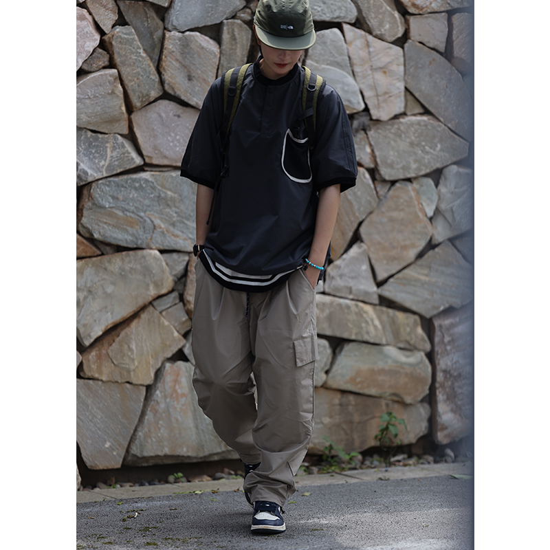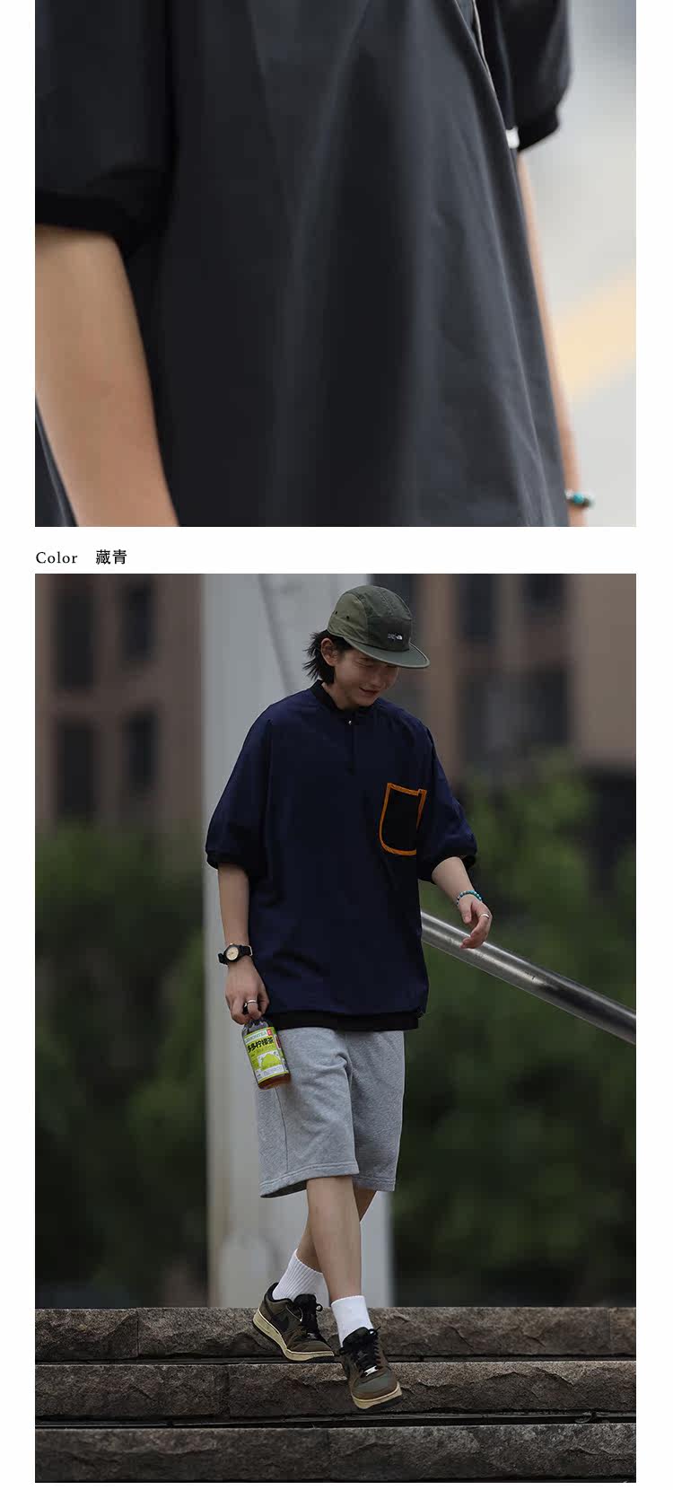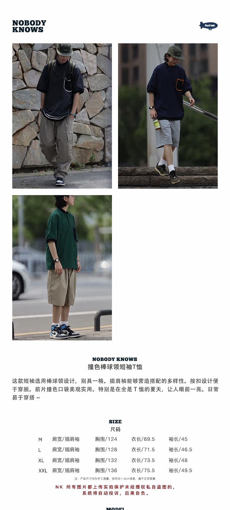 Nobodyknows 日系純色潮戶外機能通勤廓形TEE拼接口袋寬鬆男女T恤
