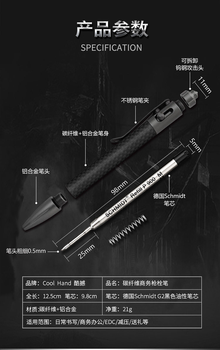 多功能戰術筆鎢鋼合法黑科技防身筆edc工具筆碳纖維簽字筆槍栓筆