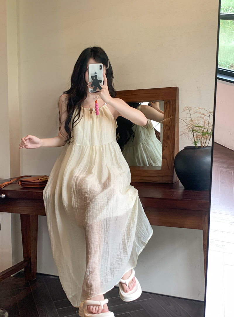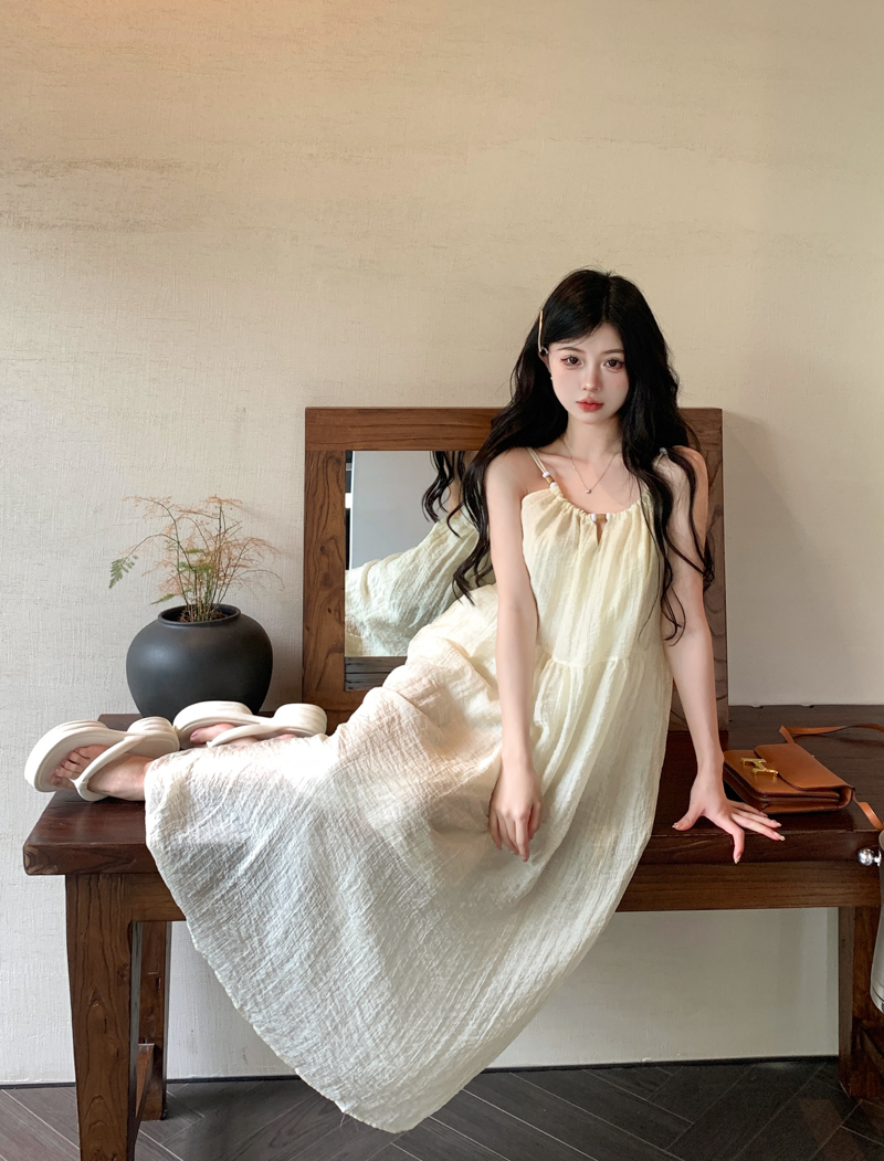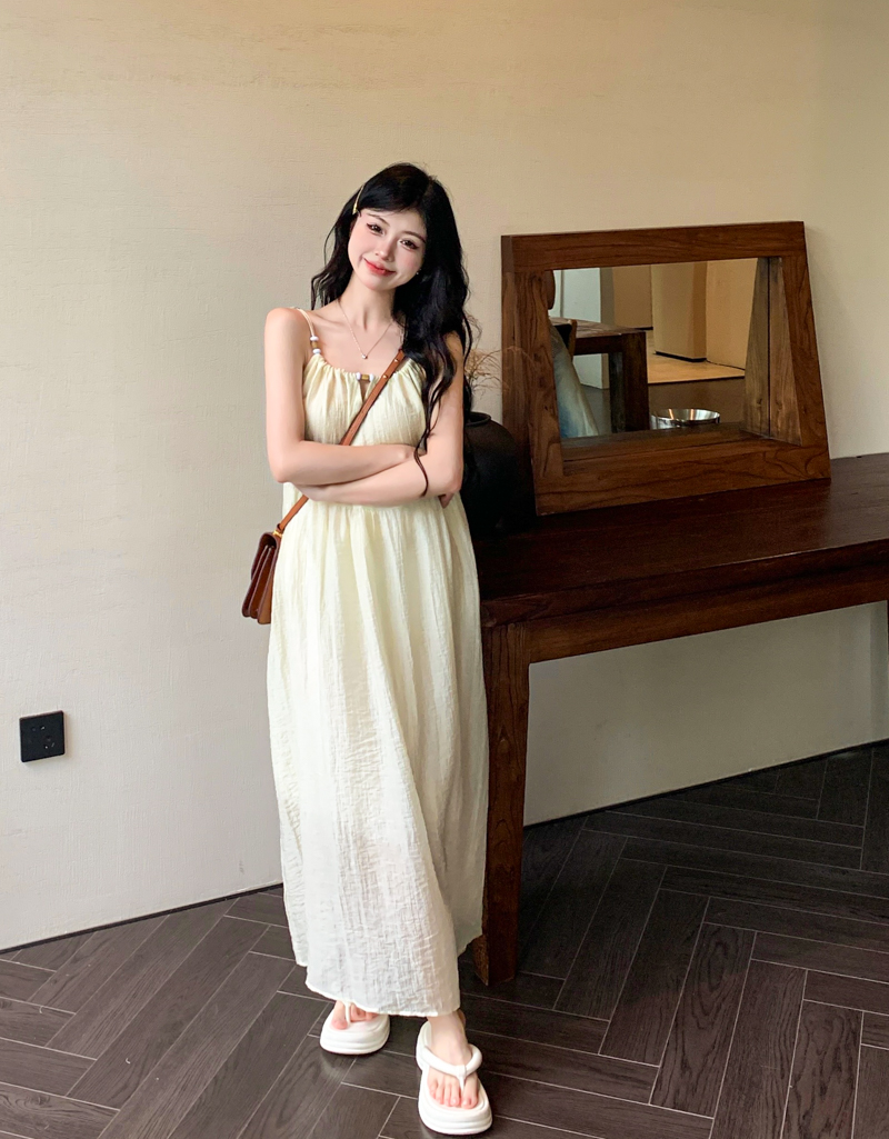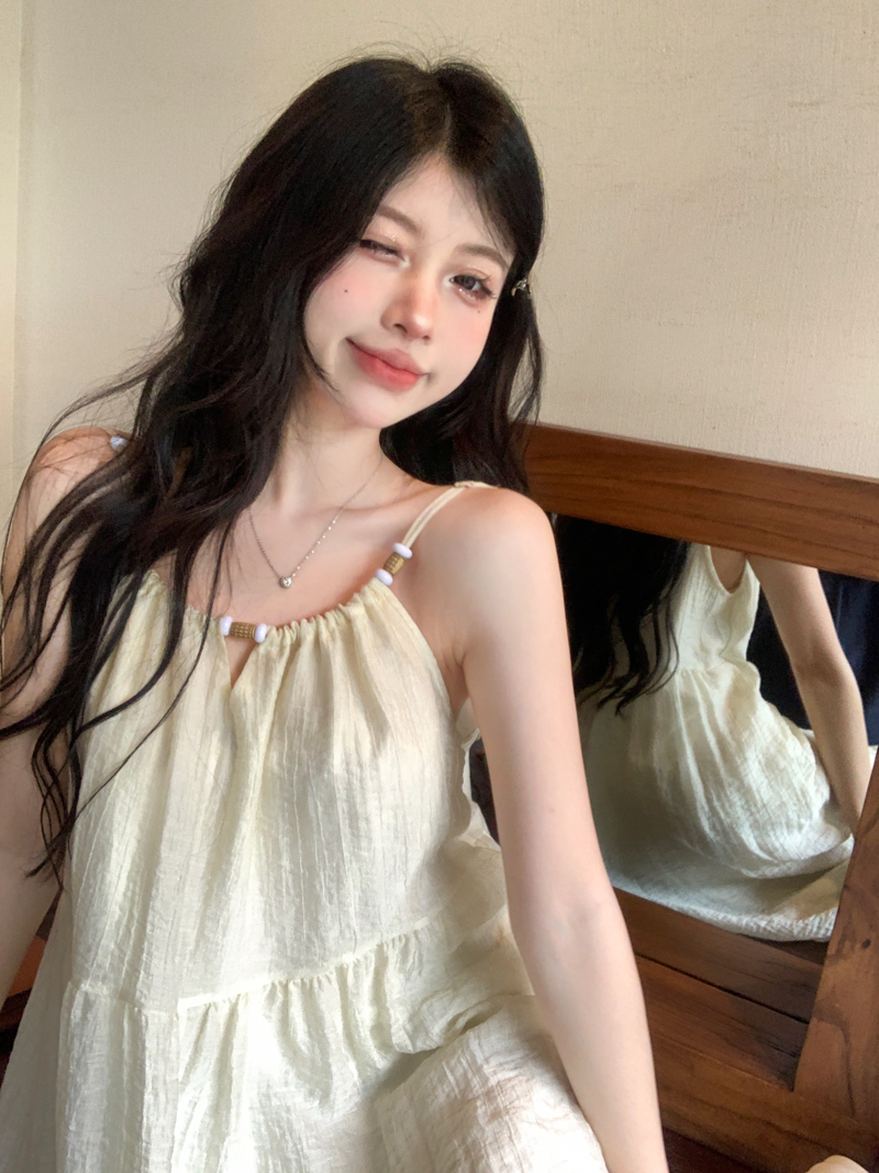 PPHOME甜美系花~海邊度假風顯瘦無袖吊帶洋裝夏季高級A字裙長裙