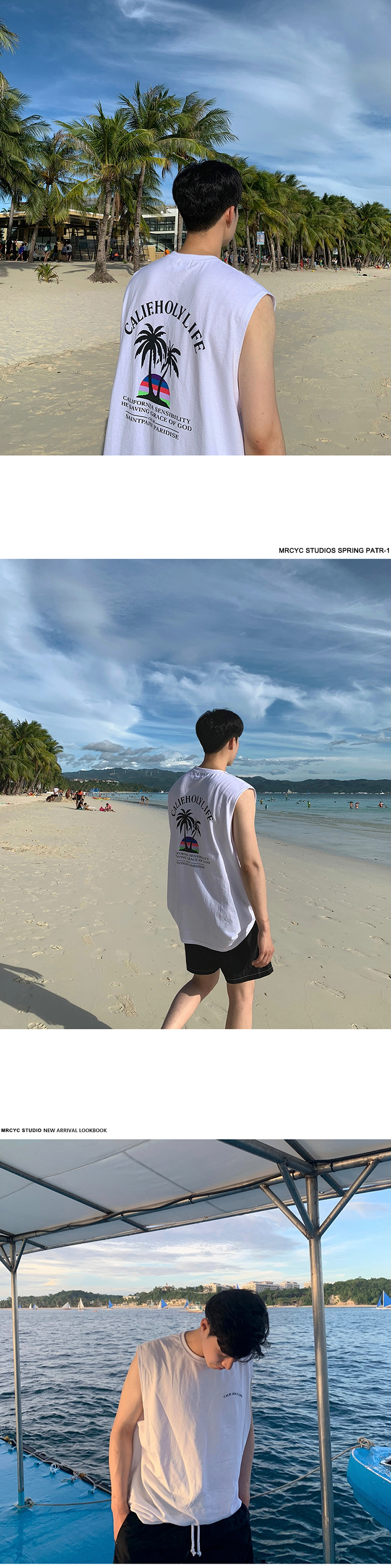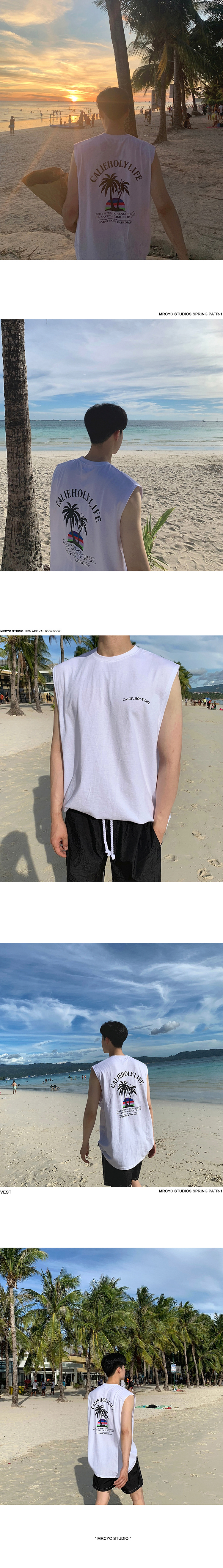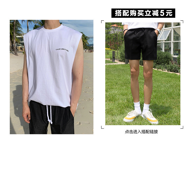 MRCYC夏季男士沙灘坎肩T恤韓版潮流百搭背心夏季寬鬆無袖打底衣服
