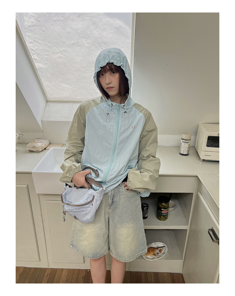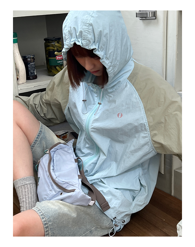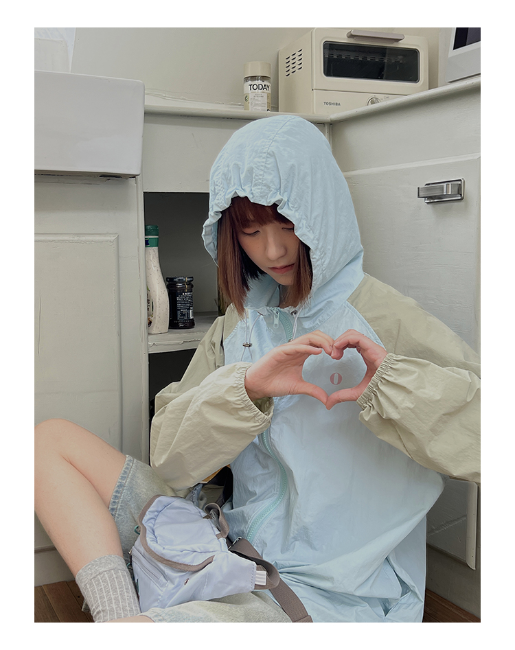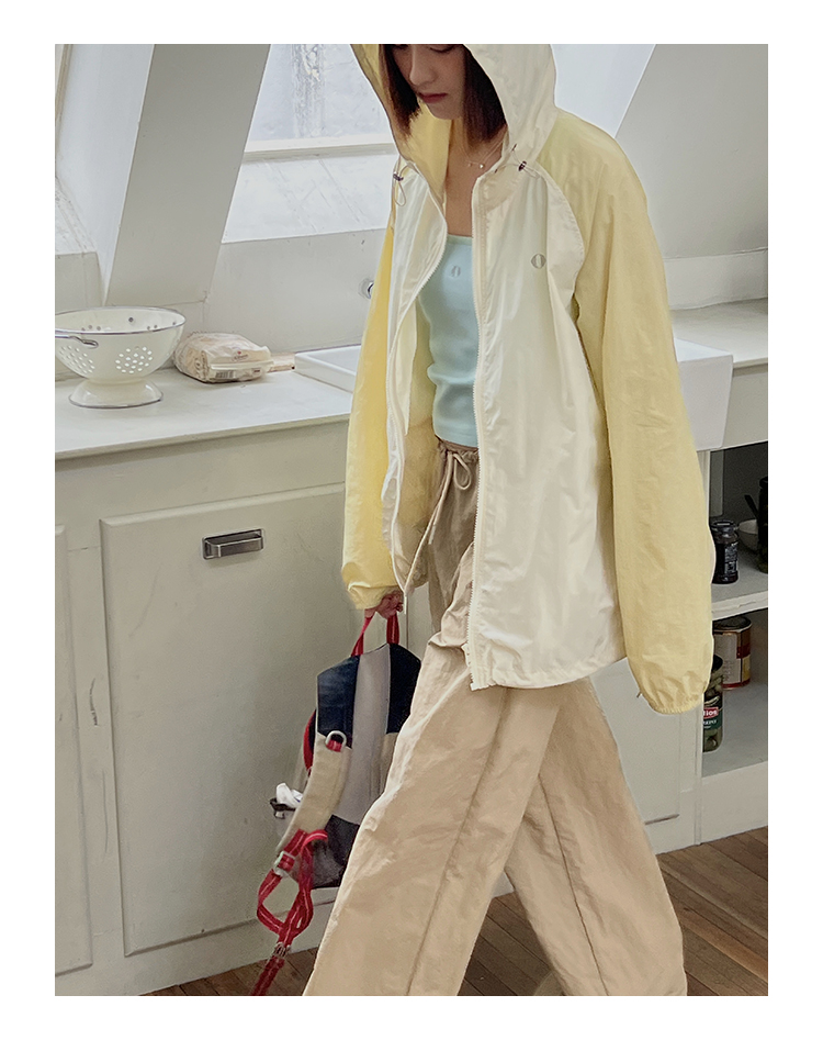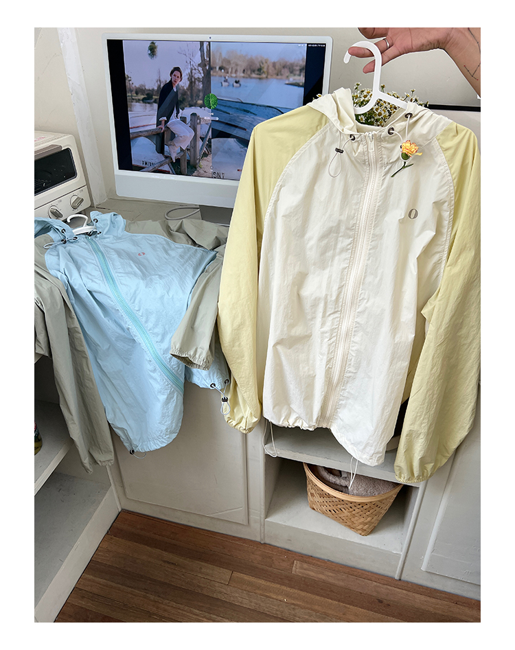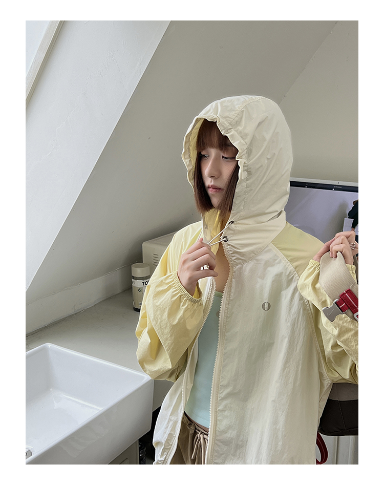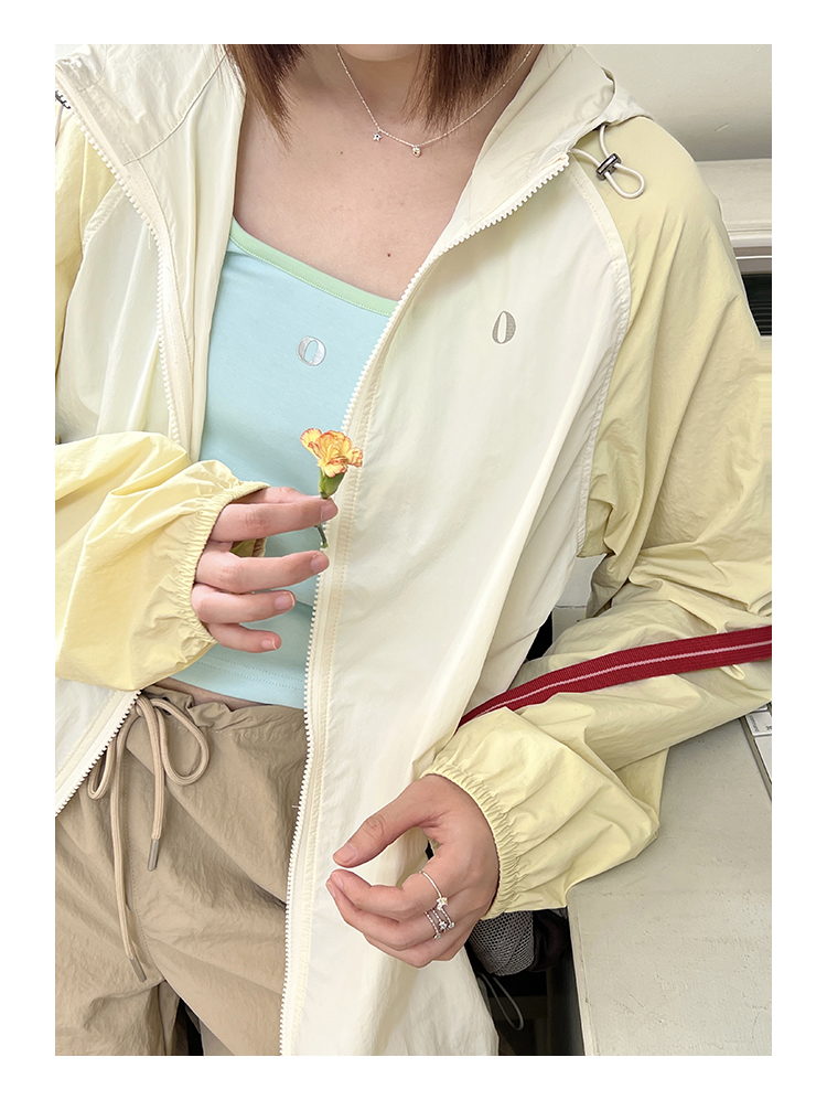POXFFEE/撞色防曬衣女秋季休閒簡約風設計感小眾輕薄連帽長袖外套