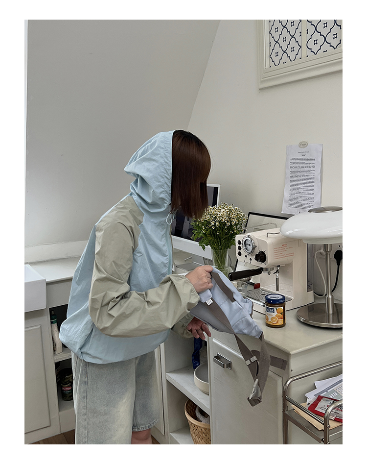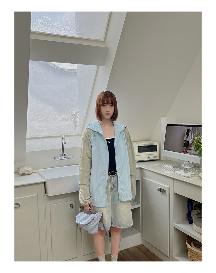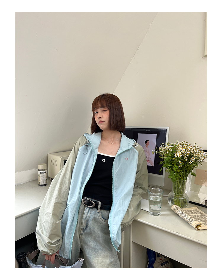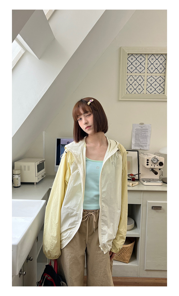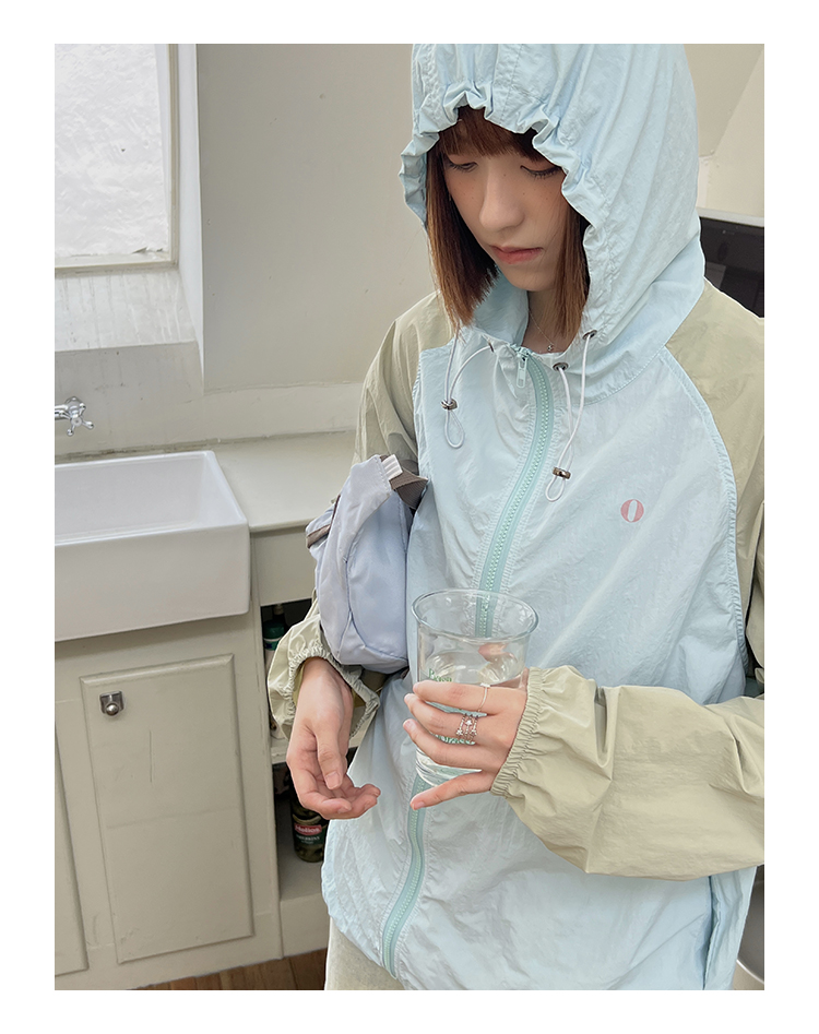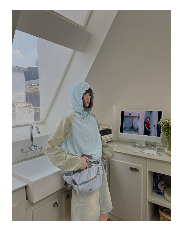 POXFFEE/撞色防曬衣女秋季休閒簡約風設計感小眾輕薄連帽長袖外套