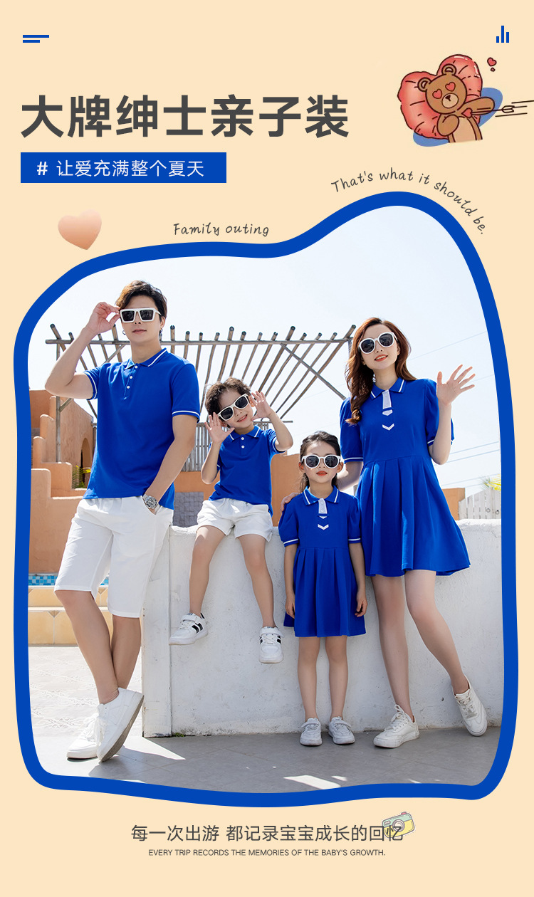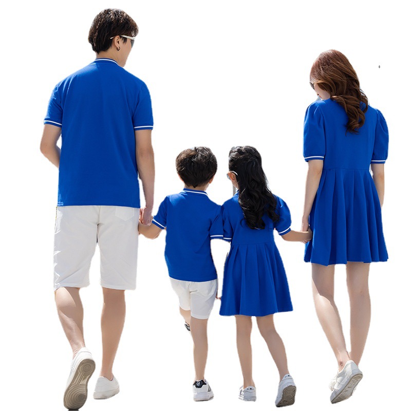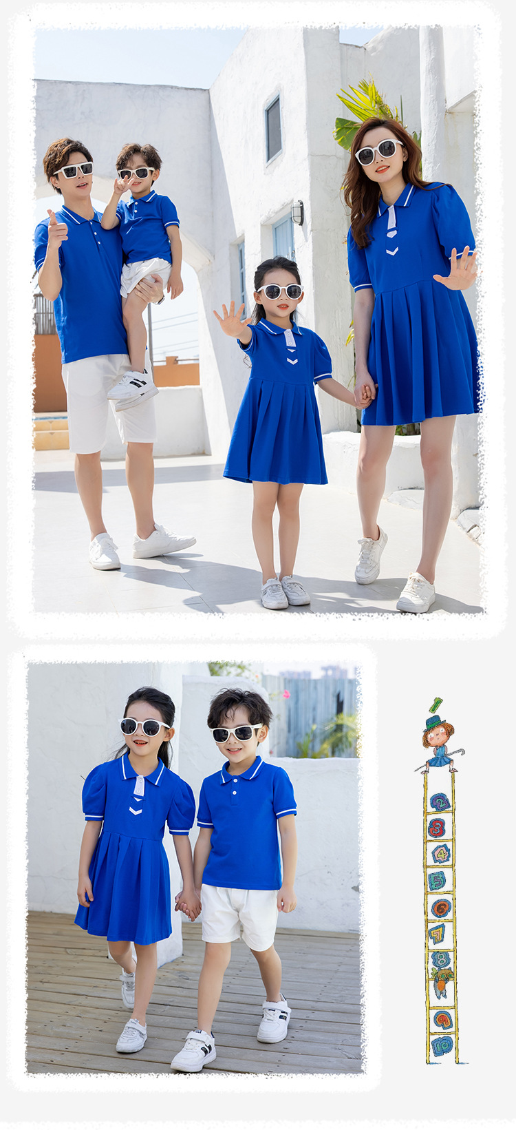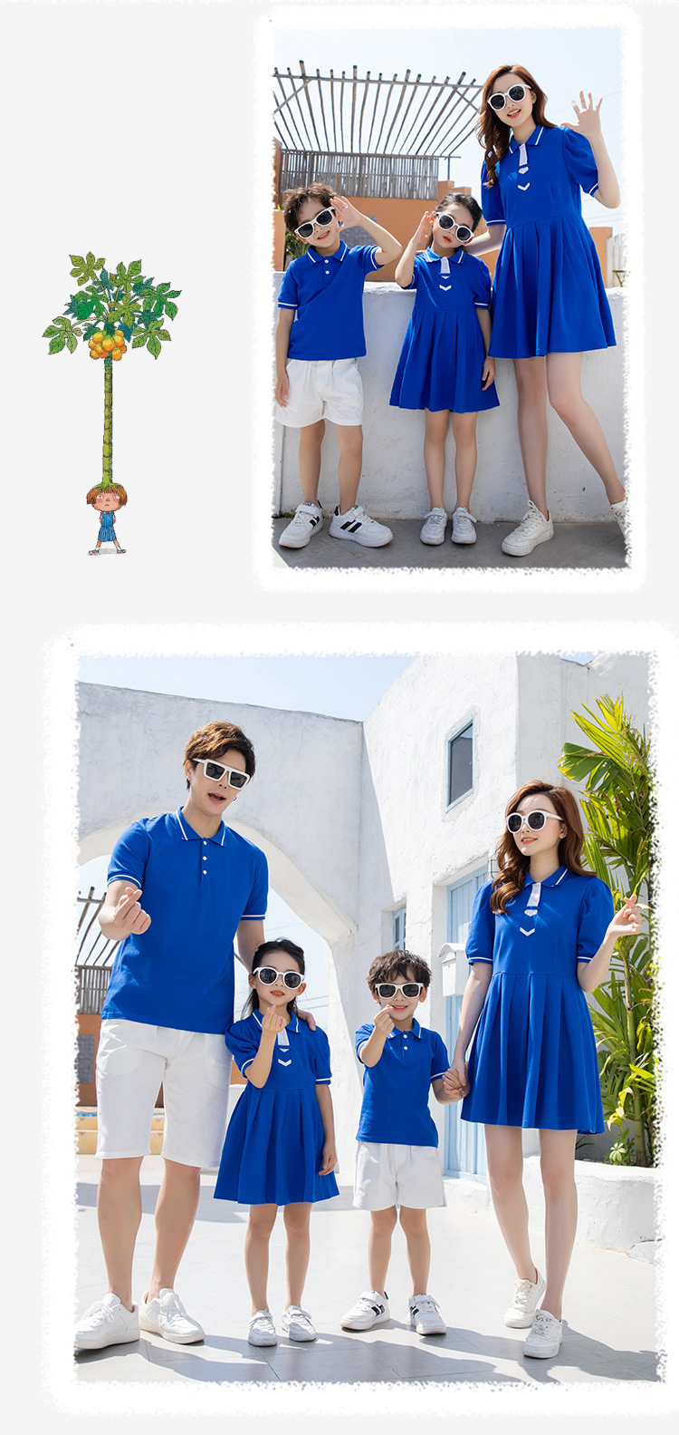 2022亲子装夏季新款一家三口四口polo衫短袖套装母女连衣裙代发