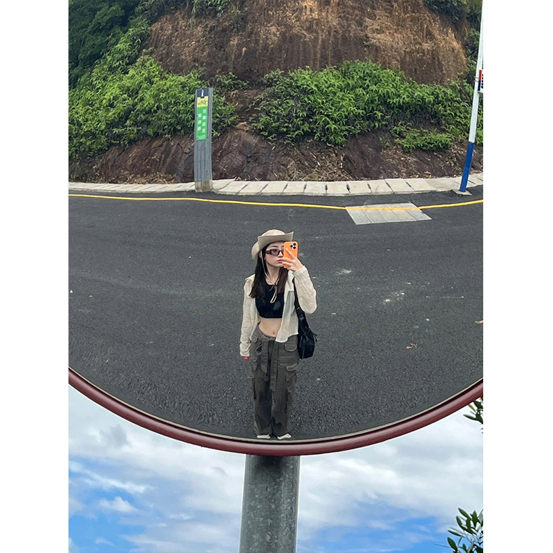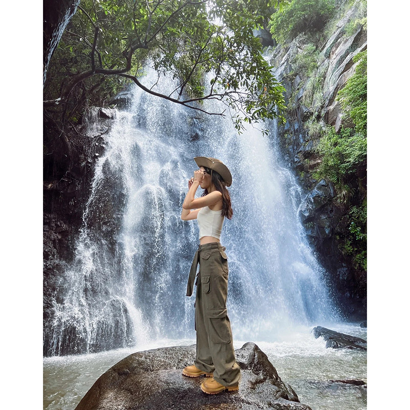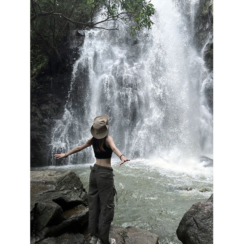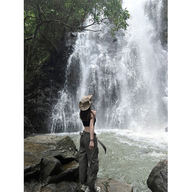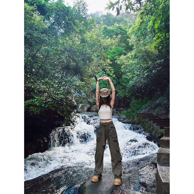 阿美咔嘰軍綠色工裝褲女美式復古vibe褲子女戶外機能登山衝鋒褲夏