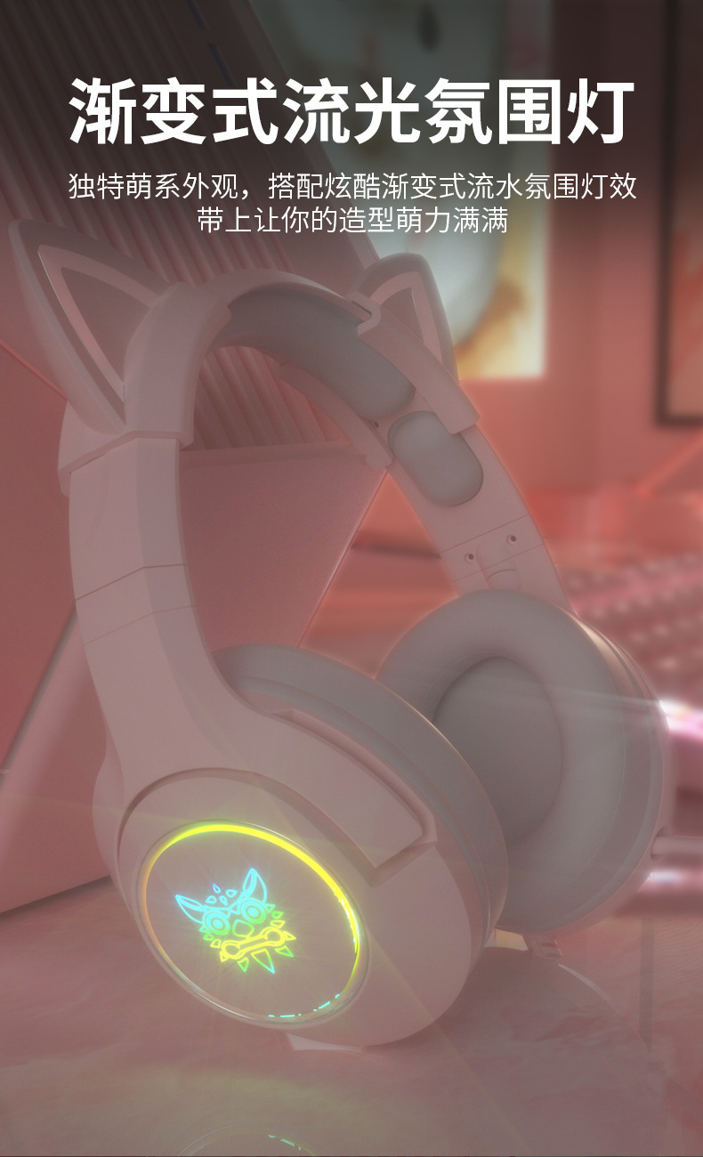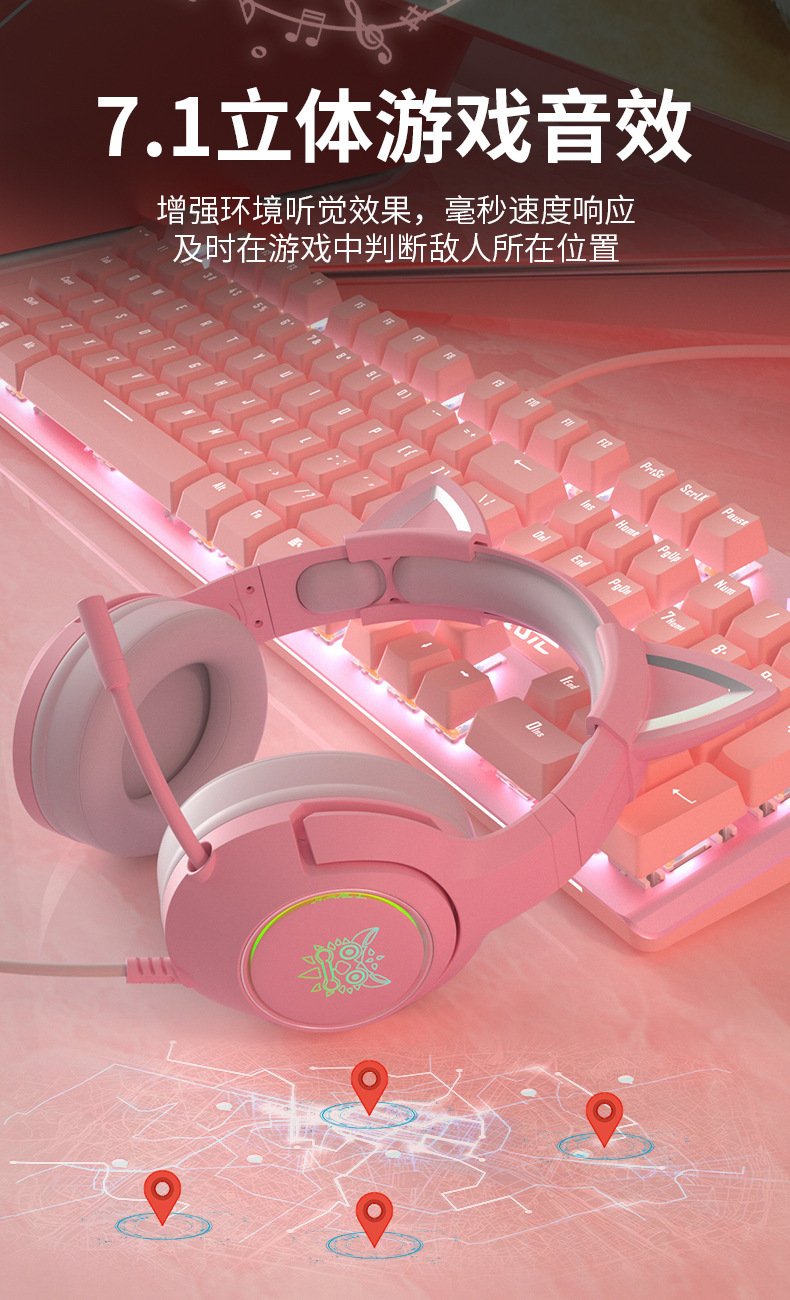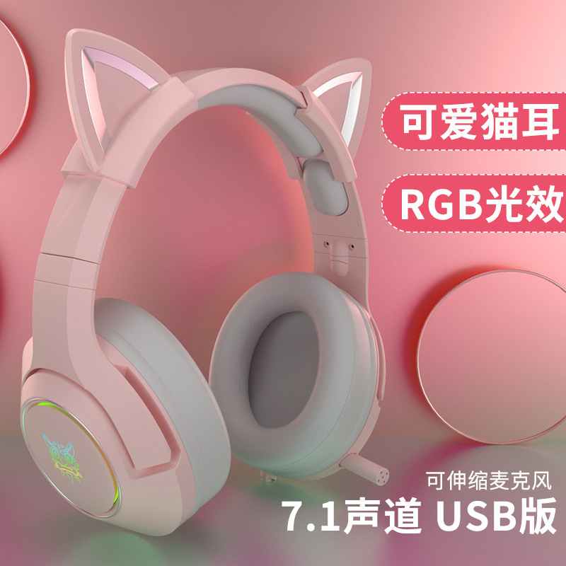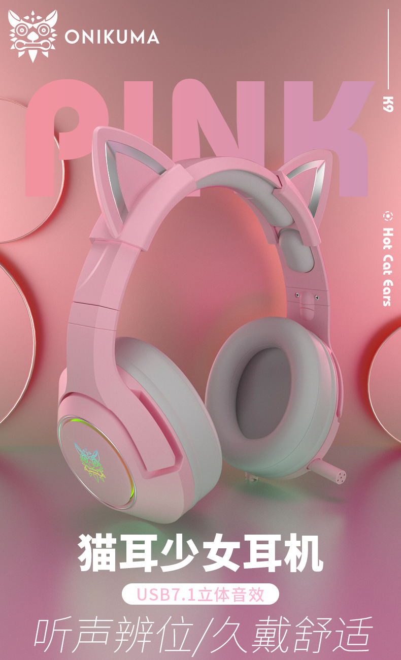 爆款ONIKUMA K9猫耳头戴式有线电脑手机电竞降噪游戏耳机7.1声道