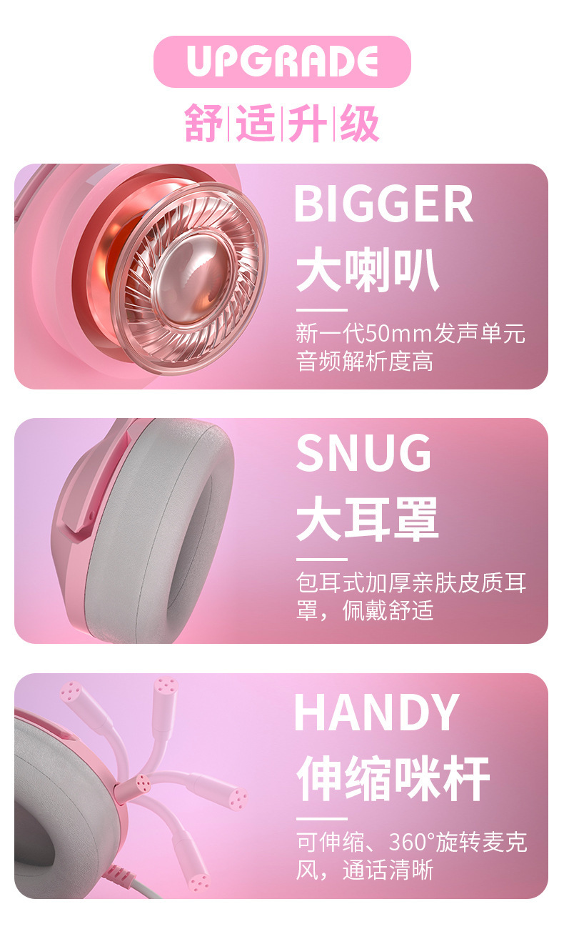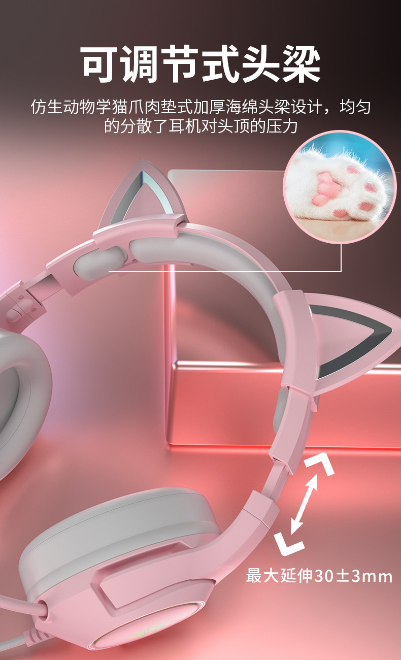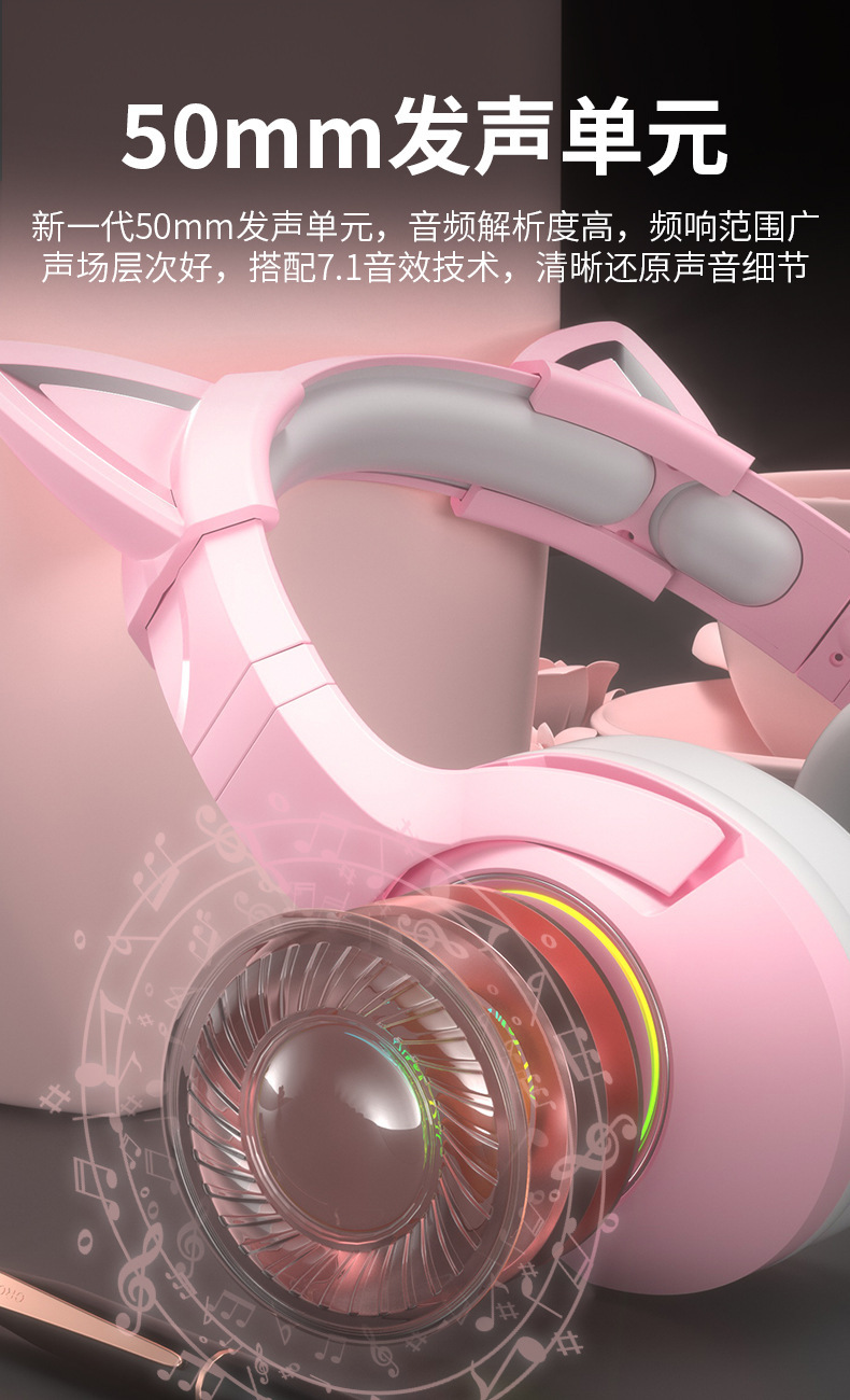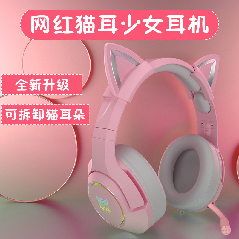 爆款ONIKUMA K9猫耳头戴式有线电脑手机电竞降噪游戏耳机7.1声道