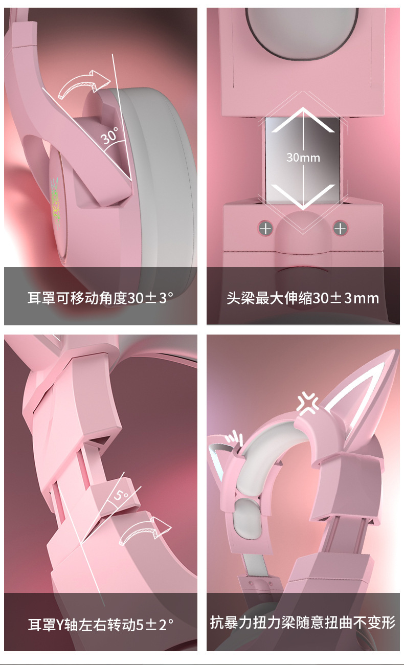 颜色 粉色猫耳朵(3.5mm双插版),粉色猫耳朵(7.1声道-USB插头版),黑色猫耳朵(3.5mm单插版),黑色鹿角(3.5mm单插版),蓝色猫耳朵(3.5mm单插版)