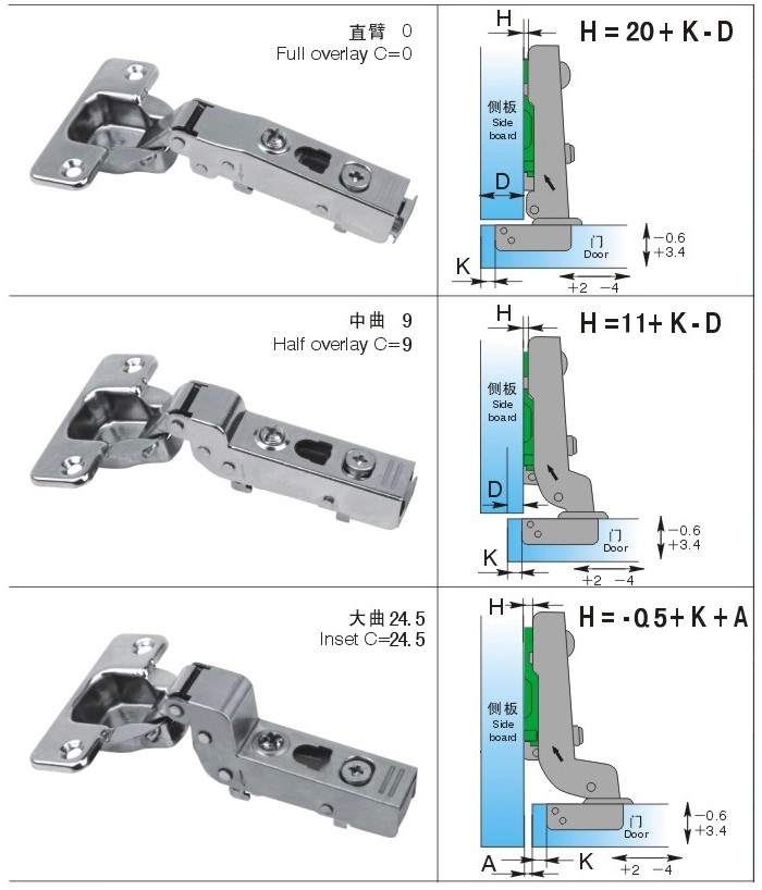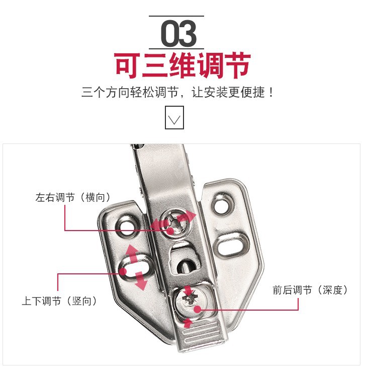 描述: 40杯是指柜门圆孔开孔直径40mm,厚门铰链支持门板厚度20-30mm,侧板厚度有18板的和25mm厚的,需要留言客服,门板厚度和侧板厚度!以免给您造成麻烦!35杯是指柜门上圆孔开孔直径35mm,35杯只能适用柜体板16-20mm厚的,门板厚度支撑16-30mm!带阻尼缓冲款!