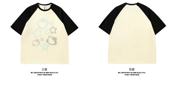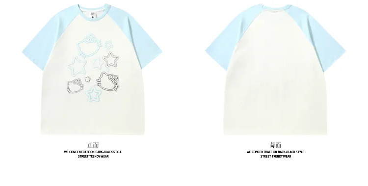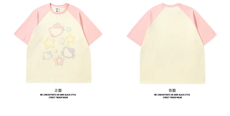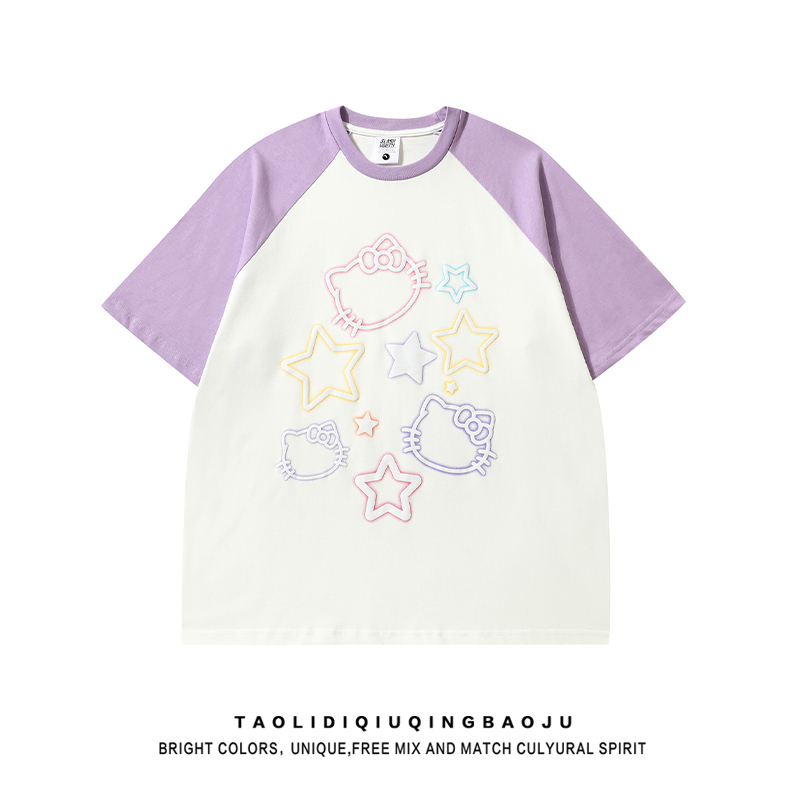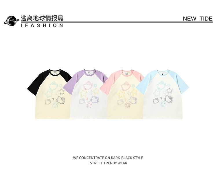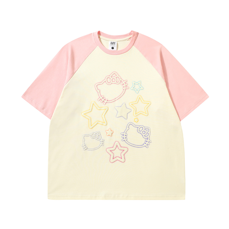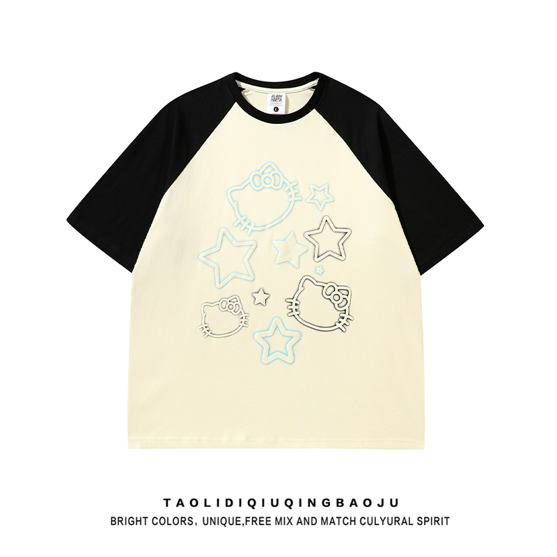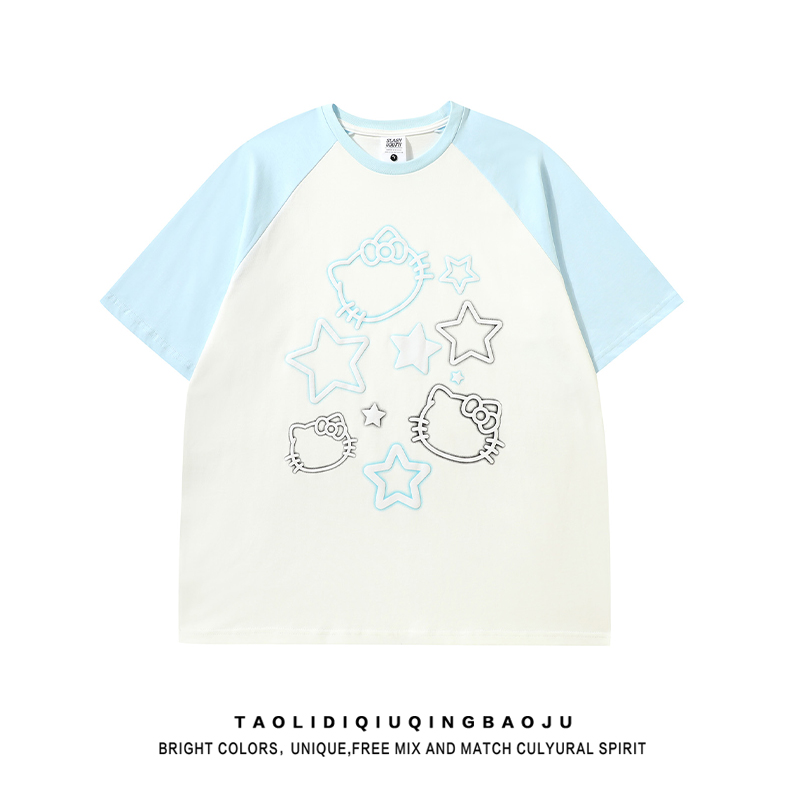 奶fufu甜美風可愛發泡短袖T恤女夏季寬鬆休閒學生情侶插肩袖上衣