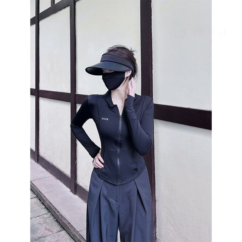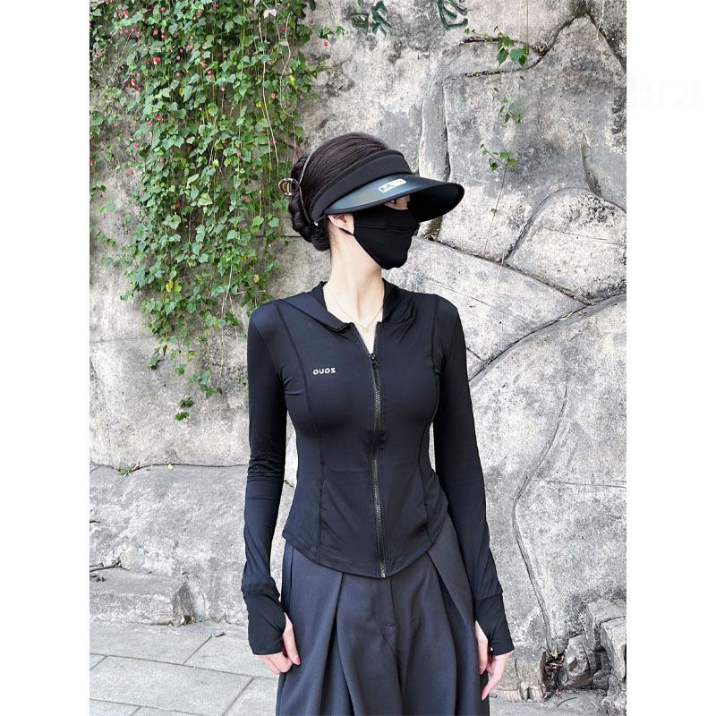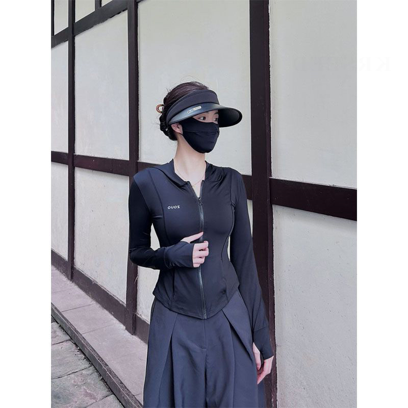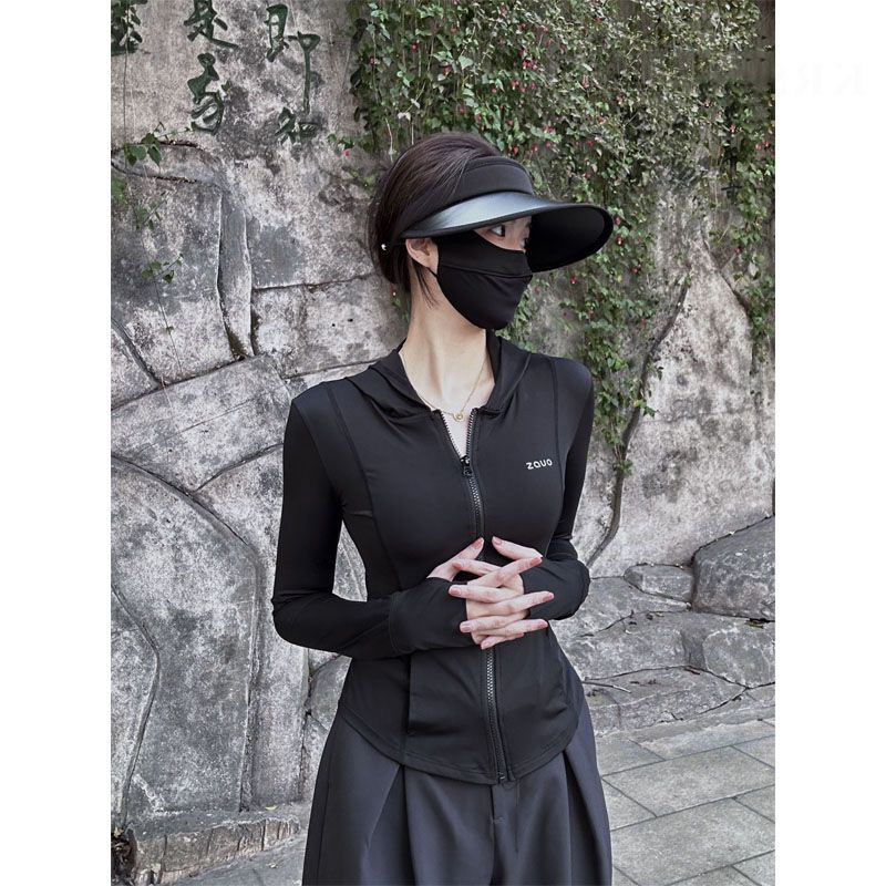 冰絲防曬衣女士夏季薄款緊身抗UV短款連帽防曬瑜伽服外套上衣
