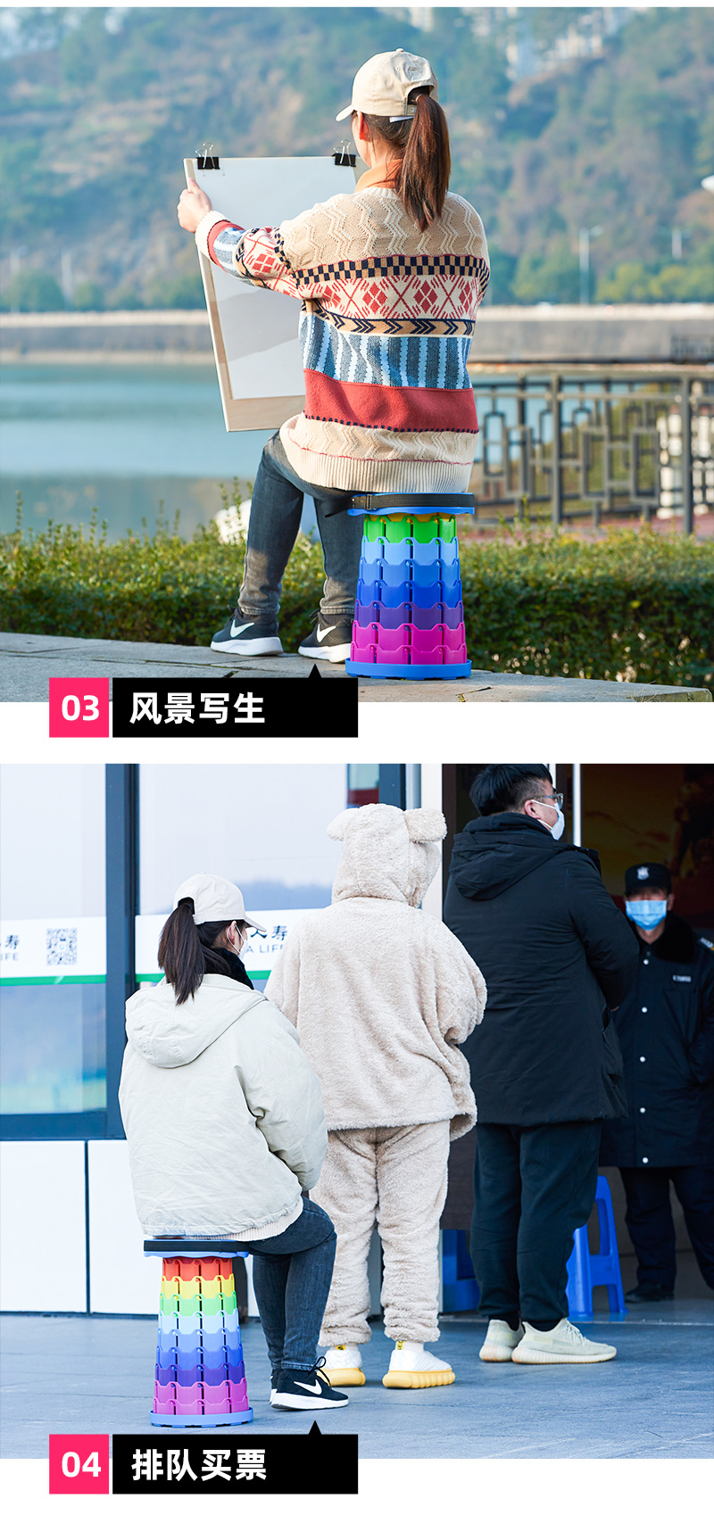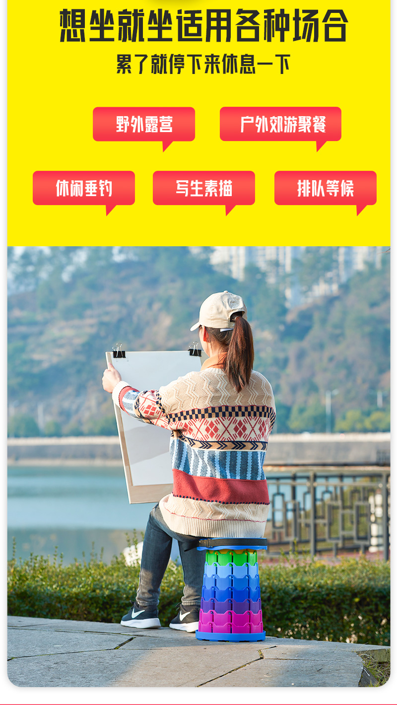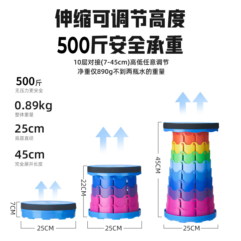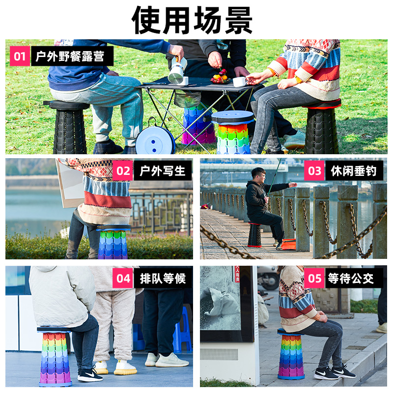 摺疊凳可攜式伸縮凳可調節收縮小板凳超輕排隊釣魚凳子戶外露營椅子