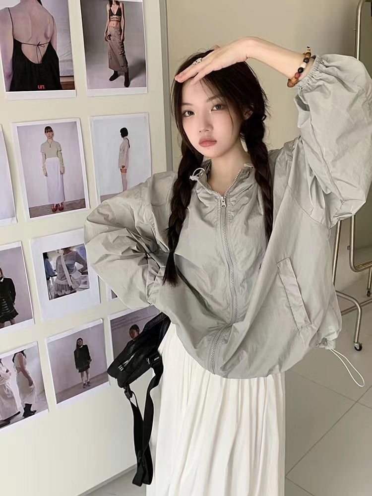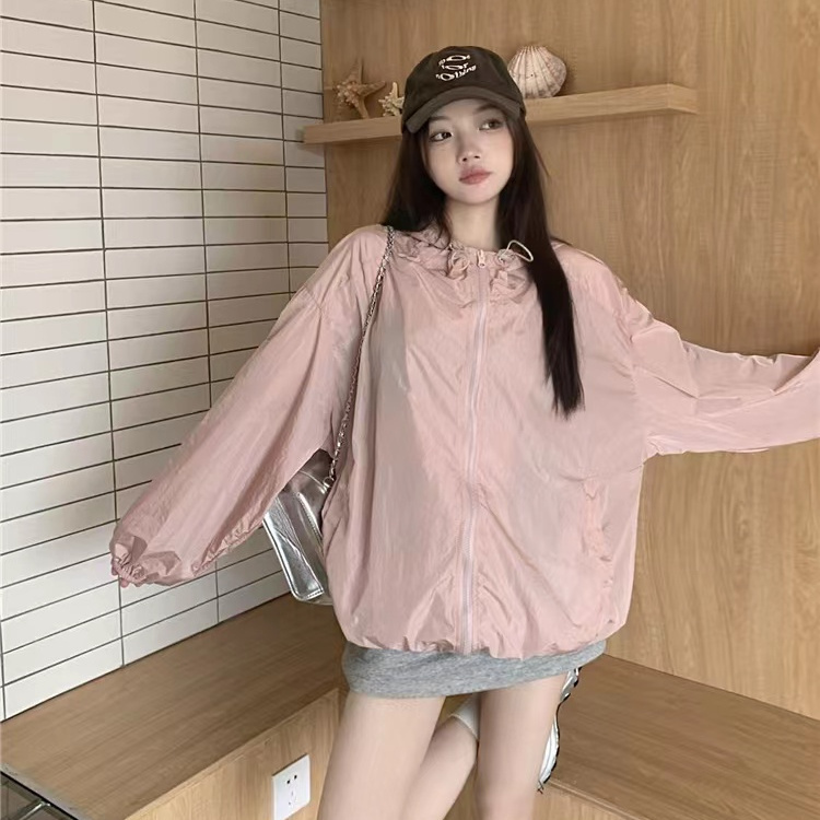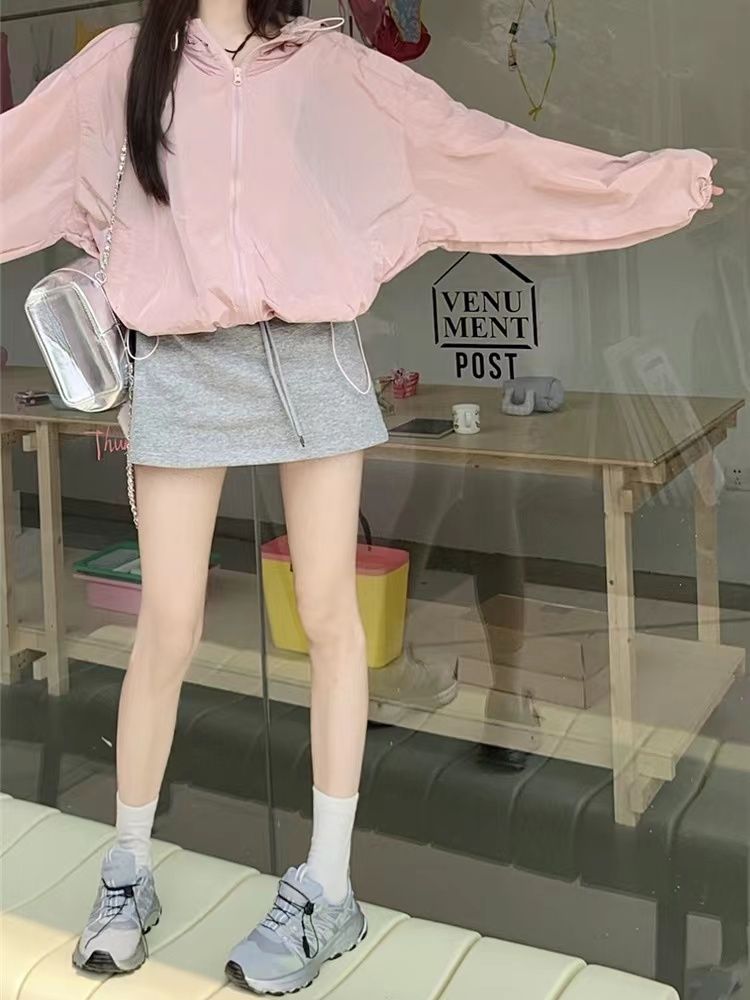 網紅薄款防曬衣女款夏2023夏季新款休閒百搭連帽短外套衝鋒衣女夏