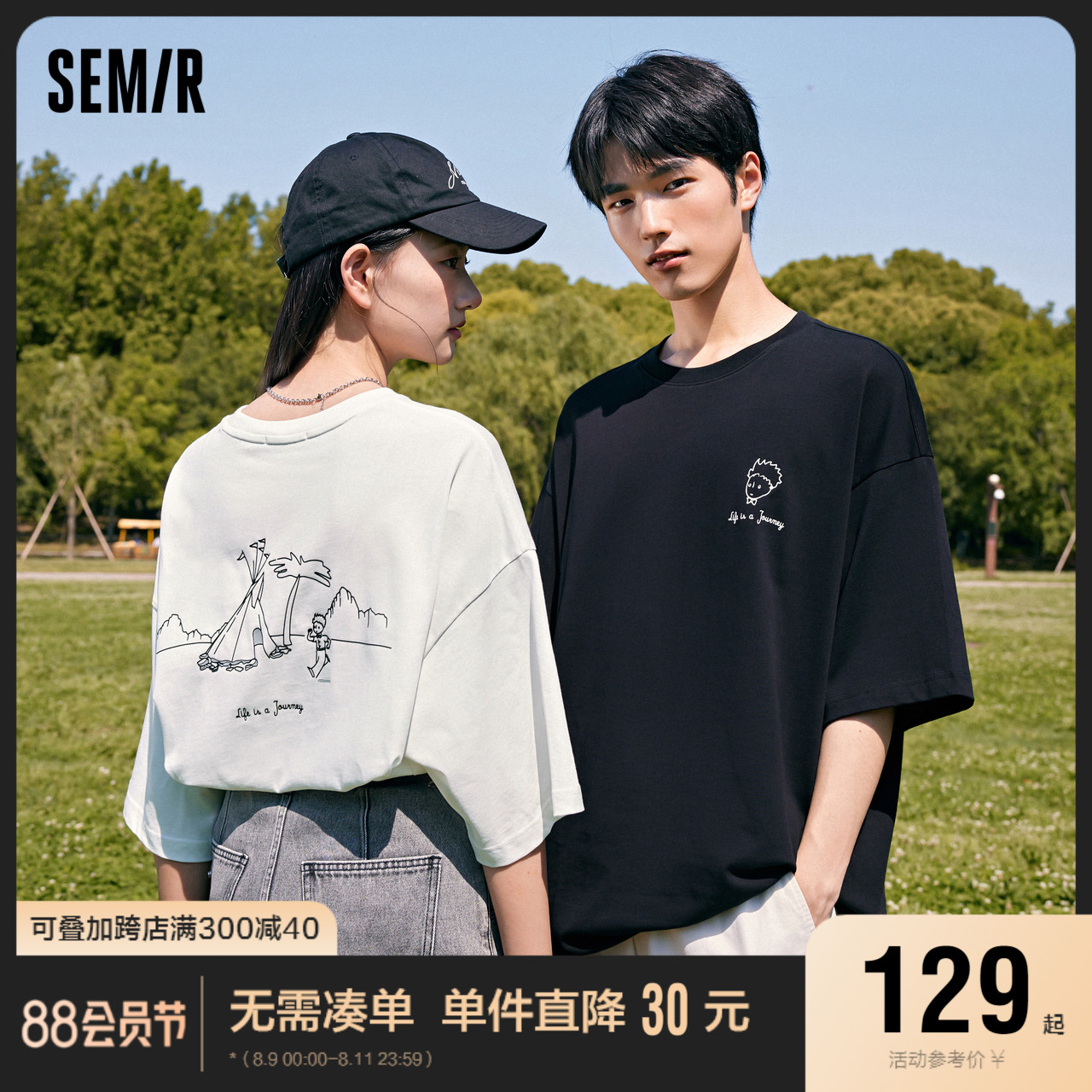 [商場同款]森馬小王子系列短袖T恤男23秋季新款oversize情侶上衣