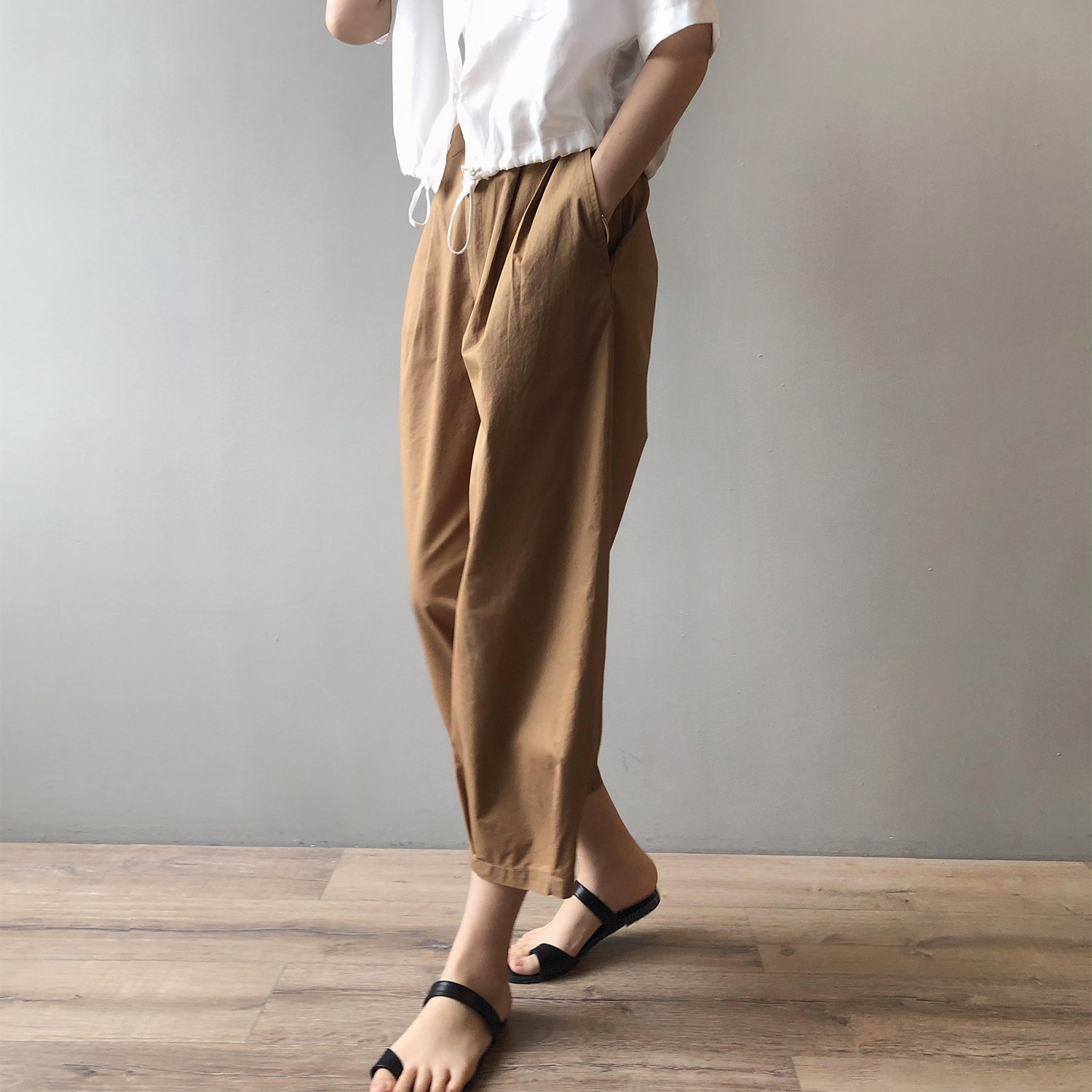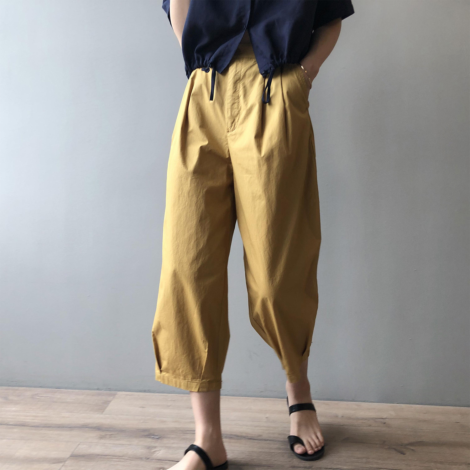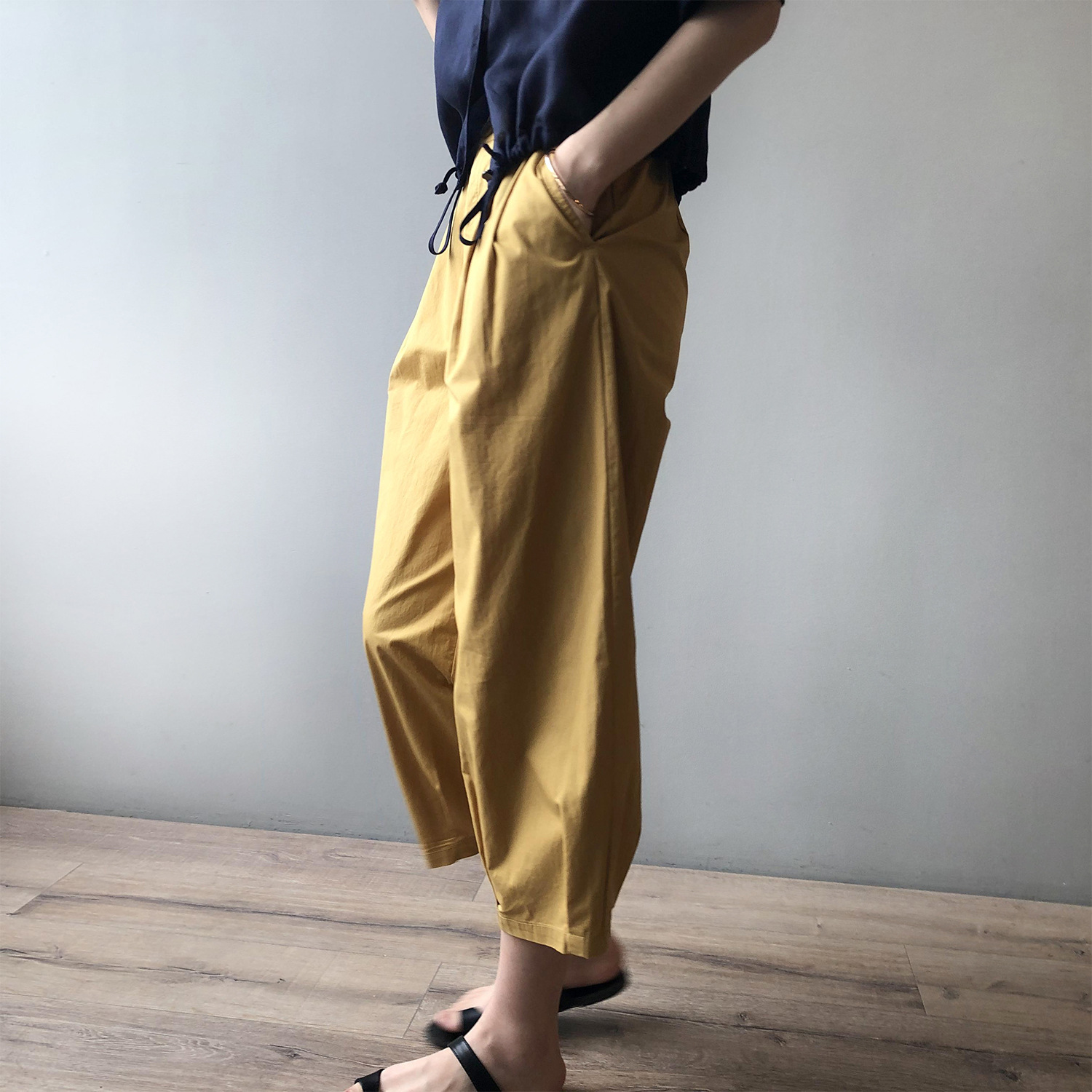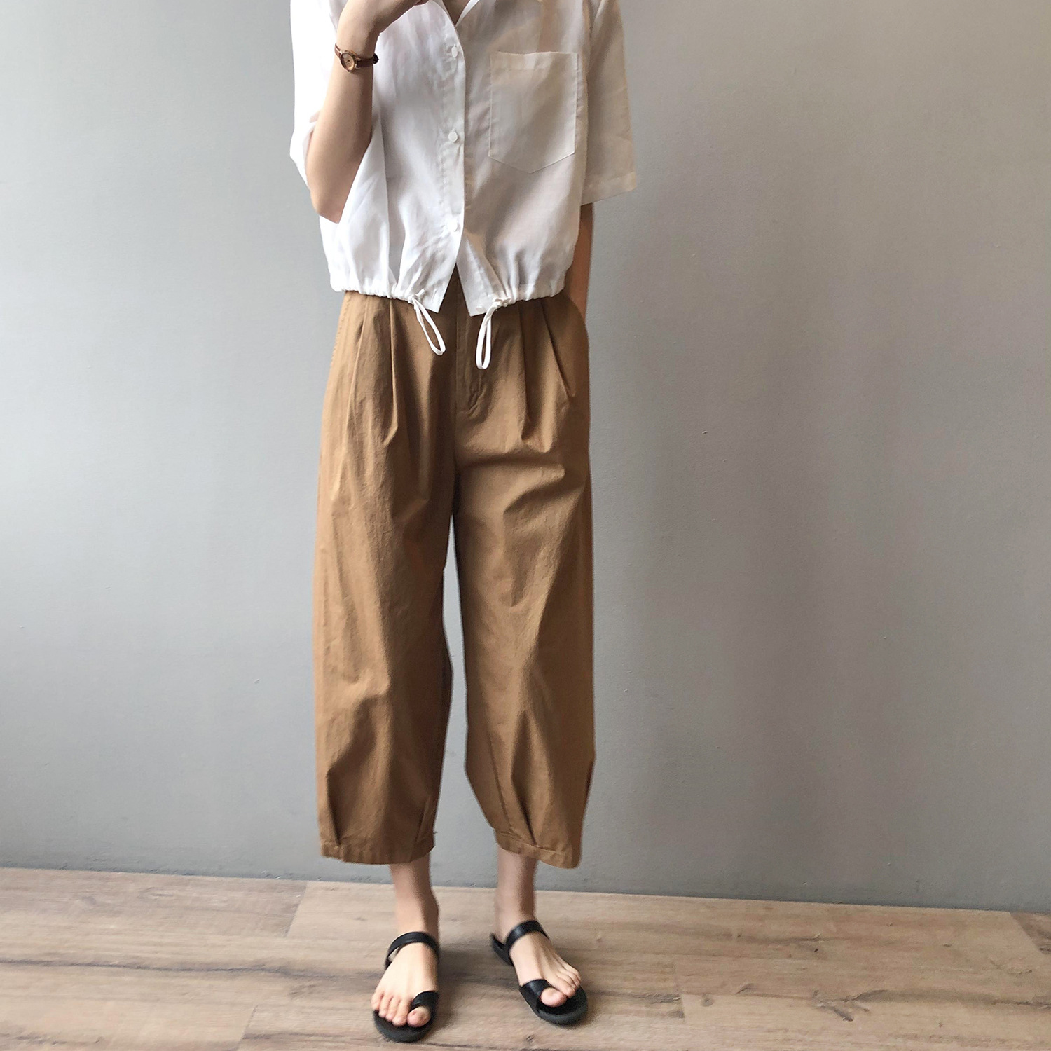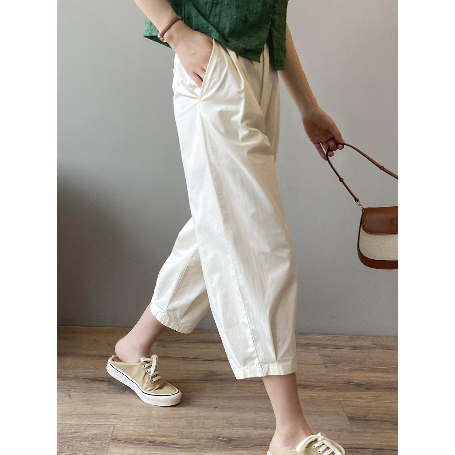 言双九分休闲裤韩版高腰松紧香蕉裤女2023夏季薄款显瘦哈伦裤9590