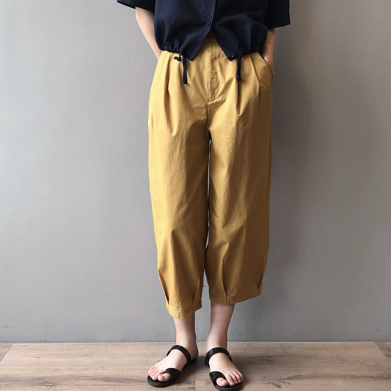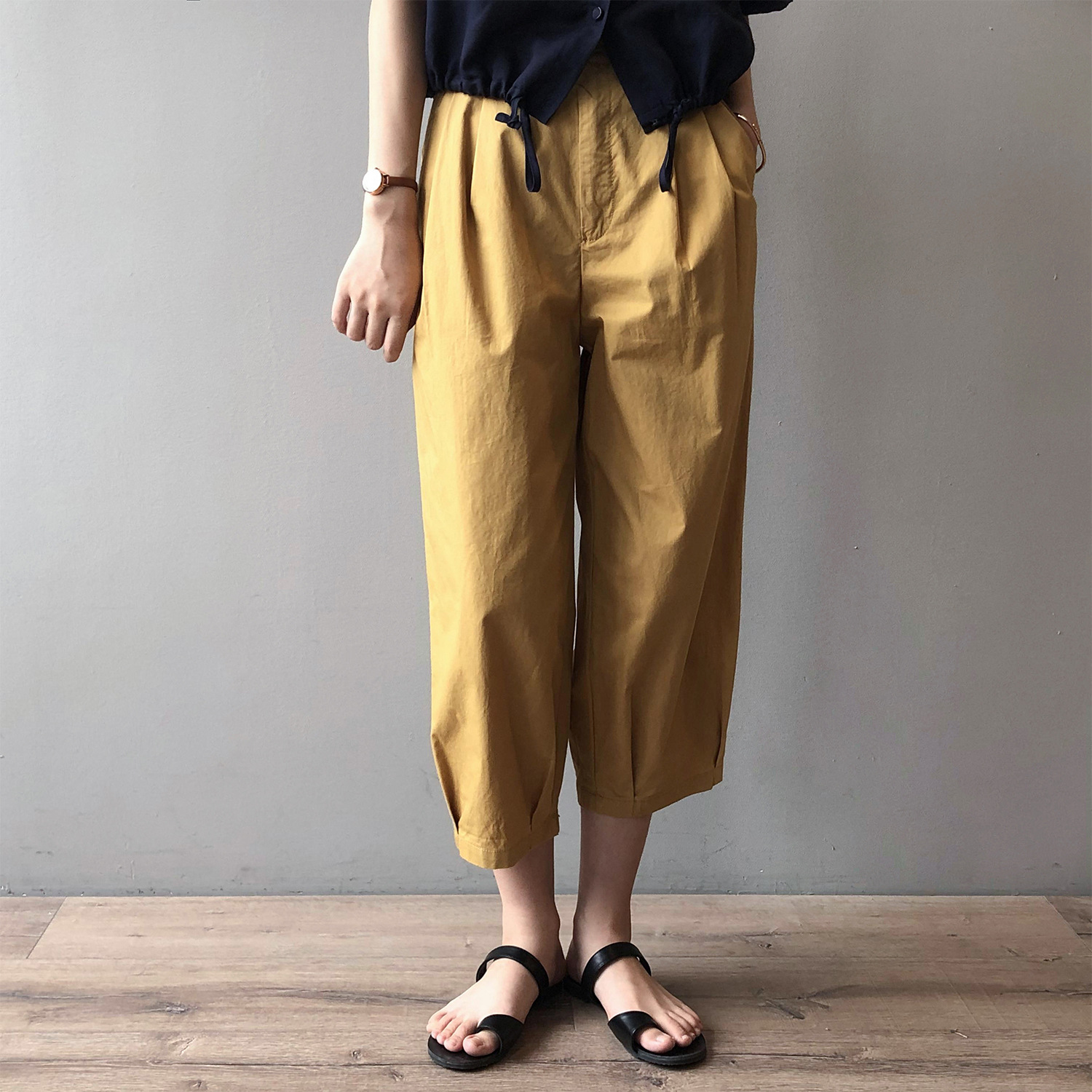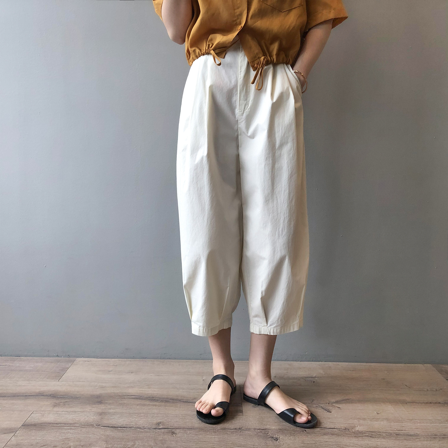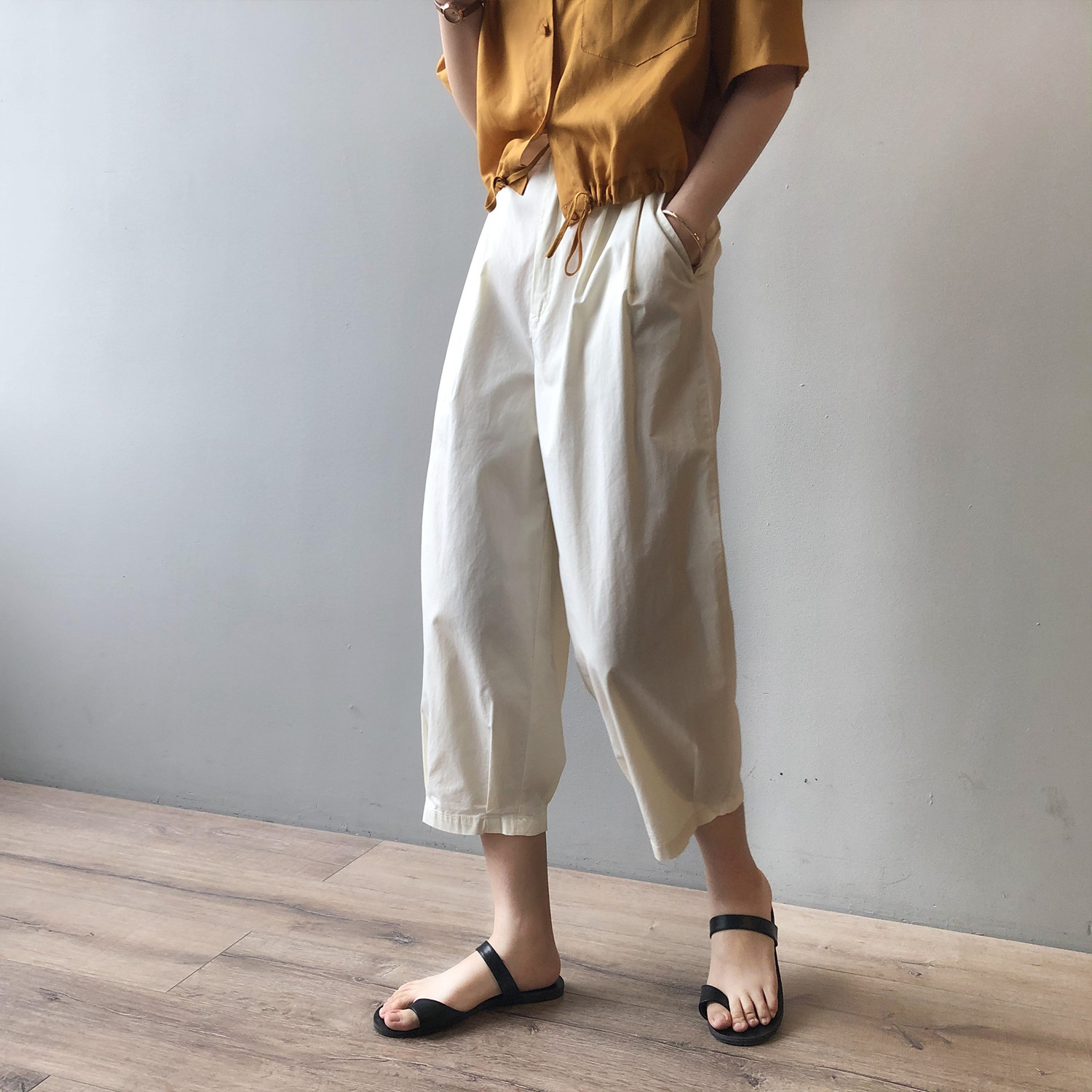 言双九分休闲裤韩版高腰松紧香蕉裤女2023夏季薄款显瘦哈伦裤9590