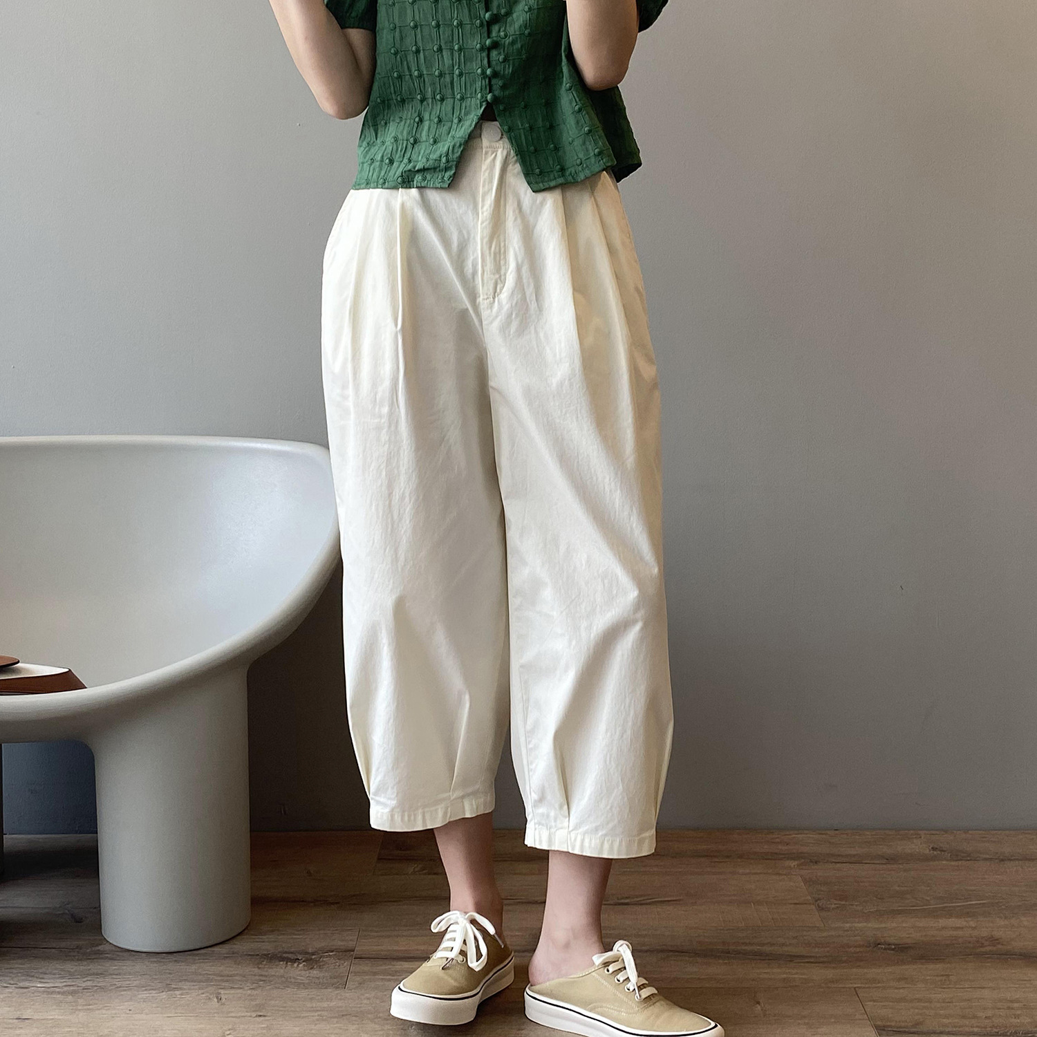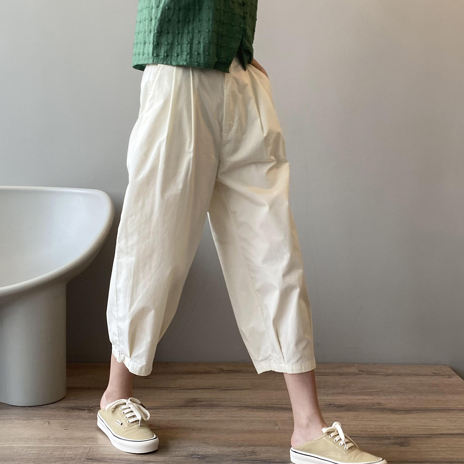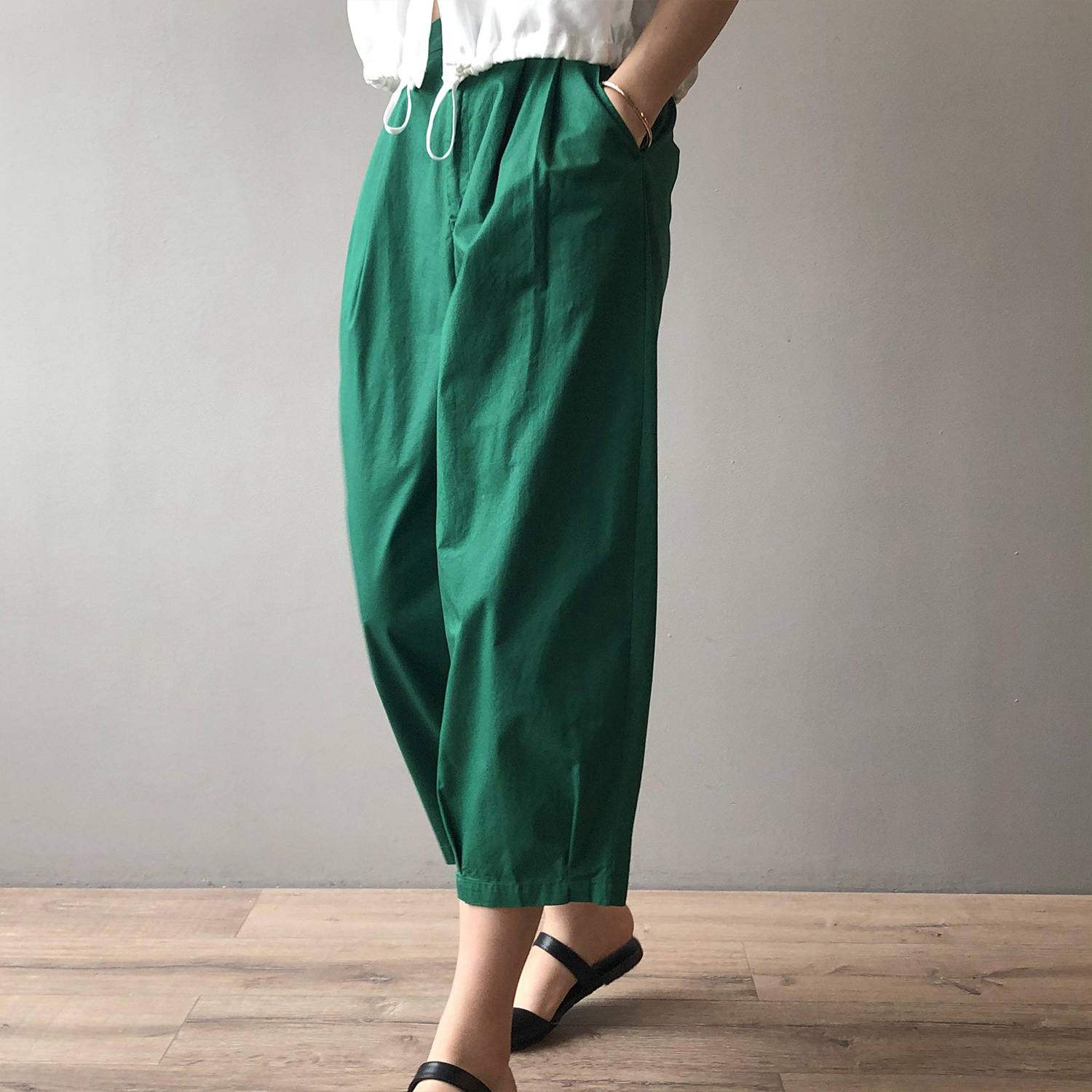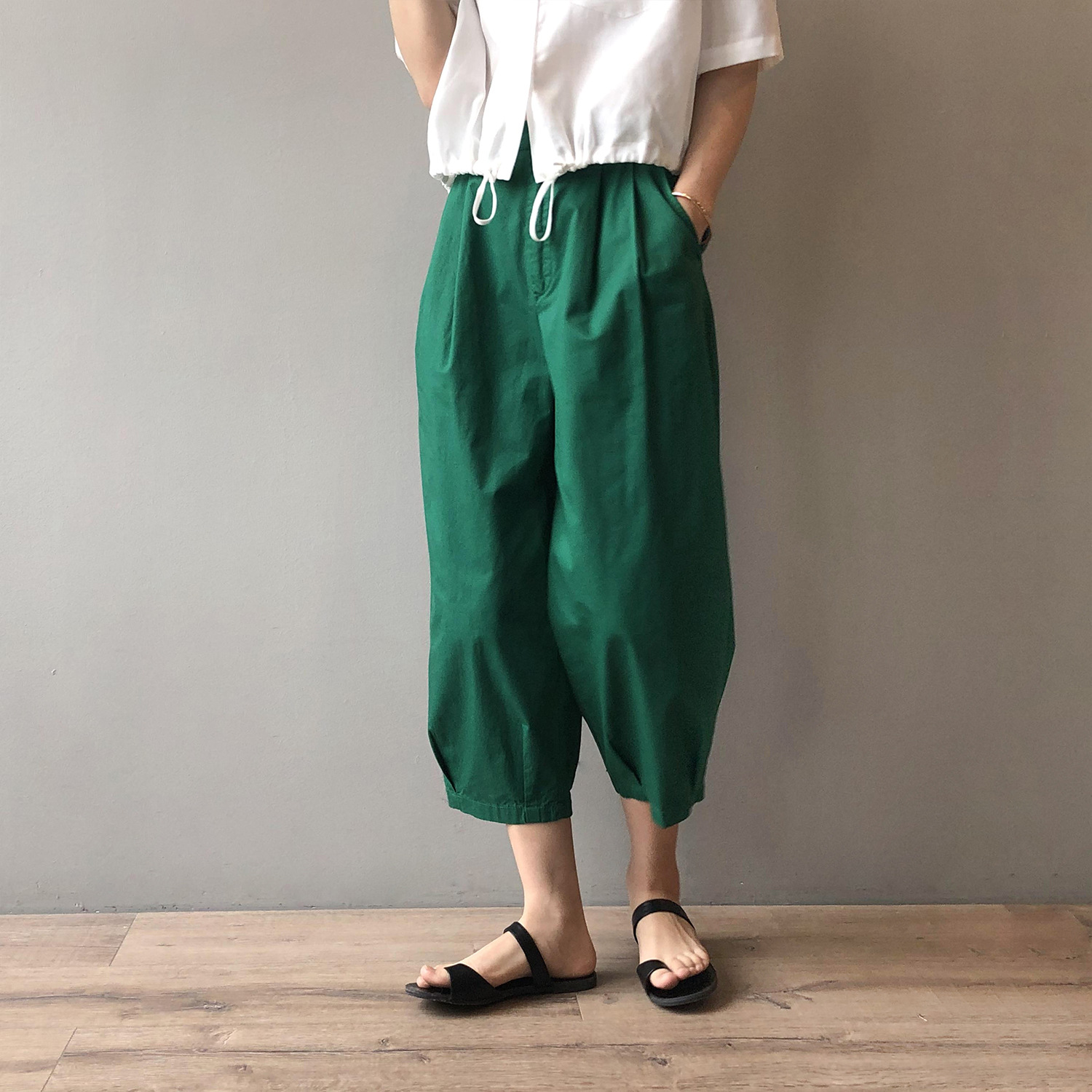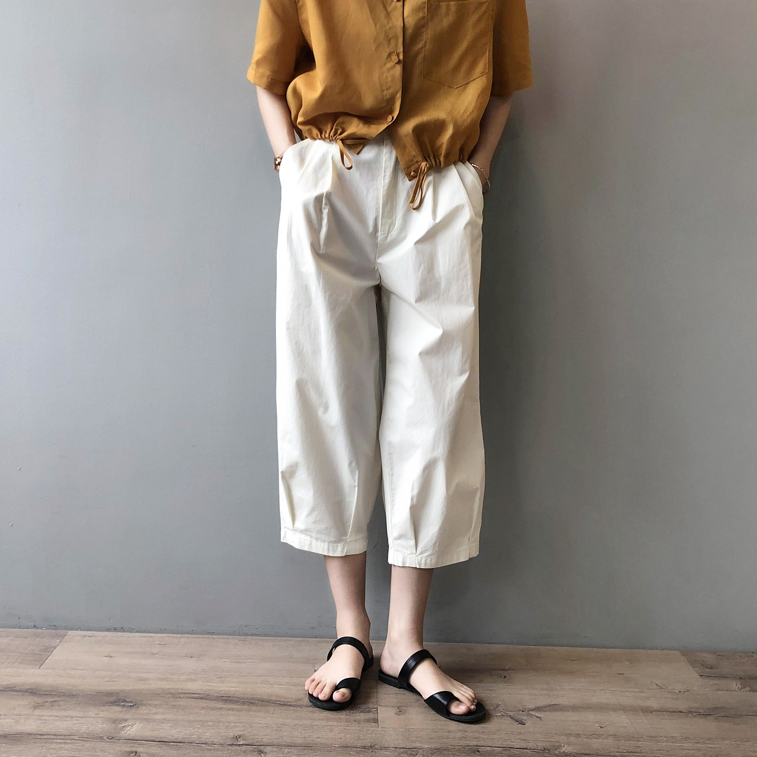 言双九分休闲裤韩版高腰松紧香蕉裤女2023夏季薄款显瘦哈伦裤9590
