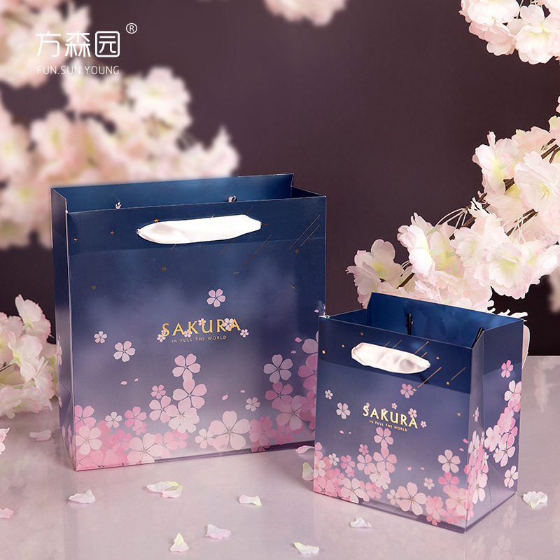 方森园浪漫樱花礼袋半透明PVC礼袋创意伴手礼化妆品礼品袋手提袋