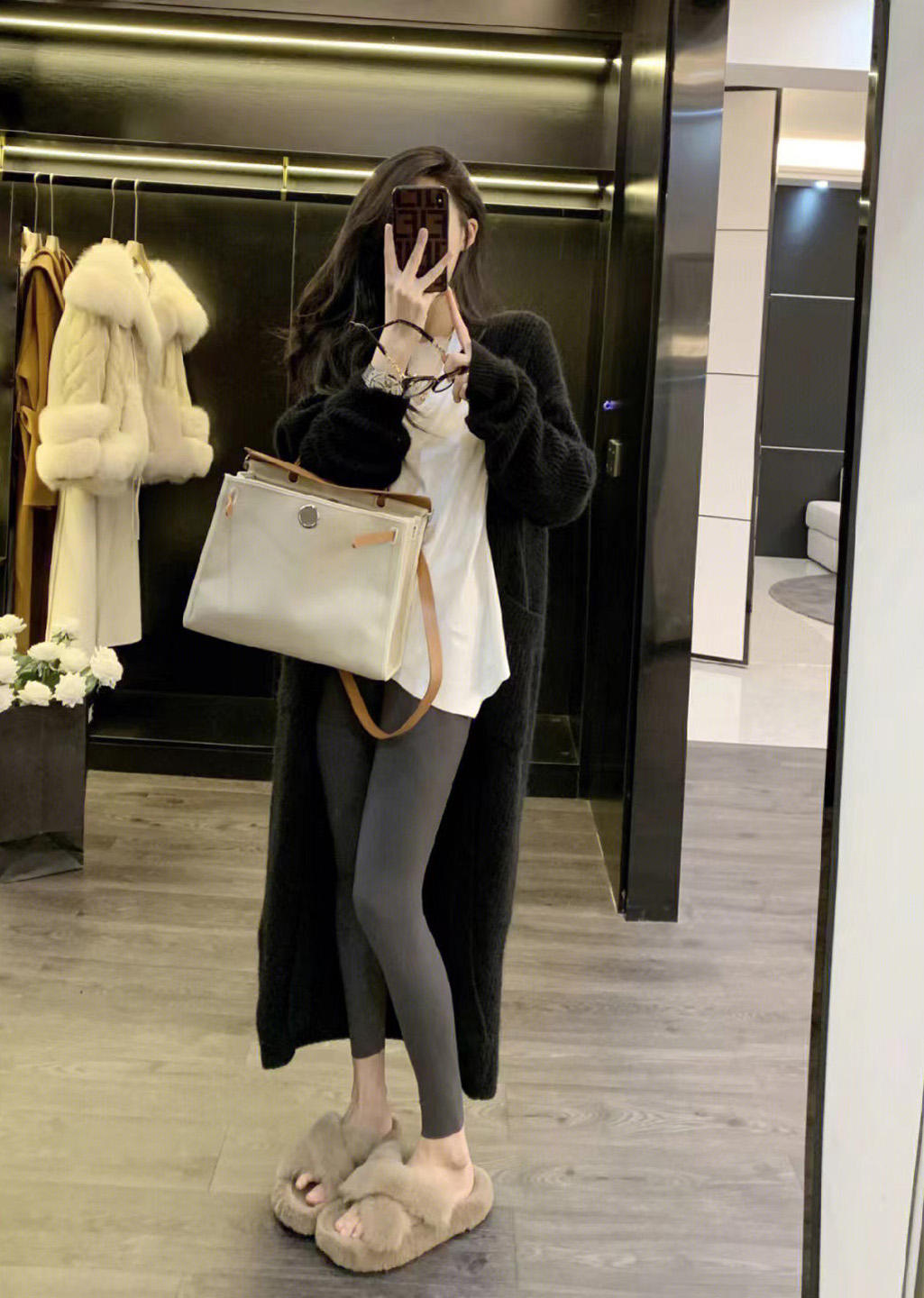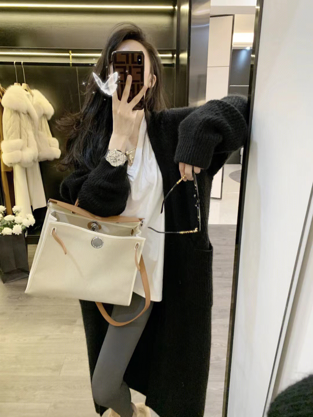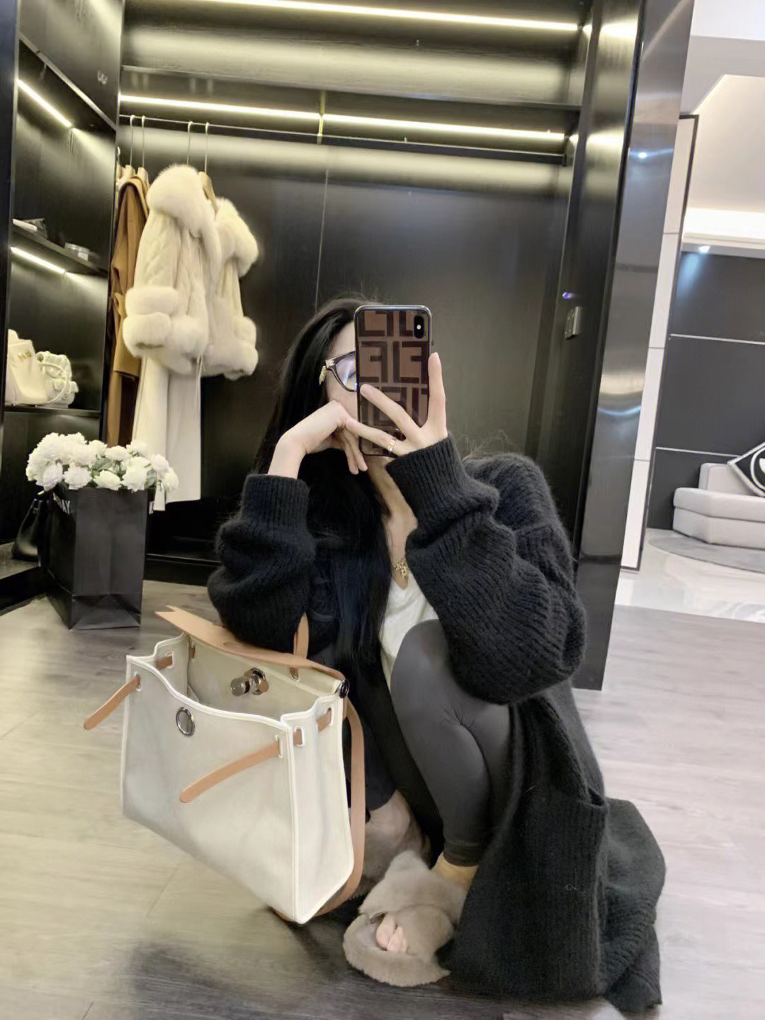 Leathercat毛衣外套女早秋新款韓系慵懶風寬鬆中長版針織開衫上衣