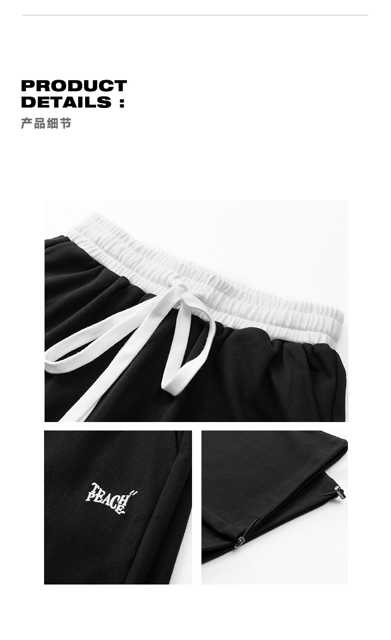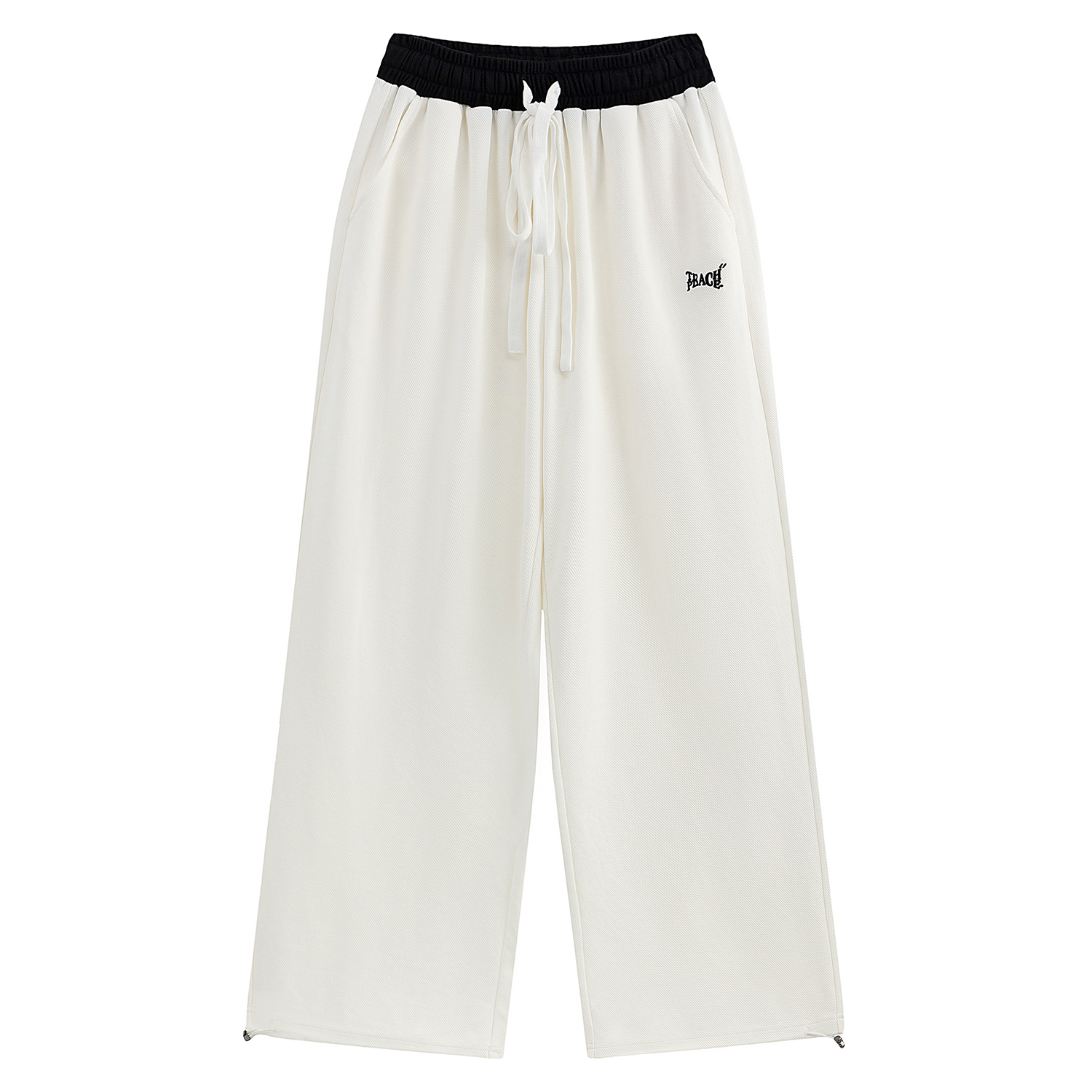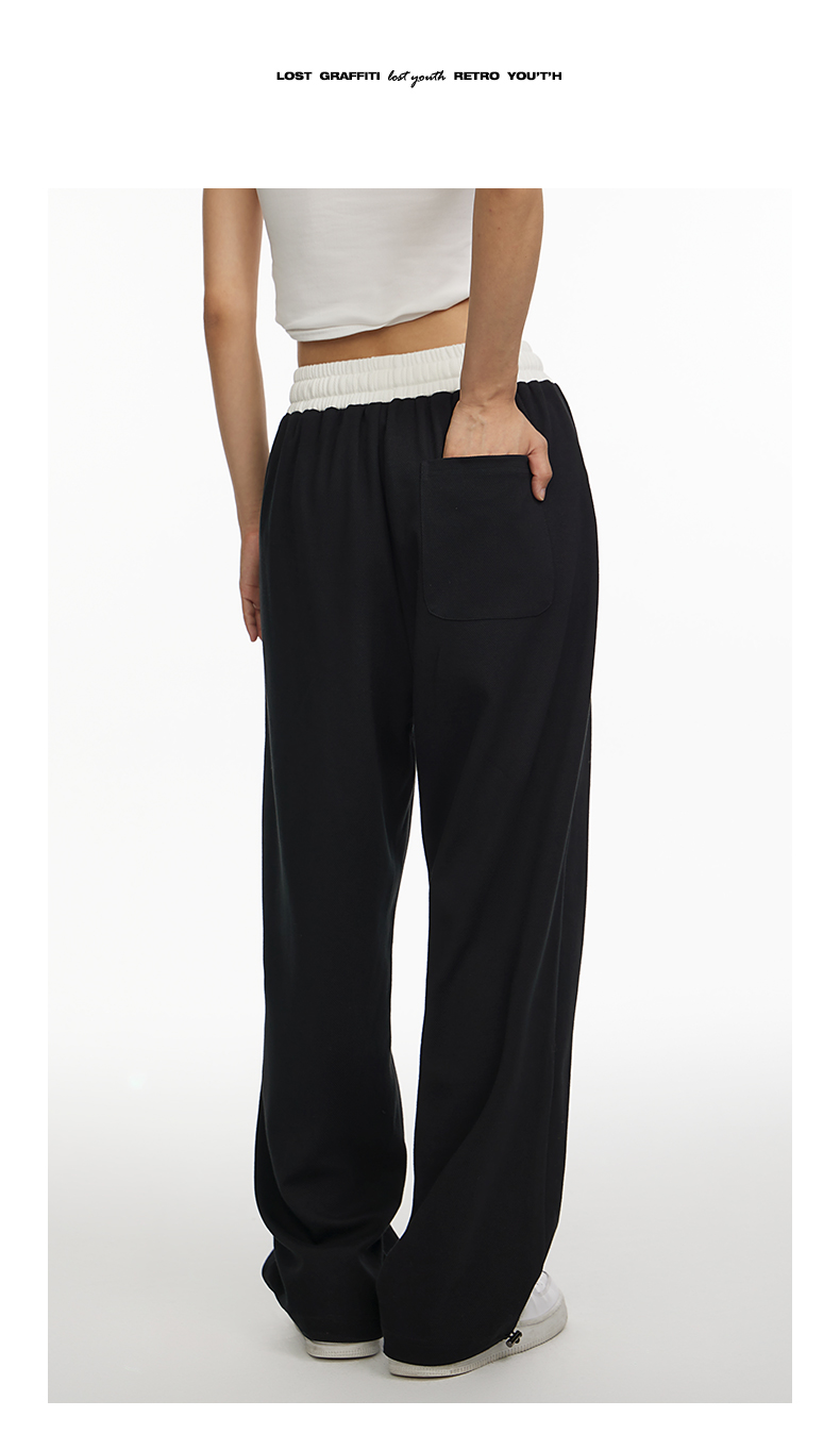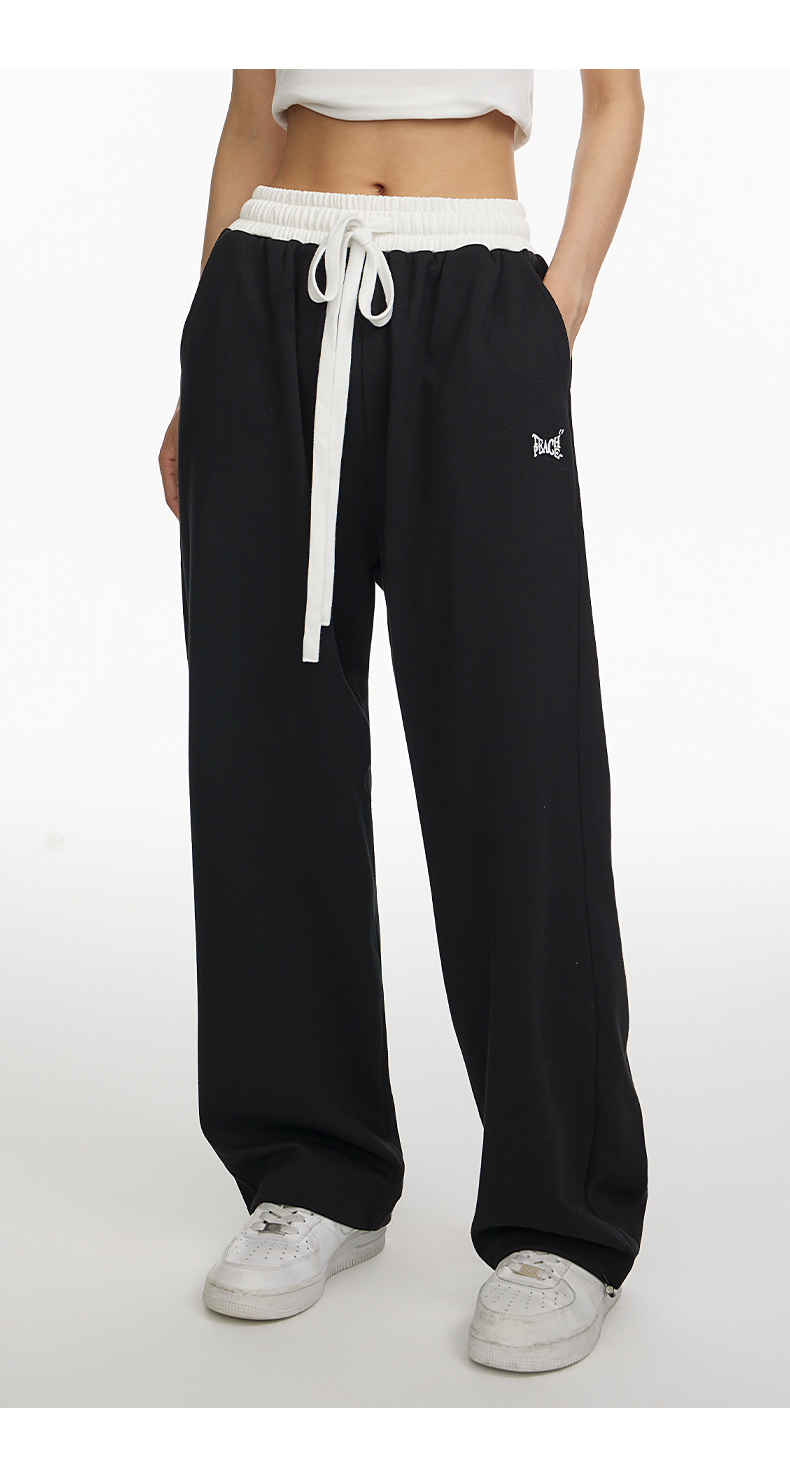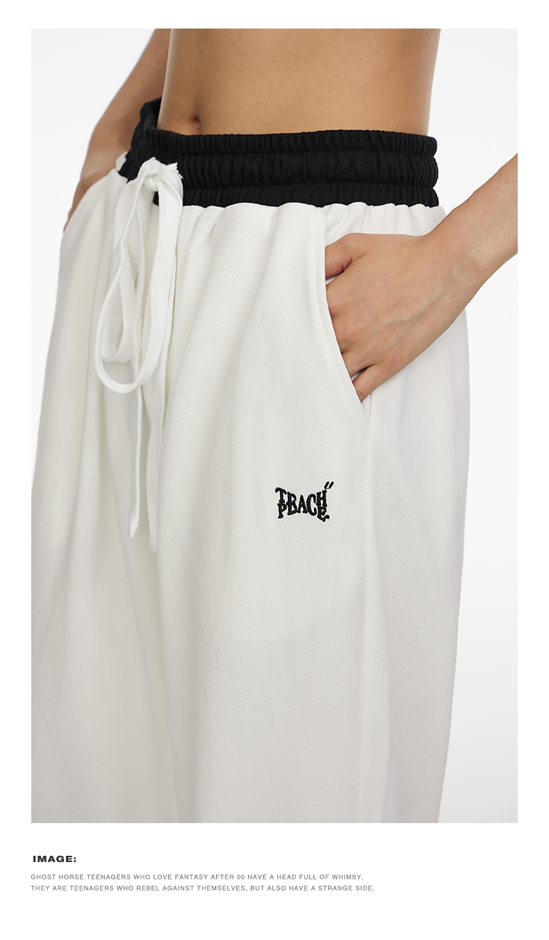 TEACH PEACE潮牌假兩件腰頭拼接直筒褲男寬鬆設計感運動休閒褲女