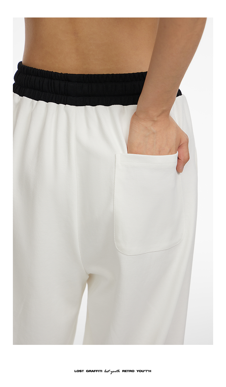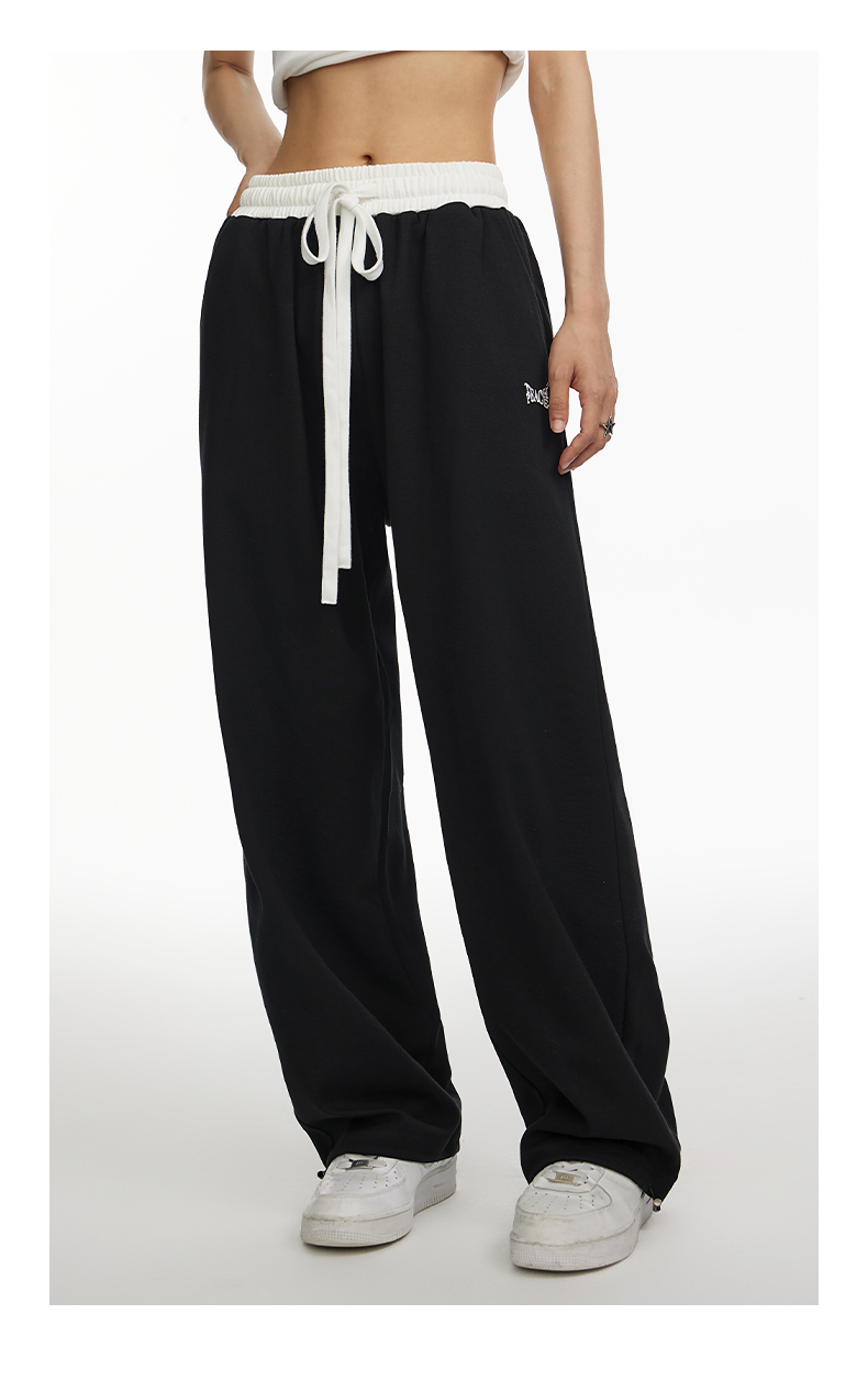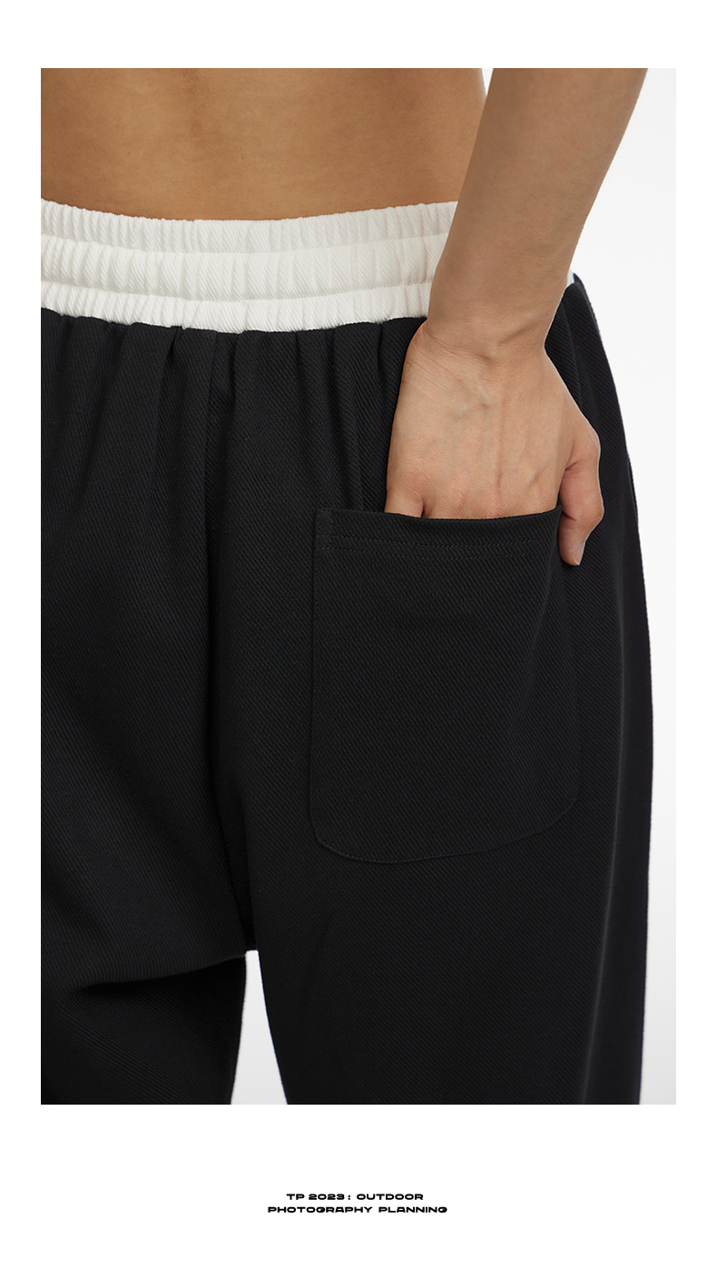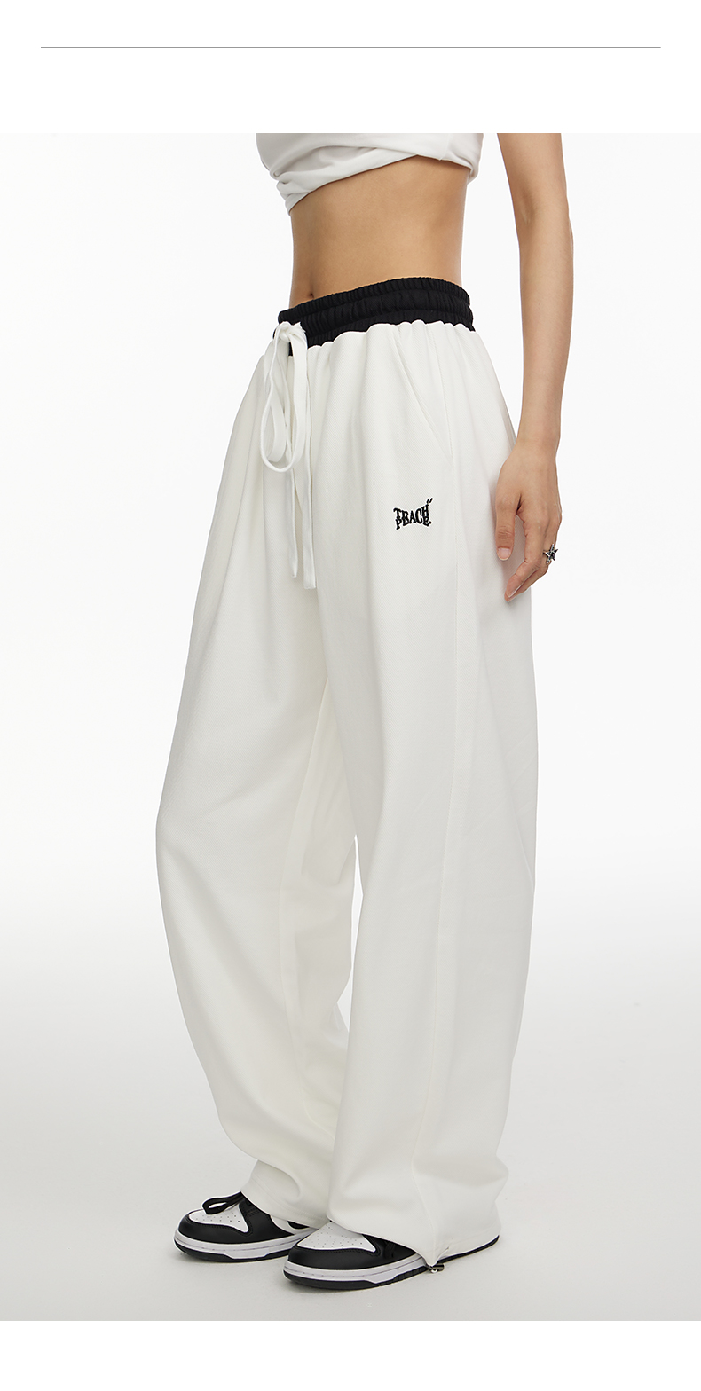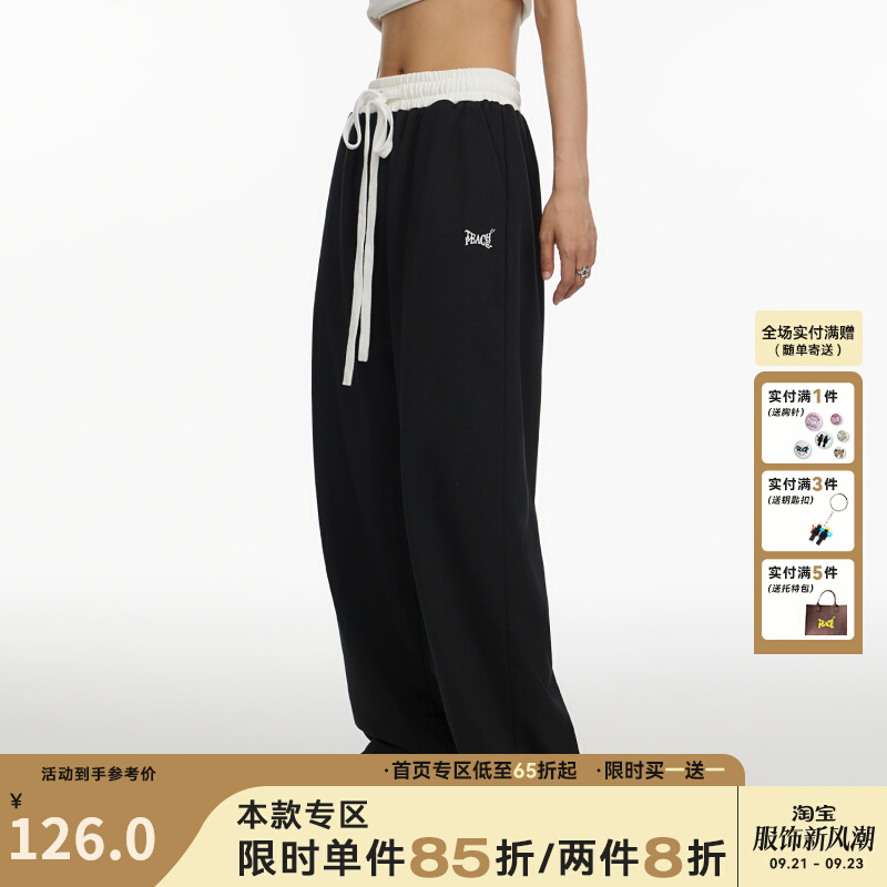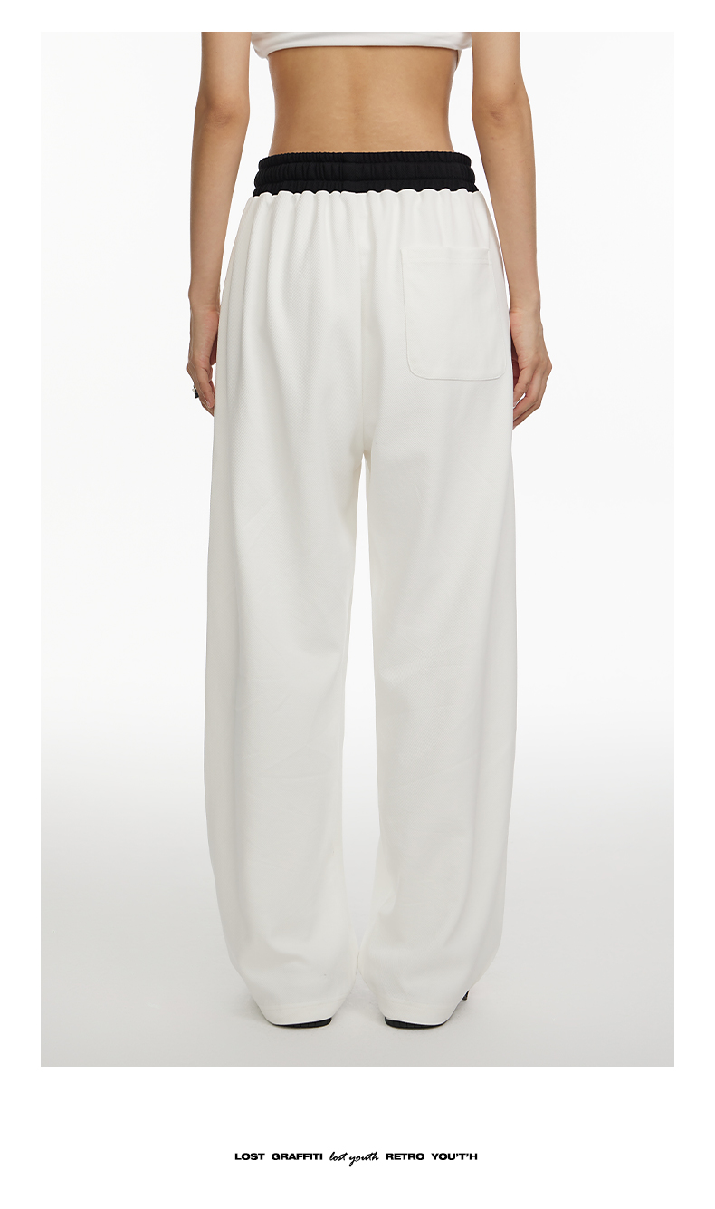 TEACH PEACE潮牌假兩件腰頭拼接直筒褲男寬鬆設計感運動休閒褲女