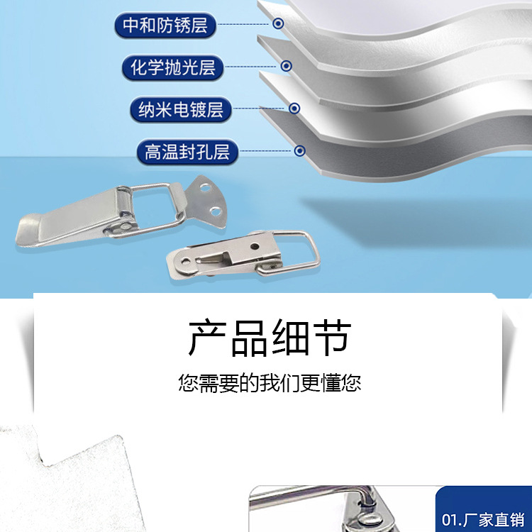 不锈钢鸭嘴弹簧搭扣工具箱锁扣木箱金属锁扣 木盒锁扣工厂101\102