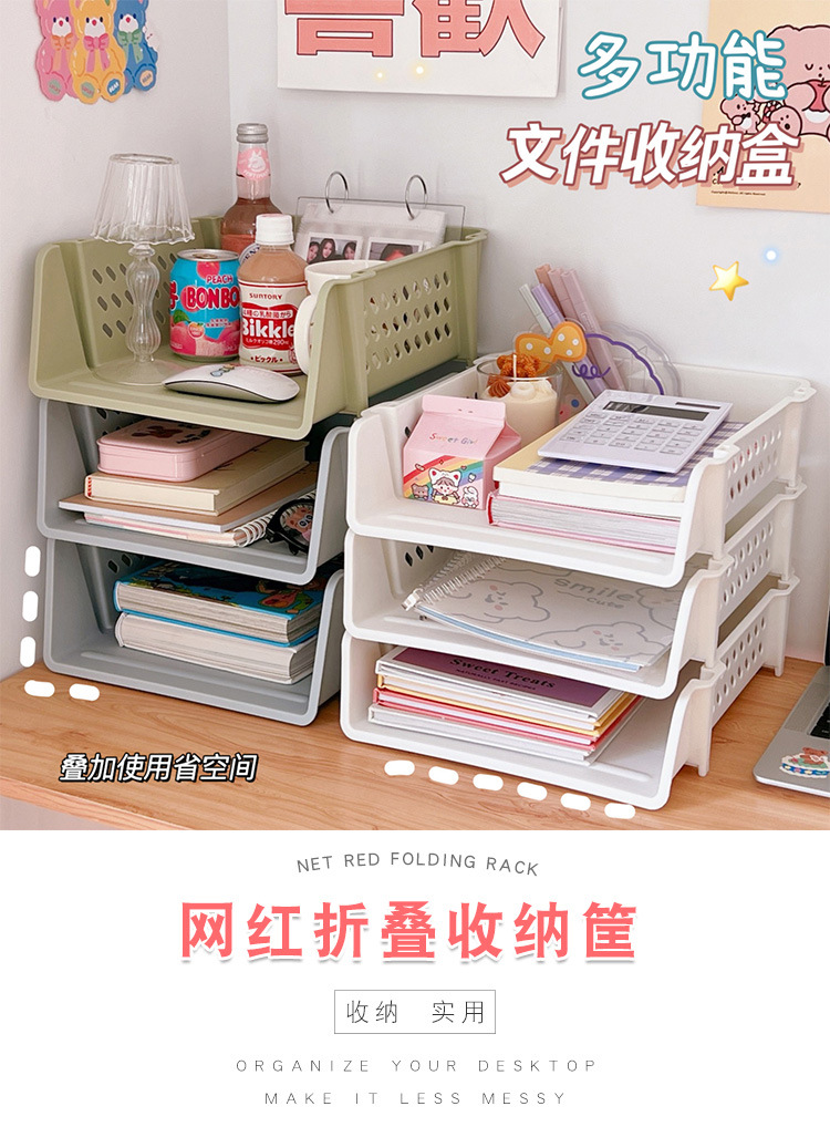折叠收纳盒化妆品面膜收纳筐大容量桌面网红可叠加宿舍好物储物盒