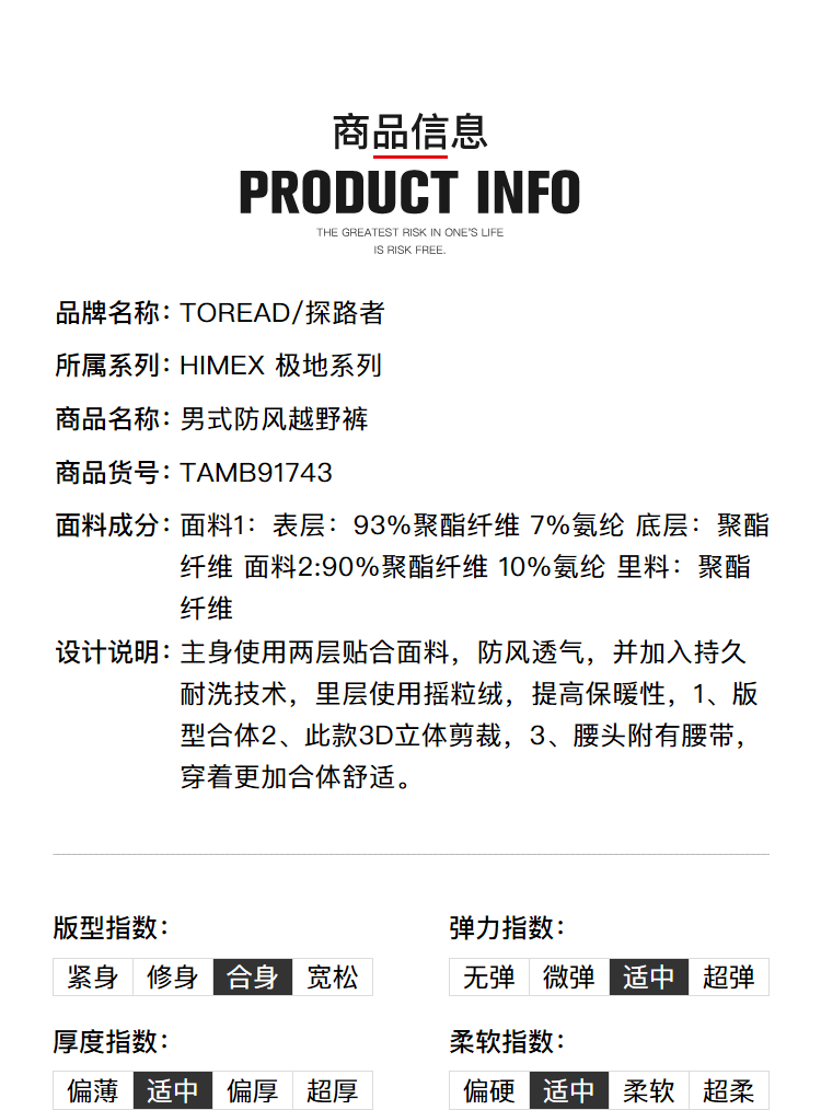 探路者褲子男士秋冬戶外男款防風透氣越野褲加絨保暖TAMB91743