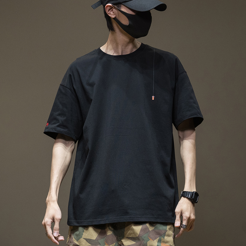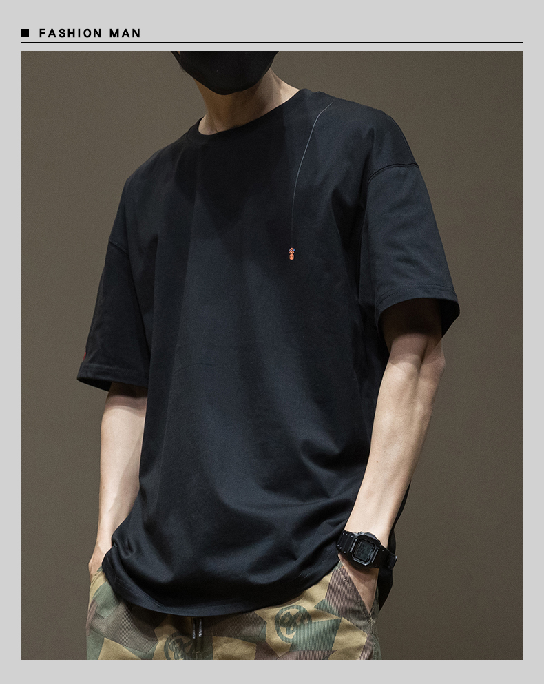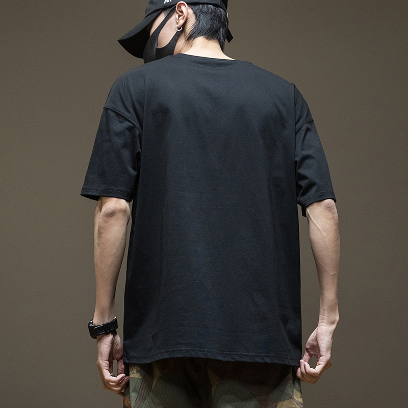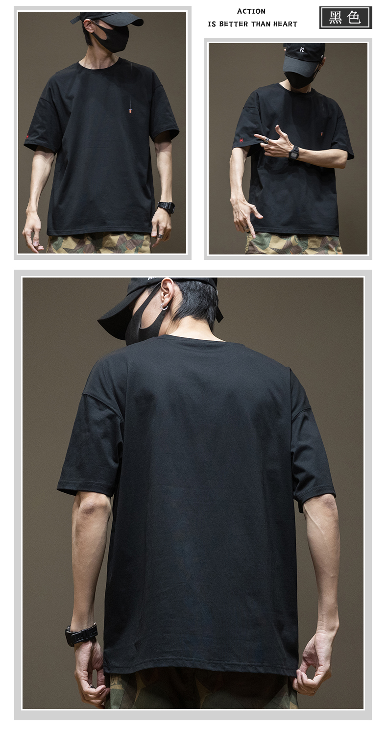 潮流夏季短袖黑T恤男休閒簡約男裝寬鬆大尺碼男士純棉男生打底T恤