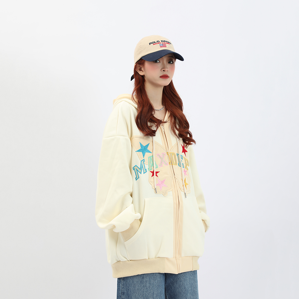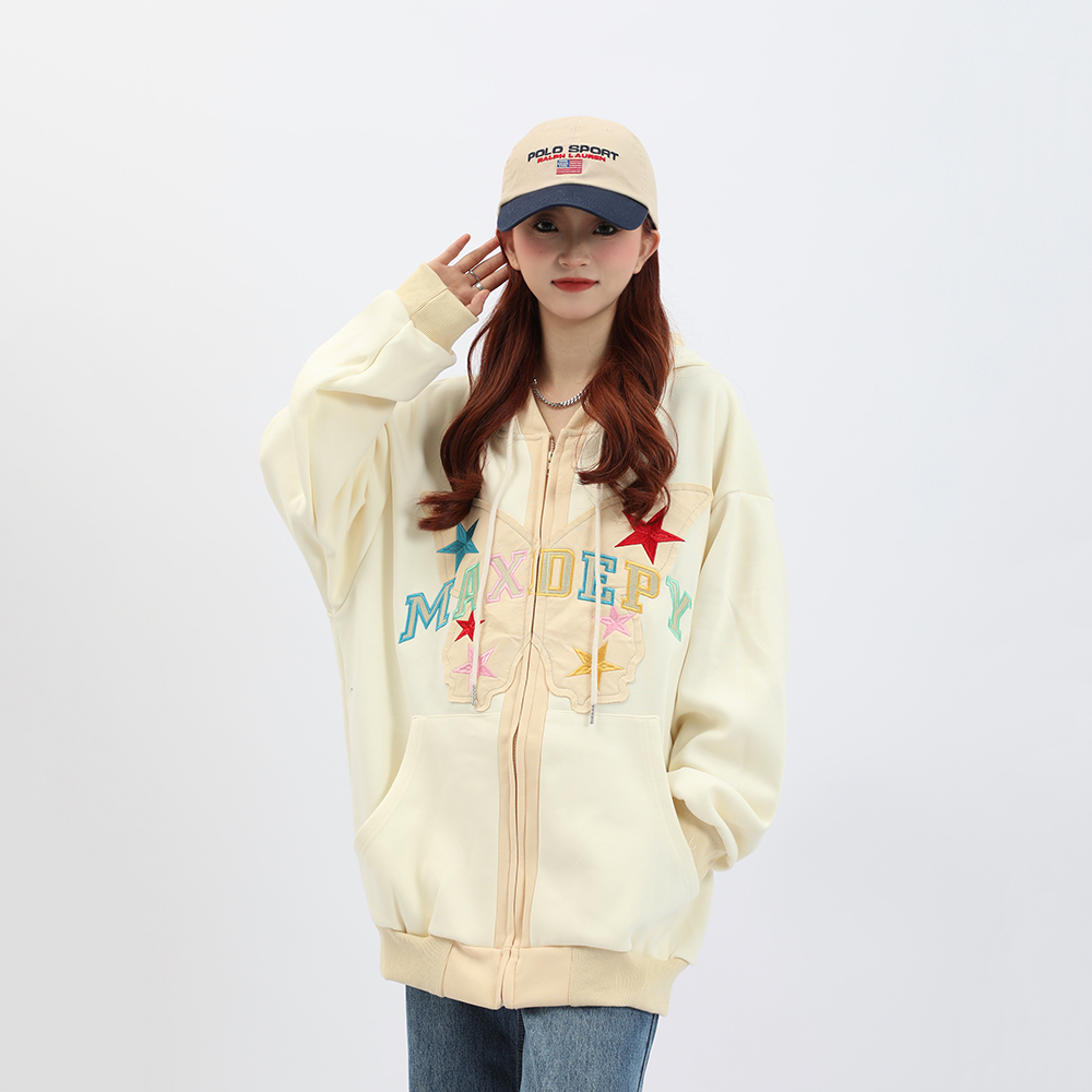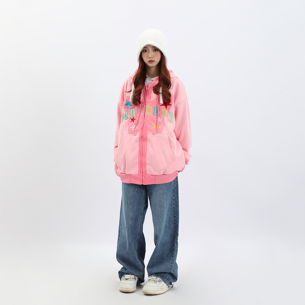 b2自制美式復古字母蝴蝶多巴胺紫連帽運動衫女春秋甜酷粉色辣妹外套