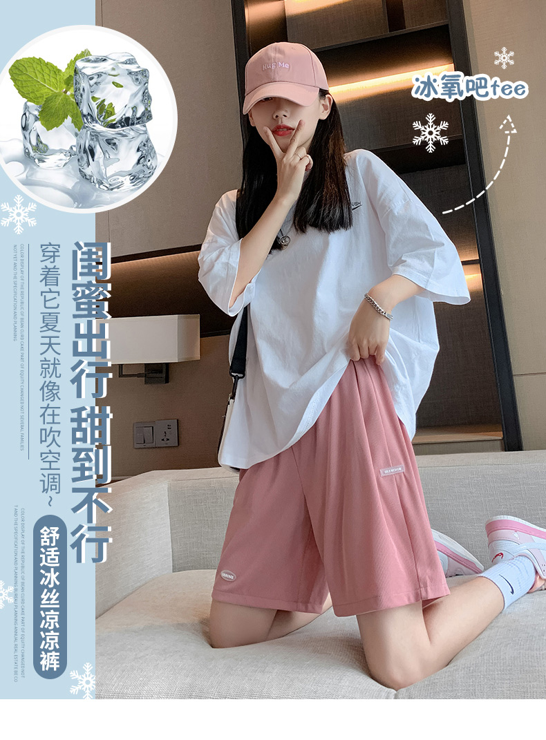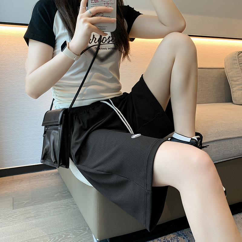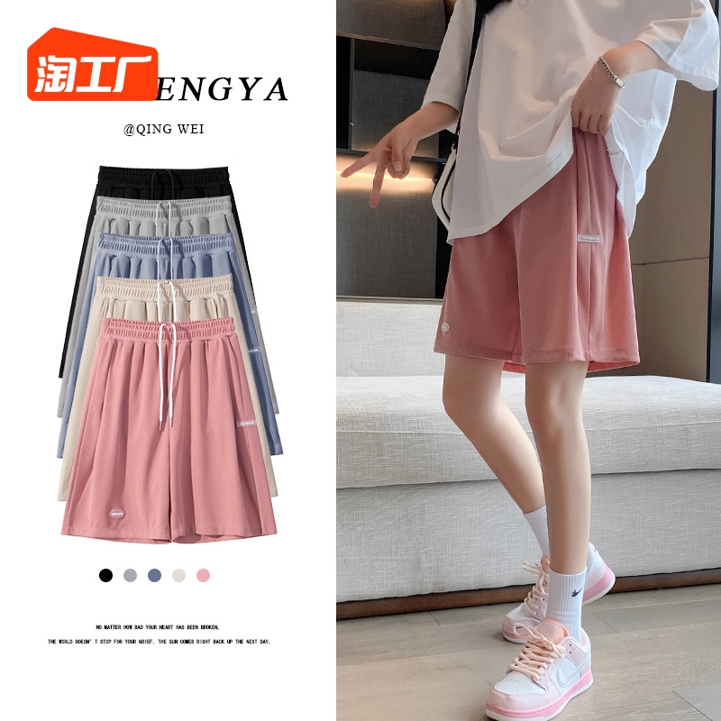 冰絲短褲女夏季薄款顯瘦寬鬆高腰直筒五分褲休閒寬褲運動五分褲子