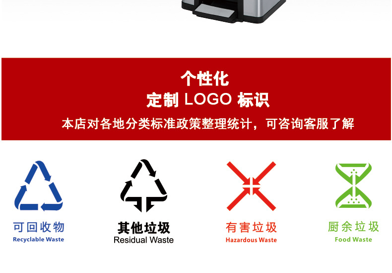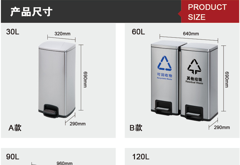 颜色 30+30L两分类,30L*3三分类,30L*4四分类,30L(烤漆),30L(不锈钢内桶),30+30L(带烟缸),20L,20+20L,20L*3,20L*4,30L单桶(320*290*690mm)